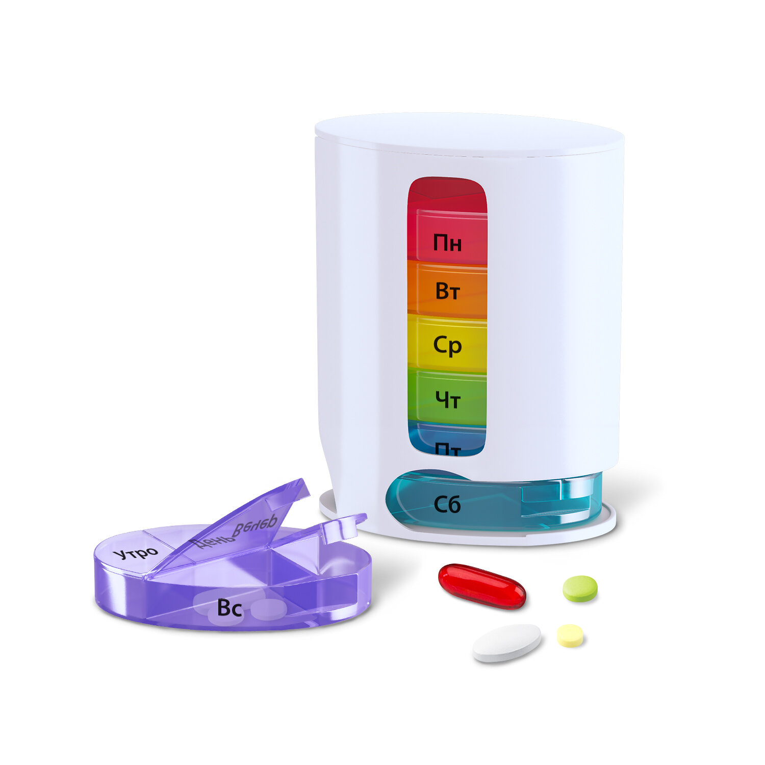 ТАБЛЕТНИЦА / Контейнер-органайзер для лекарств и витаминов "7 дней/4 приема WHITE", DASWERK (ДАСВЕРК) Код товара: 630847 369,27 ₽ Купить Производитель:DASWERK Таблетница DASWERK предназначена для надежного хранения лекарств, витаминов и пищевых добавок. Контейнер из легкого и прочного пластика гарантирует удобство и безопасность в использовании. Таблетница представляет собой 7 ежедневных контейнеров с 4 отделениями каждый, расположенных в удобном стильном органайзере, оснащенном крышкой сверху. Органайзер позволяет удобно упорядочить прием лекарств по дням, переставляя контейнер с нужным днём наверх. Ежедневные контейнеры надежно закреплены внутри органайзера, благодаря чему можно взять с собой как всю таблетницу, так и отдельные, более компактные, контейнеры на один день. Дома, на работе, в путешествии - упорядоченный прием лекарств и витаминов станет проще с таблетницей-органайзером. Мини-контейнеры содержат маркировку на русском языке по дням недели и суточному режиму приема: утро, день, вечер, ночь. Различным дням недели соответствует разный цвет контейнера. Каждый отсек в мини-контейнере оборудован плотно закрывающейся крышкой, что надежно предотвращает рассыпание содержимого. Перед первым использованием рекомендуется промыть контейнер теплой водой с мылом и тщательно высушить.Производство: КитайКоличество дней: 7Количество ячеек: 28 шт.Длина: 97 ммШирина: 59 ммВысота: 120 ммСерия: DAS HAUSМатериал: пластикВес: 234 грРазмер упаковки: 6.1 × 12.7 × 10.2 смОбъём: 0.001 м3Промежуточная упаковка: 50 штТранспортная упаковка: 50 штШтрих-код: 4606224332314 Сертификат-1.jpg Сертификат-2.jpg Сертификат-3.jpg