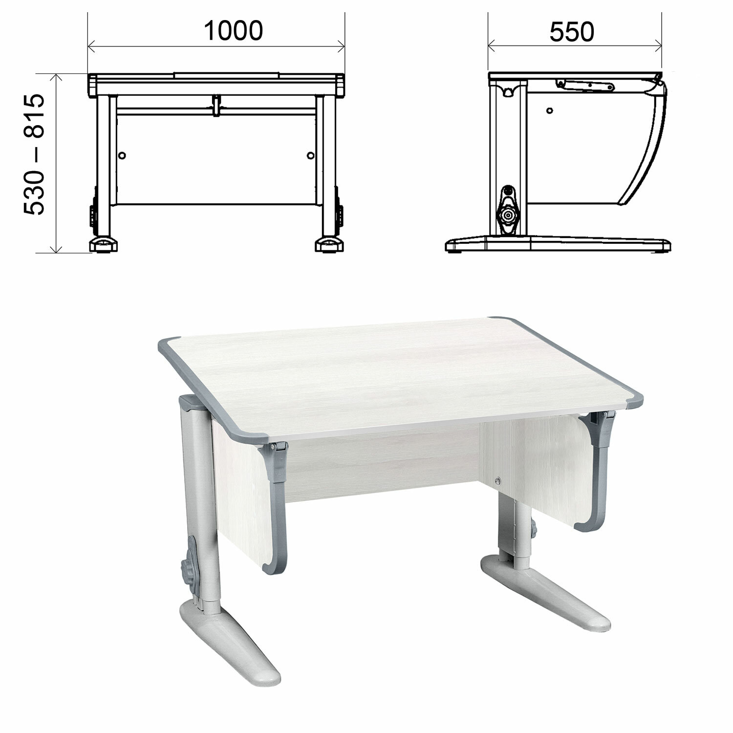 Стол-парта регулируемый "ДЭМИ" СУТ.43, 1000х550х530-815 мм, серый каркас, пластик серый, рамух белый (КОМПЛЕКТ) Код товара: 981823 14 949,9 ₽ Купить Производитель:ДЭМИ Парта «Дэми» идеально подойдет как для школьника начальных классов, так и для студента. Парта оснащена системой регулировки высоты и угла наклона столешницы. Дополнительно парту можно укомплектовать полкой и органайзером, как представлено на доп.фото. "Парта «Дэми» выполнена в современных приятных цветах ЛДСП. Благодаря большому выбору цветов корпуса, пластиковых элементов и каркаса легко подобрать парту на любой самый требовательный вкус и интерьер.Парта со столешницей размером 1000х550 мм просторна и удобна как для школьных занятий, так и для творчества. Легко регулируемая по наклону столешница 0° до 30°, позволяет подобрать оптимальное положение для любых видов занятий.Регулируемые опоры меняют высоту парты от 530 до 815 мм под рост ребенка, помогая сохранять правильную посадку, защищая от сколиоза и остеохондроза.Все углы и выступающие части парты скруглены и защищены пластиковыми цветными накладками.В максимальной комплектации этот стол превращается в полноценный кабинет, где удобно и учиться, и работать.Производство: РоссияРазмеры (ШхГхВ) - 1000х550х530-815 мм.Столешница - ЛДСП толщиной 16 мм, цвет - рамух белый, кромка -ПВХ 2мм.Столешница с 9-ти ступенчатой регулировкой угла наклона (0°-30°).Рама металлическая, регулируемая по высоте (530-815 мм), цвет - серый.Пластиковые накладки, цвет - серый.Регулируемые опоры компенсируют неровность пола.Поставляется в разобранном виде.Вес: 21,81 кгОбъём: 0.0717 м3Промежуточная упаковка: 1 штТранспортная упаковка: 1 шт