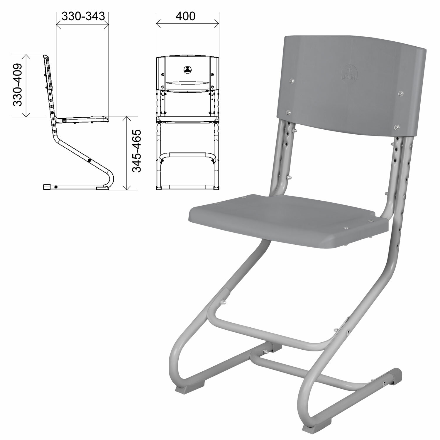Стул ученический регулируемый "ДЭМИ" СУТ.01, 400х330-343х795-874 мм, серый каркас, пластик серый Код товара: 982120 7 363,13 ₽ Купить Производитель:ДЭМИ Эргономический стул «Дэми» обеспечивает правильную посадку ребенка за столом. Регулировка спинки и сиденья по высоте и глубине позволяет настроить стул под нужный рост, благодаря чему у детей уменьшается риск появления такого заболевания, как сколиоз. Большой выбор цветов пластиковых элементов и каркасов, поэтому легко подобрать стул на любой самый требовательный вкус и интерьер.Производство: РоссияМатериал спинки и сиденья - пластик, цвет серый.Каркас - металлический, цвет серый.Высота от пола до сиденья - 345-465 мм.Размеры (ШхГхВ) - 400х330-343х795-874 мм.Допустимая нагрузка на сиденье - не более 80 кг.Угол наклона сиденья 2°.Поставляется в разобранном виде.Вес: 6,68 кгОбъём: 0.0302 м3Промежуточная упаковка: 1 штТранспортная упаковка: 1 шт