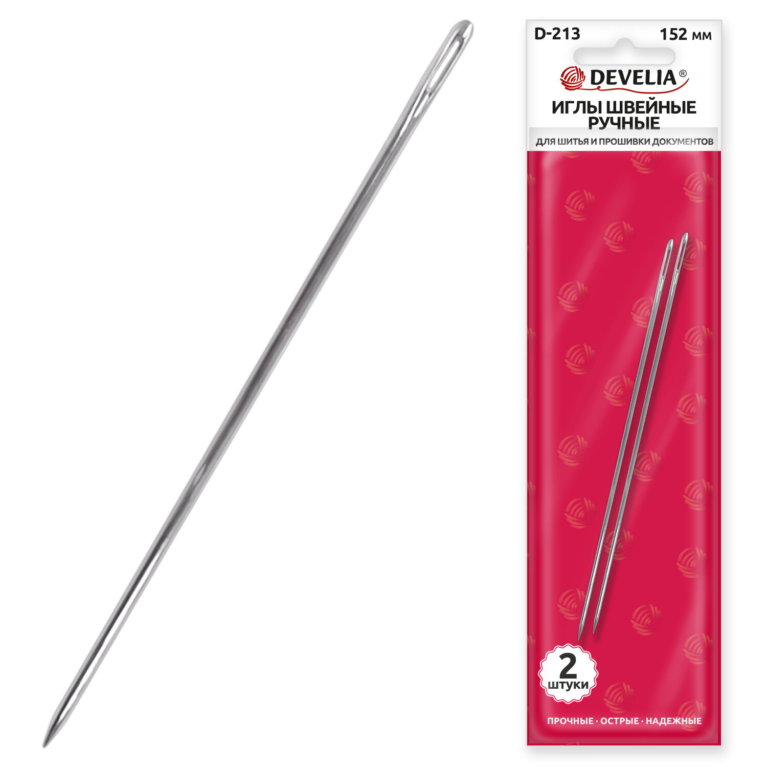 Иглы для шитья и прошивки документов D-213 ручные (цыганские), длина 150 мм, 2 штуки, DEVELIA Код товара: 700399 111,85 ₽ Купить Производитель:DEVELIA Цыганские иглы для шитья и прошивки документов DEVELIA позволяют подшивать документы практически любыми видами шпагатов. Иглы DEVELIA изготовлены из высококачественной нержавеющей стали, что обеспечивает им долговечность и устойчивость к коррозии. Они прочные и надежные. Идеально подходят для шитья, скрапбукинга, прошивки документов и других видов рукоделия. Благодаря острому кончику и прочному материалу они легко прошивают большинство типов тканей, бумагу и другие материалы. Иглы имеют длину 150 мм. Диаметр – 1,83 мм. В комплекте 2 штуки. Упаковка: блистер с европодвесом – позволяет компактно хранить и демонстрировать товар, а также защищает иглы при транспортировке.Производство: КитайТип товара: игла для прошивки документовДлина иглы: 150 ммКоличество предметов в наборе: 2 шт.Состав набора: 2 иглыДиаметр иглы: 1.83 ммДлина ушка: 7.2 ммТолщина ушка: 1 ммУпаковка: блистер с европодвесомВес: 21 грРазмер упаковки: 1 × 22.5 × 5.8 смОбъём: 0.0002 м3Промежуточная упаковка: 10 штТранспортная упаковка: 250 штШтрих-код: 4606224480640 Файлы