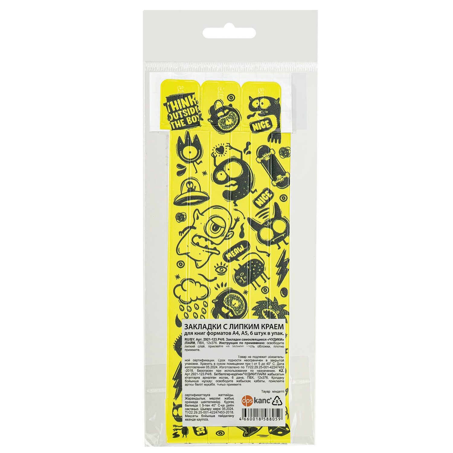 Закладки для книг с принтом САМОКЛЕЯЩИЕСЯ, КОМПЛЕКТ 6 шт., Чудики/лайм, ДПС Код товара: 116392 136,68 ₽ Купить Производитель:ДПС Закладки для книг самоклеящиеся ДПС – это универсальный аксессуар, который поможет быстро найти нужную страницу и облегчит процесс чтения. В комплект входит 6 закладок. Они имеют клейкую основу, которая позволяет легко прикрепить закладку к обложке книги. Закладка пластиковая. Основание закладки имеет липкую сторону, которую нужно приклеить на заднюю часть обложки книги и плотно прижать. Длина каждой закладки – 376 мм. Специальная длина для рабочих тетрадей формата А4. Если нужна закладка короче, можно просто отрезать изделие до нужной длины.Производство: РоссияТип закладки: лента с липким краемПол: универсальныйДизайн: Чудики/лаймКоличество в комплекте: 6 шт.Цвет шнурка: нетМатериал: ПВХДлина: 376 ммШирина: 12 ммВес: 19 грРазмер упаковки: 0.2 × 22.8 × 10 смОбъём: 0.0001 м3Промежуточная упаковка: 10 штТранспортная упаковка: 250 штШтрих-код: 4660018588059 Сертификат-1.jpg Сертификат-2.jpg Сертификат-3.jpg