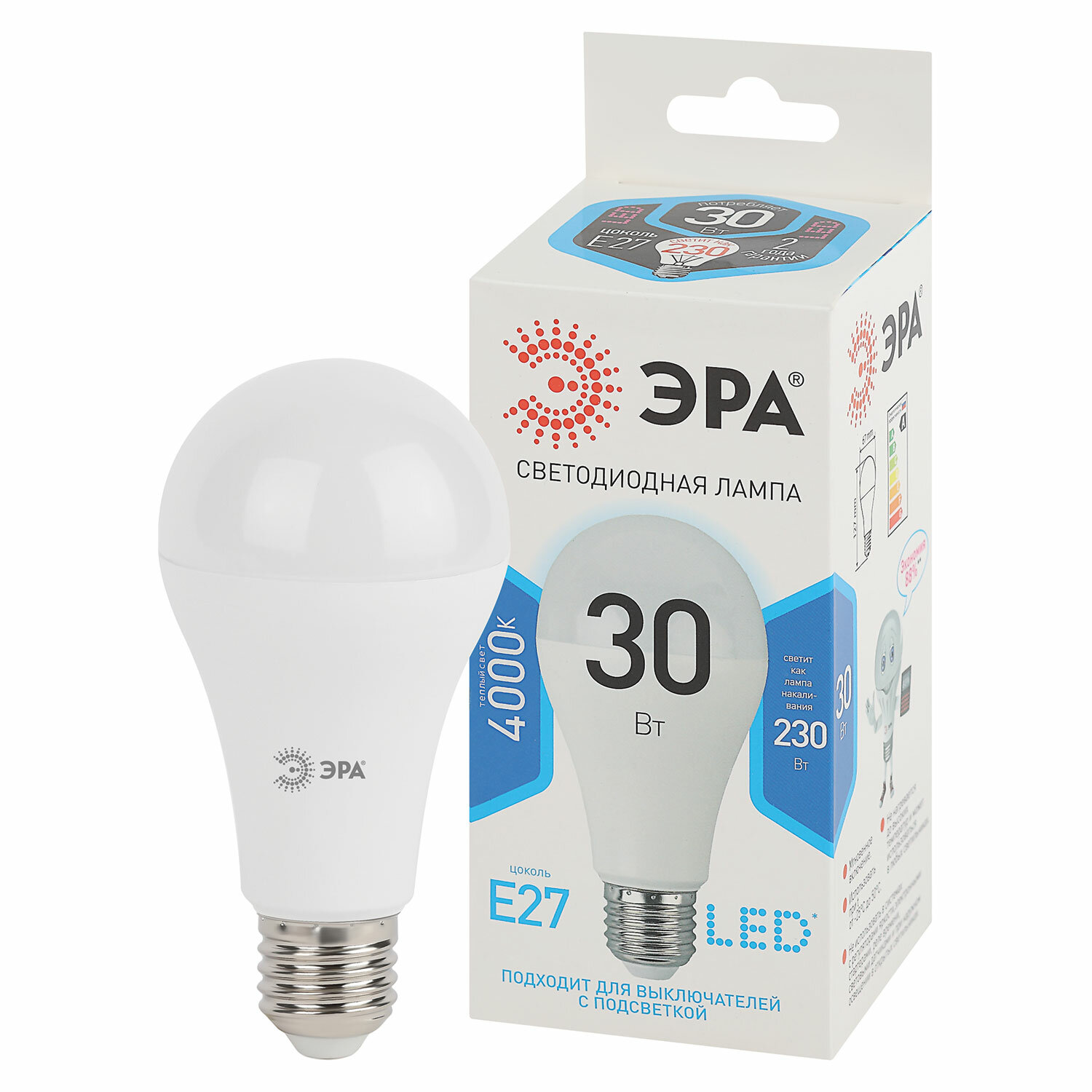 Лампа светодиодная ЭРА STD, 30 (230) Вт, цоколь E27, груша, нейтральный белый свет, 35000 ч., LED A65-30W-840-E27 Код товара: 457672 314,67 ₽ Купить Производитель:ЭРА Светодиодная лампа ЭРА серии "Стандарт" - современный, качественный и доступный источник света. Позволяет экономить до 90% электроэнергии по сравнению с лампой накаливания с аналогичным световым потоком. Светит ярким белым светом, который максимально приближен к естественному дневному. Идеальна для ежедневного применения в быту. Мгновенное включение. Ровное освещение. Можно использовать как с люстрами, так и со светильниками, в том числе настольными и бра.Производство: Китай Тип цоколя : E27Оттенок света: нейтральный белыйМощность: 30 ВтТип лампы: светодиоднаяТип колбы: грушаВид колбы: матоваяМинимальное рабочее напряжение: 170 ВМаксимальное рабочее напряжение: 265 ВМощность эквивалентной по световому потоку лампы накаливания: 230 ВтСветовой поток: 2400 ЛмЦветовая температура: 4000 КИндекс цветопередачи: 80 %Срок службы: 35000 ч.Высота (длина) лампы: 112 ммДиаметр лампы: 60 ммВес: 79 грРазмер упаковки: 6.7 × 16.9 × 6.3 смОбъём: 0.0007 м3Промежуточная упаковка: 10 штТранспортная упаковка: 100 штШтрих-код: 5056396208907 Файлы Сертификат-1.jpg Сертификат-2.jpg Сертификат-3.jpg Сертификат-4.jpg Сертификат-5.jpg