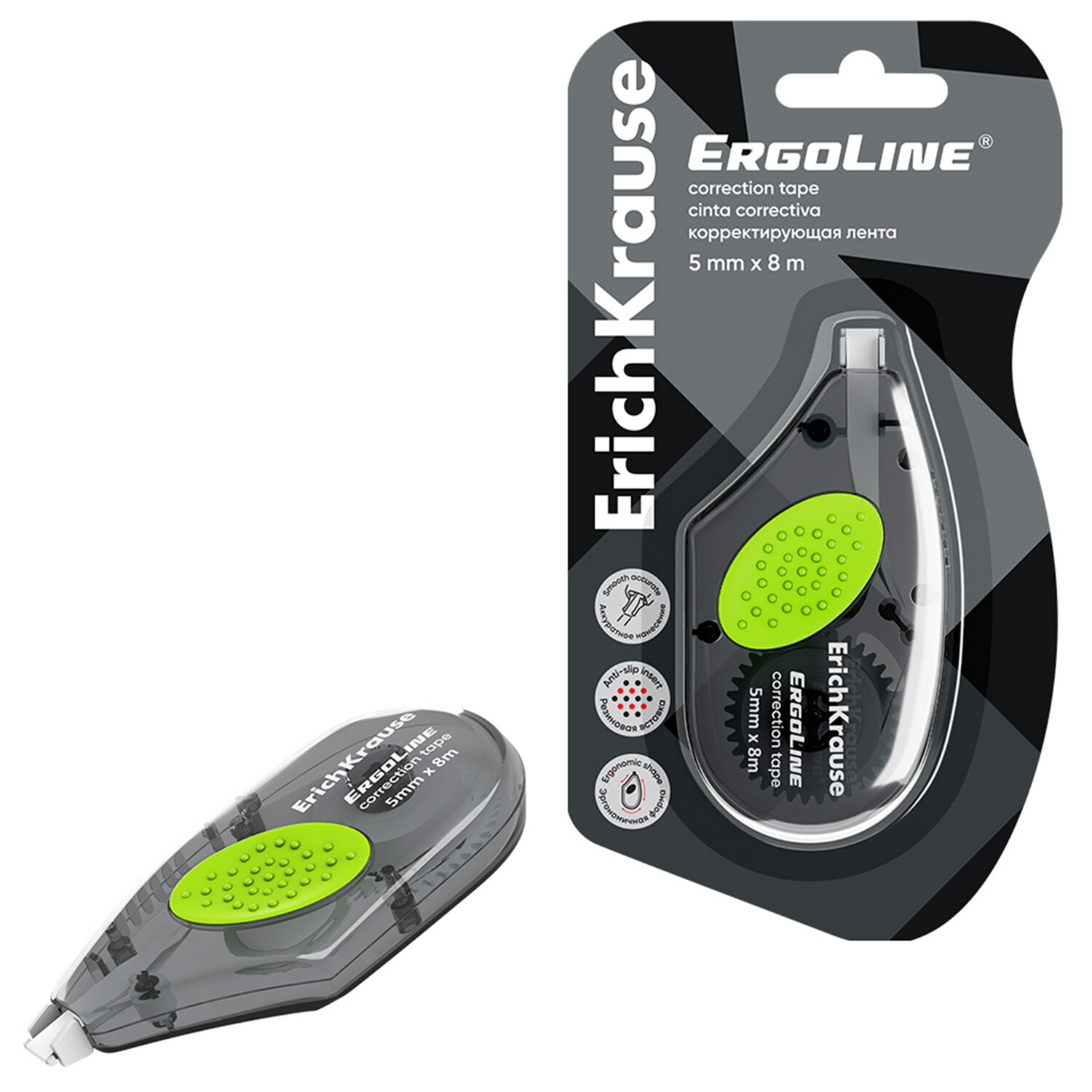 Корректирующая лента ERICH KRAUSE "ErgoLine", с резиновой вставкой, 5 мм х 8 м, серый, 5360 Код товара: 274869 230,25 ₽ Купить Производитель:ERICH KRAUSE Корректирующая лента ERICH KRAUSE "ErgoLine" с эргономичной формой корпуса и противоскользящей резиновой вставкой. Цвет – серый. Длина ленты – 8 м. Ширина ленты – 5 мм. Идеальна для аккуратного и быстрого исправления строчного текста. Показывает отличный результат на всех типах и цветах чернил. На основе растворителя. Не требует времени для высыхания и позволяет сразу писать поверх корректировки.Производство: КитайШирина ленты: 5 ммДлина ленты: 8 мСерия: ErgoLine®Количество в комплекте: 1 шт.Цвет корпуса: серый/зеленыйУпаковка: блистер с европодвесомСрок годности: 36 месВес: 32 грРазмер упаковки: 2.1 × 15.9 × 8.1 смОбъём: 0.0002 м3Промежуточная упаковка: 24 штТранспортная упаковка: 288 штШтрих-код: 4041485536048 Файлы Сертификат-1.jpg Сертификат-2.jpg Сертификат-3.jpg Сертификат-4.jpg Сертификат-5.jpg Сертификат-6.jpg Сертификат-7.jpg Сертификат-8.jpg Сертификат-9.jpg Сертификат-10.jpg Сертификат-11.jpg Сертификат-12.jpg Сертификат-13.jpg Сертификат-14.jpg Сертификат-15.jpg Сертификат-16.jpg Сертификат-17.jpg Сертификат-18.jpg Сертификат-19.jpg Сертификат-20.jpg Сертификат-21.jpg Сертификат-22.jpg Сертификат-23.jpg Сертификат-24.jpg