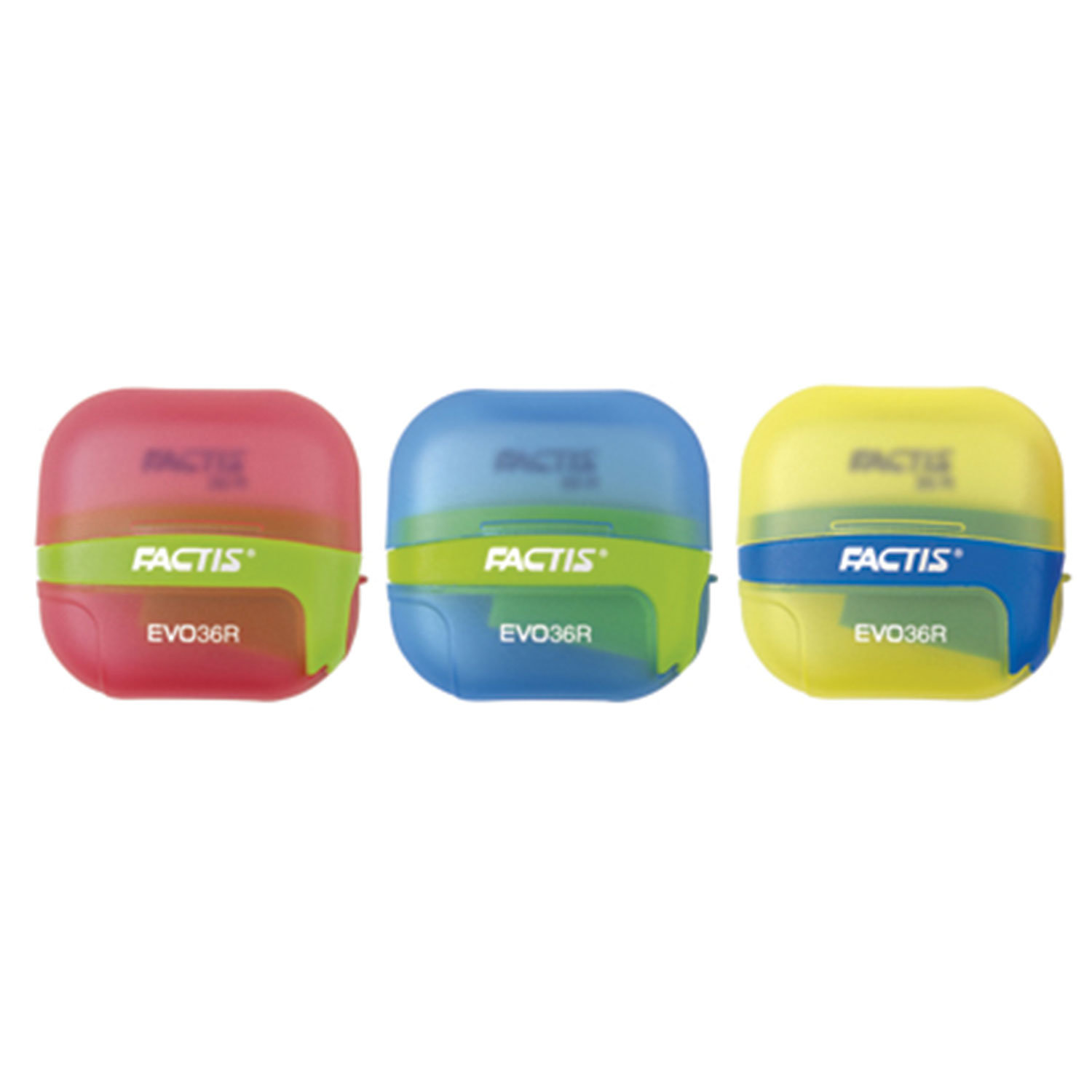Точилка FACTIS EVO36R (Испания), с контейнером и стирательной резинкой, 50x50x25 мм, ассорти Код товара: 228027 285,71 ₽ Купить Производитель:FACTIS Точилка с контейнером и стирательной резинкой FACTIS 36R из синтетического каучука. Стирательная резинка удаляет надписи, сделанные чернографитным карандашом. Корпус выполнен из пластика. Острое лезвие обеспечивает высококачественную и точную заточку. Карандаш до 8 мм затачивается легко и аккуратно, а опилки остаются в специальном контейнере. Поставляется в нескольких вариантах цвета (без возможности выбора).Производство: ИспанияКоличество в комплекте: 1 шт.Материал корпуса: пластикФорма корпуса: квадратнаяКоличество отверстий: 1Контейнер для стружки: даСерия: EVO36RПодходит для левшей: даШторка для закрытия отверстий: даЦвет: ассортиВысота: 50 ммШирина: 50 ммГлубина: 25 ммУпаковка : пластиковая банкаВес: 37 грРазмер упаковки: 2.4 × 5.3 × 4.8 смОбъём: 0.0002 м3Промежуточная упаковка: 16 штТранспортная упаковка: 384 штШтрих-код: 8411574044024 Сертификат-1.jpg Сертификат-2.jpg Сертификат-3.jpg
