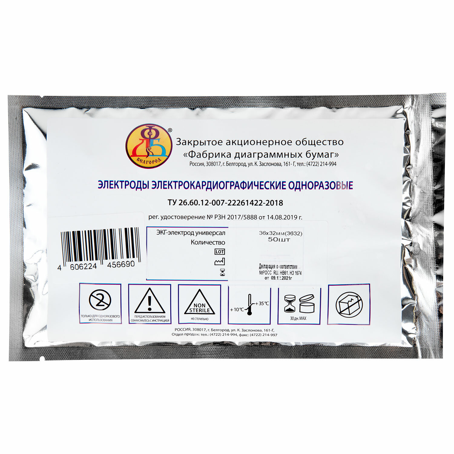 Электроды для ЭКГ одноразовые, 36х32 мм, КОМПЛЕКТ 50 шт., универсальные на полимерной основе Код товара: 631410 432,5 ₽ Купить Производитель:ФДБ Электроды одноразовые предназначены для съема биоэлектрических потенциалов при электрокардиографическом исследовании, при динамическом и статическом ЭКГ, ЭКГ мониторинге при помощи холтеровских и стресс-систем. Обеспечивают надежный контакт. Электроды изготовлены из специального твердого геля, который обеспечивает стабильное и качественное сцепление с кожей пациента. Это позволяет получать четкие и точные результаты ЭКГ и облегчает процесс исследования сердечной активности. Гипоаллергенный усиленный клей удерживает электроды на пациенте, при движении гарантируется надежный контакт. Гидрофобная пена отталкивает влагу и сохраняет свои свойства даже при контакте с водой или другими жидкостями, что очень удобно при обследовании пациентов с высоким потоотделением. Таким образом, вы можете быть уверены в надежности и точности получаемых данных.Производство: РоссияНазначение: ЭКГКратность применения: ОдноразовыеРазмер: 36х32 ммМатериал электрода: Ag/AgClТип коннектора: кнопочныйПокрытие коннектора: нержавеющая стальКомплектность: 50 шт.Срок годности: 36 месВес: 71 грРазмер упаковки: 1.6 × 25.6 × 15.6 смОбъём: 0.001 м3Промежуточная упаковка: 12 штТранспортная упаковка: 12 штШтрих-код: 4606224456690 Файлы Сертификат-1.jpg Сертификат-2.jpg Сертификат-3.jpg Сертификат-4.jpg Сертификат-5.jpg Сертификат-6.jpg Сертификат-7.jpg Сертификат-8.jpg Сертификат-9.jpg Сертификат-10.jpg Сертификат-11.jpg Сертификат-12.jpg Сертификат-13.jpg Сертификат-14.jpg Сертификат-15.jpg Сертификат-16.jpg Сертификат-17.jpg Сертификат-18.jpg Сертификат-19.jpg Сертификат-20.jpg Сертификат-21.jpg Сертификат-22.jpg Сертификат-23.jpg Сертификат-24.jpg Сертификат-25.jpg Сертификат-26.jpg