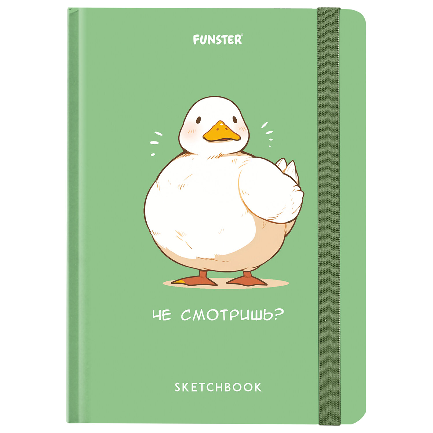 Скетчбук, белая бумага 80 г/м2, 145х203 мм, 80 л., резинка, твердый, FUNSTER (ФАНСТЕР), Гусь "Че смотришь?" Код товара: 116891 191,07 ₽ Купить Производитель:FUNSTER Скетчбук FUNSTER предназначен для эскизов и зарисовок. Жесткая обложка позволяет выполнять наброски и зарисовки в любом месте. Скетчбук FUNSTER прекрасно подойдет для эскизов, набросков и записей. Внутренний блок – 80 белоснежных листов плотностью 80 г/м2. Благодаря компактному формату скетчбук можно носить с собой, а жесткая обложка с модным дизайном станет верным подспорьем для рисования на весу. Удобным дополнением является эластичная резинка, которая не даст блокноту случайно раскрыться в рюкзаке или сумке. Скетчбук станет отличным выбором для новичков с самого раннего возраста и любителей.Производство: РоссияТип товара: скетчбук с резинкойСерия: нетВид работ: для зарисовок, записейКоличество листов: 80Формат: 145х203Ширина: 145 ммДлина: 203 ммДизайн: Смешной гусь "Че смотришь?"Обложка: мелованная бумагаВнутренний блок: офсетЦвет внутреннего блока: белый матовыйПлотность внутреннего блока: 80 г/м2Жесткая подложка: даТип скрепления: книжный переплетЦвет обложки: с дизайномИндивидуальная упаковка: даВес: 264 грРазмер упаковки: 1.4 × 20.2 × 14.4 смОбъём: 0.0006 м3Промежуточная упаковка: 20 штТранспортная упаковка: 20 штШтрих-код: 4606224509167 Сертификат-1.jpg Сертификат-2.jpg Сертификат-3.jpg