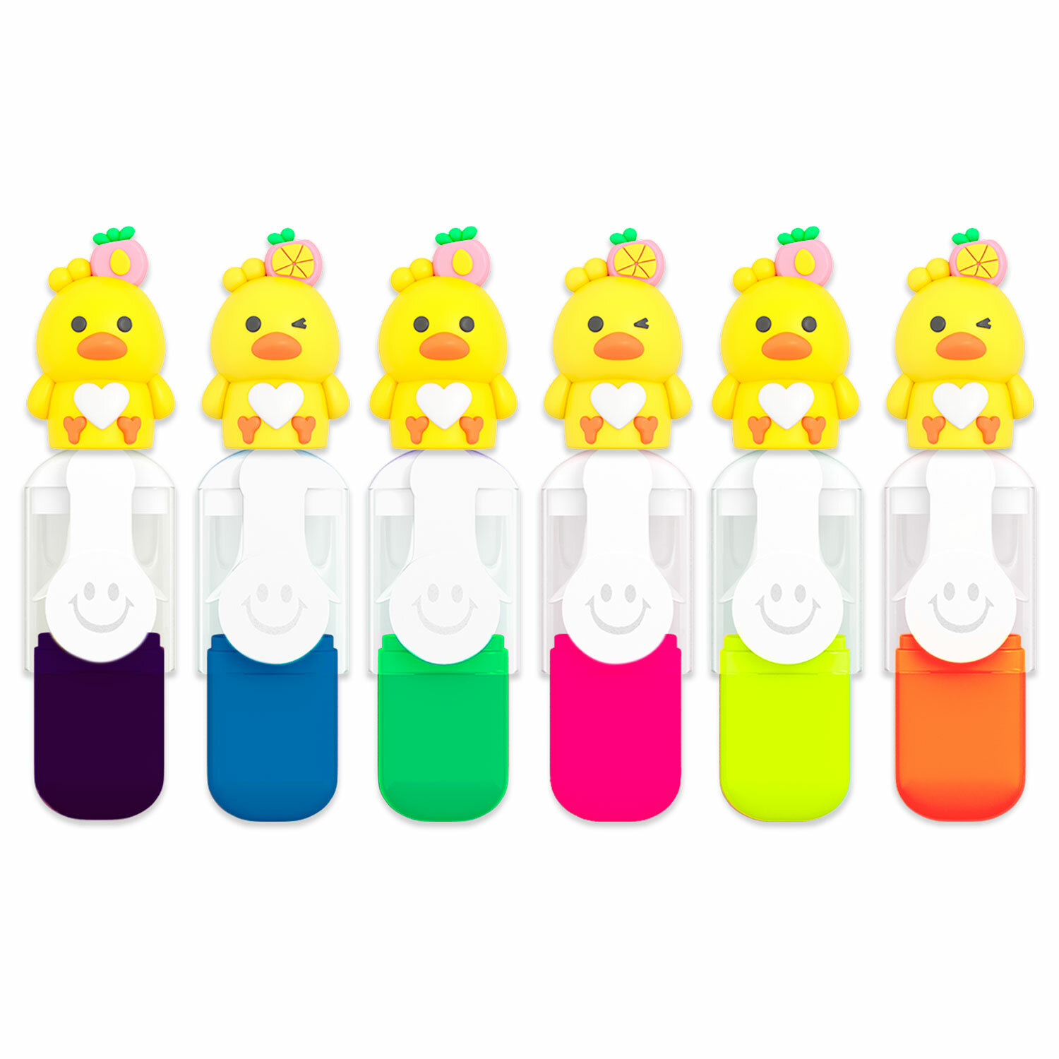 Набор текстовыделителей с топперами 6 ЦВЕТОВ НЕОН, "НЕЖНЫЕ ЦЫПЛЯТА", линия 1-4 мм, FUNSTER (ФАНСТЕР) Код товара: 152648 278,09 ₽ Купить Производитель:FUNSTER Текстовыделители FUNSTER "НЕЖНЫЕ ЦЫПЛЯТА" предназначены для выделения текста на бумаге любого типа. Идеально подходят для решения учебных, домашних и офисных задач. В наборе 6 неоновых цветов: розовый, оранжевый, фиолетовый, желтый, синий и зеленый. Неоновые цвета позволяют ярко выделить важные места в тексте. Цвет корпуса текстовыделителя соответствует цвету чернил. Текстовыделители имеют плоскую форму корпуса с диаметром 23 мм. Колпак украшен ярким топпером в форме цыплёнка. Скошенный наконечник с толщиной линии письма от 1 до 4 мм обеспечивает удобство при работе с текстом, напечатанным мелким шрифтом, или таблицами. В комплект входит прозрачная сумочка для хранения длиной 15,5 см. Благодаря особой водной основе чернил текстовыделитель не высыхает без колпачка в течение 8 часов. Текстовыделитель обладает экономным расходом чернил. Чернила быстро впитываются и тем самым предотвращают размазывание в процессе использования.Производство: КитайЦвет чернил: неоновый ассортиКоличество в комплекте: 6 шт.Форма наконечника: скошенныйСпецэффект цвета чернил : неоновыйОснова чернил: воднаяСерия: ФигурныеДизайн: Нежные цыплятаМин. толщина линии письма: 1 ммМакс. толщина линии письма: 4 ммФорма корпуса: плоскаяДиаметр корпуса: 23 ммНаличие клипа: даУпаковка: ПВХ-чехолСрок годности: 48 месВес: 94 грРазмер упаковки: 2.2 × 16.3 × 11.2 смОбъём: 0.0005 м3Промежуточная упаковка: 12 штТранспортная упаковка: 144 штШтрих-код: 4606224508313 Сертификат-1.jpg Сертификат-2.jpg Сертификат-3.jpg