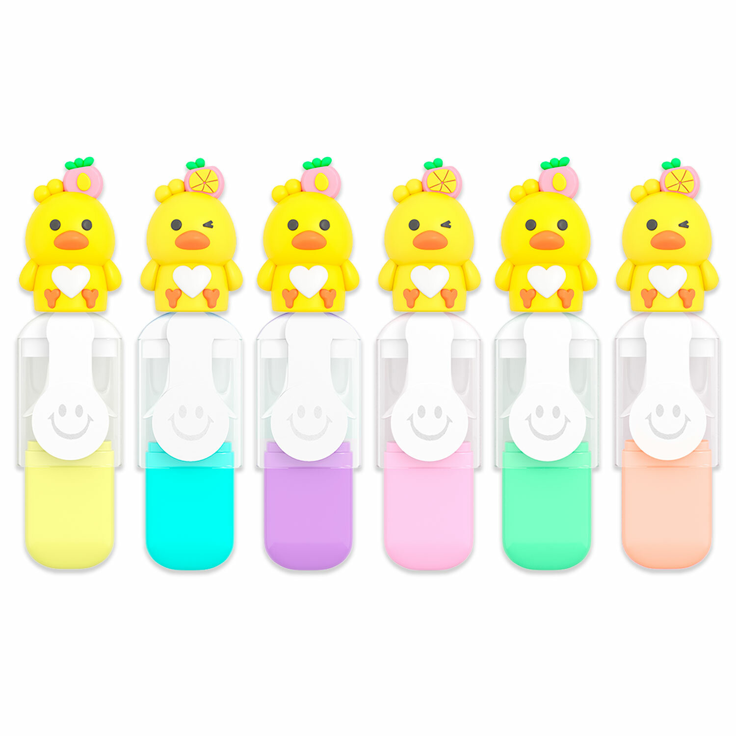 Набор текстовыделителей с топперами 6 ЦВЕТОВ ПАСТЕЛЬ, "НЕЖНЫЕ ЦЫПЛЯТА", линия 1-4мм, FUNSTER (ФАНСТЕР) Код товара: 152653 278,09 ₽ Купить Производитель:FUNSTER Текстовыделители FUNSTER "НЕЖНЫЕ ЦЫПЛЯТА" предназначены для выделения текста на бумаге любого типа. Идеально подходят для решения учебных, домашних и офисных задач. В наборе 6 пастельных цветов: лавандовый, персиковый, ванильный, бирюзовый, пастельный розовый и мятный. Нежные пастельные цвета позволяют создать мягкие переходы и равномерно подчеркнуть необходимую информацию в тексте. Цвет корпуса текстовыделителя соответствует цвету чернил. Текстовыделители имеют плоскую форму корпуса с диаметром 23 мм. Колпак украшен ярким топпером в форме цыплёнка. Скошенный наконечник с толщиной линии письма от 1 до 4 мм обеспечивает удобство при работе с текстом, напечатанным мелким шрифтом, или таблицами. В комплект входит прозрачная сумочка для хранения длиной 15,5 см. Благодаря особой водной основе чернил текстовыделитель не высыхает без колпачка в течение 8 часов. Текстовыделитель обладает экономным расходом чернил. Чернила быстро впитываются и тем самым предотвращают размазывание в процессе использования.Производство: КитайЦвет чернил: пастельный ассортиКоличество в комплекте: 6 шт.Форма наконечника: скошенныйСпецэффект цвета чернил : пастельныйОснова чернил: воднаяСерия: ФигурныеДизайн: Нежные цыплятаМин. толщина линии письма: 1 ммМакс. толщина линии письма: 4 ммФорма корпуса: плоскаяДиаметр корпуса: 23 ммНаличие клипа: даУпаковка: ПВХ-чехолСрок годности: 48 месВес: 93 грРазмер упаковки: 2 × 16.2 × 10.7 смОбъём: 0.0005 м3Промежуточная упаковка: 12 штТранспортная упаковка: 144 штШтрих-код: 4606224508368 Сертификат-1.jpg Сертификат-2.jpg Сертификат-3.jpg