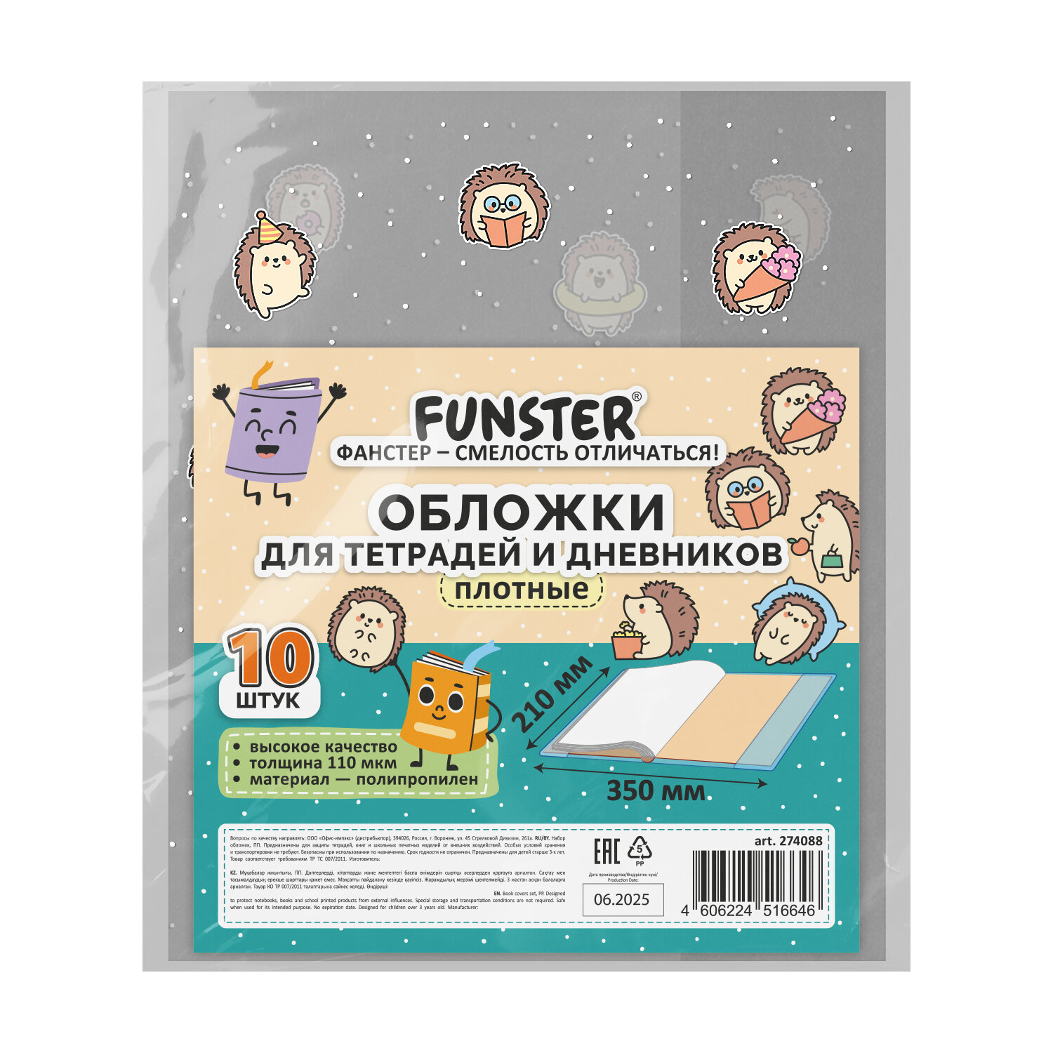 Обложки "HEDGEHOGS" для тетрадей и дневников, КОМПЛЕКТ 10 шт., ПЛОТНЫЕ, 210х350 мм, 110 мкм, FUNSTER (ФАНСТЕР) Код товара: 274088 329,67 ₽ Купить Производитель:FUNSTER Яркие и красочные обложки FUNSTER отлично предохраняют тетради и учебники от внешних воздействий, тем самым увеличивая срок их службы и сохраняя прекрасный внешний вид. Предназначены для тетрадей и дневников. Изготовлены из высококачественного полипропилена (ПП) толщиной 110 мкм. Предназначены для тетрадей и дневников. Размер – 210х350 мм. Набор обложек с дизайном из 10 штук. Не содержат вещества, вредные для здоровья детей.Производство: РоссияПредназначены для: дневников, тетрадейРазмер: 210х350 ммКоличество в комплекте: 10 шт.Материал: полипропилен с дизайномТолщина: 110 мкмТип обложки: с дизайномЦвет: прозрачныйДизайн: HEDGEHOGSНаличие штрихкода на ед. товара: даВес: 81 грРазмер упаковки: 0.4 × 21.6 × 18.3 смОбъём: 0.0002 м3Промежуточная упаковка: 100 штТранспортная упаковка: 100 штШтрих-код: 4606224516646 Сертификат-1.jpg Сертификат-2.jpg Сертификат-3.jpg