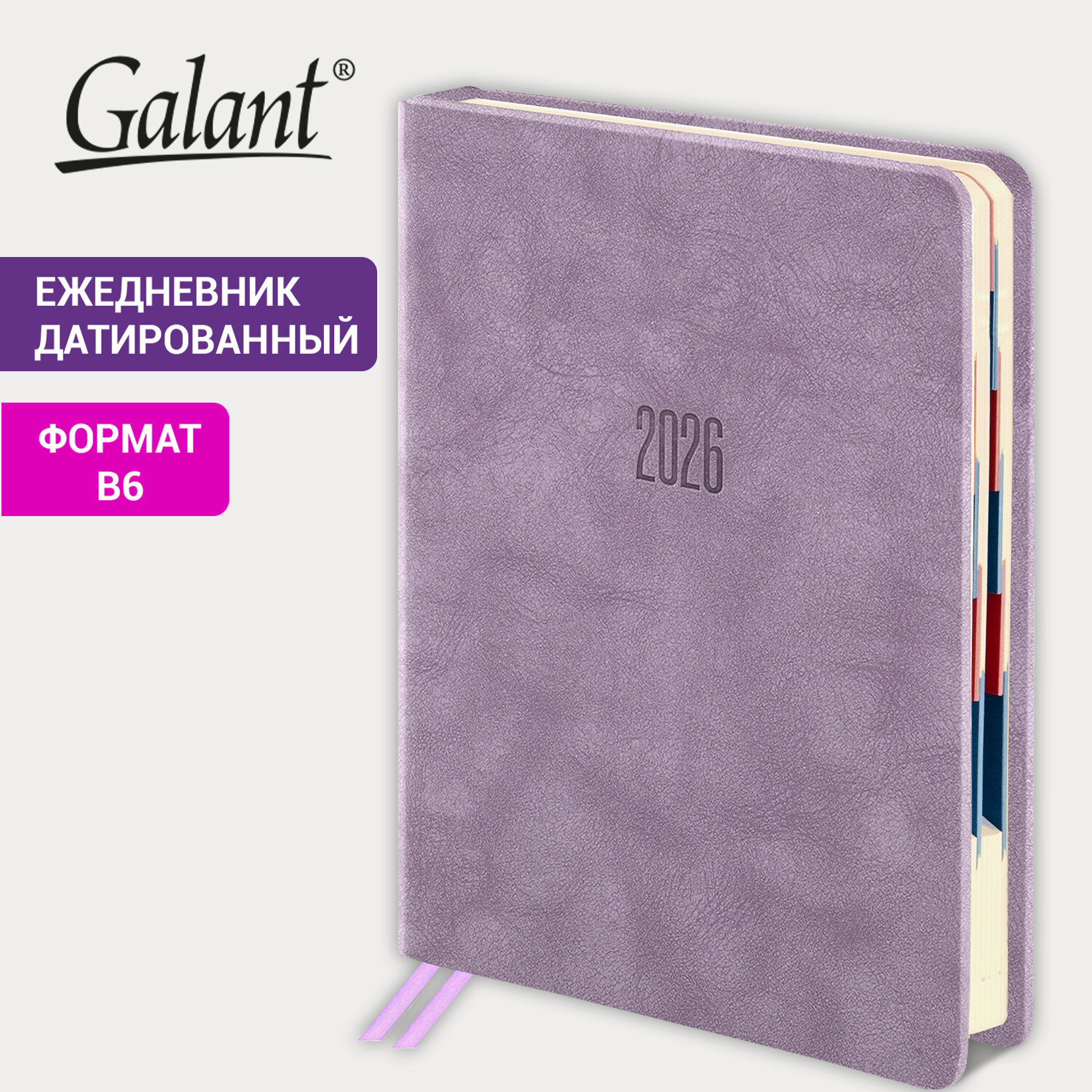 Ежедневник датированный 2026 B6 125х173 мм, GALANT "Vivid", под кожу, сиреневый Код товара: 117412 307,44 ₽ Купить Производитель:GALANT Датированный ежедневник серии "Vivid" от GALANT – надежный спутник делового человека. Внутренний блок включает 168 листов кремовой бумаги плотностью 70 г/м2. Каждая страничка имеет перфорированный угол. Благодаря небольшому формату B6 (125х173 мм) ежедневник удобно использовать как в офисе, так и на выездных деловых встречах. Твердая обложка стилизована под текстурную кожу. Материал обложки подходит для горячего тиснения. Дополнением является закладка-ляссе, с помощью которой при необходимости можно быстро открыть ежедневник на нужной странице, а также вырубка по месяцам. Помимо прочего, ежедневник снабжен обширным справочным материалом. В конце есть 6 страниц для записей и заметок.Производство: КитайТип ежедневника: датированныйФормат: В6Обложка: под фактурную кожуВид обложки: твердаяКоличество листов: 168 шт.Особенности: вырубка блока, закладка-ляссе, перфорация уголков, скругленные углы, справочная информацияСерия: VividГод: 2026Тип застежки: нетОсновной цвет обложки: сиреневыйДополнительный цвет обложки: нетЦвет среза: нетЦвет внутреннего блока: кремовыйПлотность внутреннего блока: 70 г/м2Высота строки для записи: 4 ммТип крепления: сшивкаПечать блока: 2 краскиПодходит для блинтового тиснения: даПодходит для тиснения фольгой: даДлина: 173 ммШирина: 125 ммТолщина: 20 ммВес: 328 грРазмер упаковки: 2.2 × 17.4 × 12.8 смОбъём: 0.0007 м3Промежуточная упаковка: 20 штТранспортная упаковка: 20 штШтрих-код: 4606224489957 Файлы Сертификат-1.jpg Сертификат-2.jpg Сертификат-3.jpg Сертификат-4.jpg Сертификат-5.jpg Сертификат-6.jpg Сертификат-7.jpg Сертификат-8.jpg Сертификат-9.jpg Сертификат-10.jpg Сертификат-11.jpg Сертификат-12.jpg Сертификат-13.jpg Сертификат-14.jpg Сертификат-15.jpg Сертификат-16.jpg Сертификат-17.jpg Сертификат-18.jpg Сертификат-19.jpg Сертификат-20.jpg Сертификат-21.jpg Сертификат-22.jpg Сертификат-23.jpg Сертификат-24.jpg Сертификат-25.jpg Сертификат-26.jpg