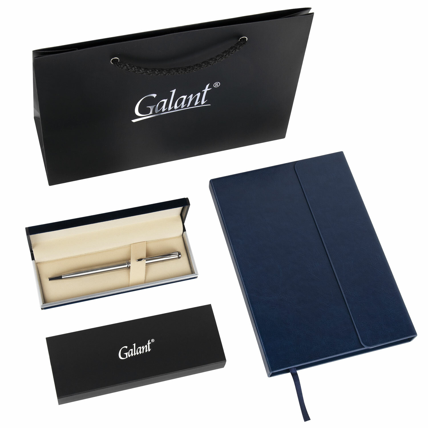 Ручка шариковая GALANT "Arrow Chrome", корпус серебристый, ежедневник недатированный, А5, синий, пакет Код товара: 880903 1 224,72 ₽ Купить Производитель:GALANT Набор GALANT "Arrow Chrome" станет отличным подарком к любому празднику или событию, подчеркнет статус и изысканность вкуса владельца. Набор состоит из элегантной ручки с корпусом из латуни серебристого цвета и недатированного ежедневника синего цвета с магнитным клапаном. В комплекте с набором поставляется брендированный подарочный пакет, который сделает подарок завершенным. Ручка: синий цвет чернил, длина стержня составляет 98 мм, а диаметр пишущего узла - 0,7 мм. Поставляется в индивидуальном футляре. Корпус ручки подходит для гравировки. Ежедневник: внутренний блок включает 160 листов тонированной бумаги плотностью 70 г/м2. Каждая страничка имеет перфорированный угол. Благодаря стандартному формату А5 ежедневник удобно использовать как в офисе, так и на выездных деловых встречах. Интегральная обложка, стилизованная под гладкую кожу, фиксируется магнитным клапаном, поэтому ежедневник не откроется в сумке или портфеле и страницы не помнутся. Подходит для горячего тиснения. Срез и форзац ежедневника окрашены в цвет обложки, что придает ему особый шарм. Дополнением является закладка-ляссе, с помощью которой при необходимости можно быстро открыть ежедневник на нужной странице.Производство: РоссияЦвет корпуса: серебристыйМатериал корпуса: латуньПокрытие корпуса: хромДекор корпуса: лазерная гравировкаМатериал деталей отделки: сплав латуниМеханизм: поворотныйСерия: ArrowДлина стержня: 98 ммДиаметр пишущего узла: 0.7 ммЦвет чернил: синийПодарочный футляр: даСрок годности: 60 месВес: 754 грРазмер упаковки: 5.6 × 29.3 × 19.7 смОбъём: 0.0037 м3Промежуточная упаковка: 28 штТранспортная упаковка: 28 штШтрих-код: 4606224416113 Файлы Сертификат-1.jpg Сертификат-2.jpg Сертификат-3.jpg Сертификат-4.jpg Сертификат-5.jpg Сертификат-6.jpg Сертификат-7.jpg Сертификат-8.jpg Сертификат-9.jpg Сертификат-10.jpg Сертификат-11.jpg Сертификат-12.jpg Сертификат-13.jpg Сертификат-14.jpg Сертификат-15.jpg Сертификат-16.jpg Сертификат-17.jpg Сертификат-18.jpg Сертификат-19.jpg Сертификат-20.jpg Сертификат-21.jpg Сертификат-22.jpg Сертификат-23.jpg Сертификат-24.jpg Сертификат-25.jpg Сертификат-26.jpg