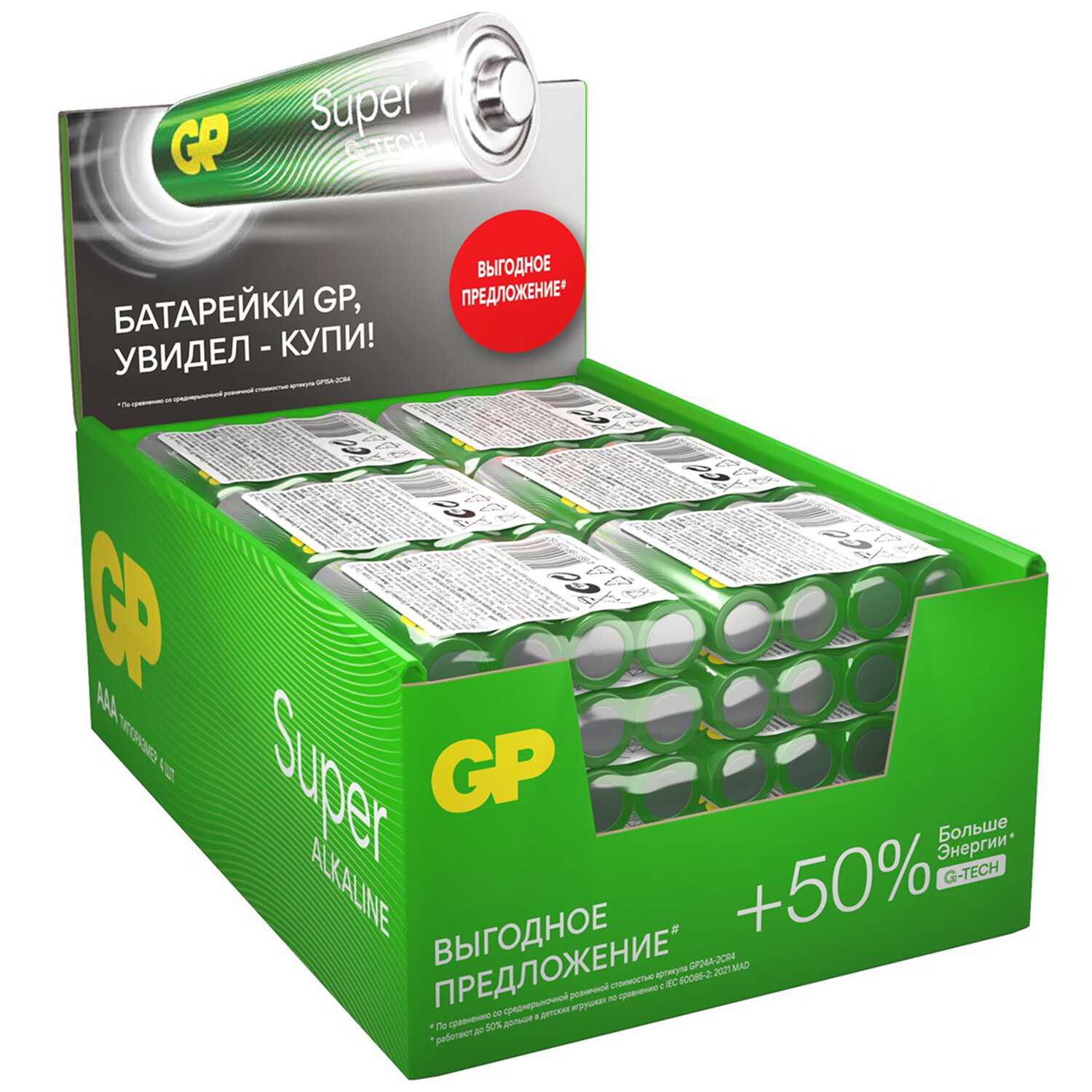 Батарейки КОМПЛЕКТ 4 шт., GP Super G-Tech, AAA (LR03, 24А), алкалиновые, мизинчиковые, в пленке, 24AR Код товара: 454089 204,68 ₽ Купить Производитель:GP Алкалиновые батарейки GP размера AAA увеличенной продолжительности работы идеально подходят для приборов с высоким потреблением энергии, таких как механизированные игрушки, фонарики, портативные игровые консоли, пульты дистанционного управления. Батарейки GP – это надежные элементы питания, которые обеспечивают стабильную работу устройств. В процессе изготовления использовались качественные материалы и тщательно соблюдались стандарты безопасности; они оптимально подходит для бытового применения. Неиспользованные батарейки GP могут сохранять заряд до 10 лет при хранении в обычных условиях. С этими батарейками можете полностью положиться на свое устройство. Поставляются комплектом из 4 штук в пленке. Вся информация о товарах на сайте носит справочный характер и не является публичной офертой в соответствии с пунктом 2 статьи 437 ГК РФ. Производитель оставляет за собой право изменять характеристики товара, его внешний вид и комплектность без предварительного уведомления продавца.Производство: КитайФорма батарейки: AAA (мизинчиковые)Серия: SuperТипоразмер: AAA (мизинчиковая, R03, LR03, 286, 24A, 24D)Технология: алкалиноваяНапряжение: 1.5 ВКоличество в упаковке: 4 шт.Упаковка: термоусадочная пленкаСрок годности: 120 месВес: 52 грРазмер упаковки: 1.1 × 4.5 × 4.4 смОбъём: 0.0001 м3Промежуточная упаковка: 24 штТранспортная упаковка: 96 штШтрих-код: 4891199071850 Файлы Сертификат-1.jpg Сертификат-2.jpg Сертификат-3.jpg Сертификат-4.jpg
