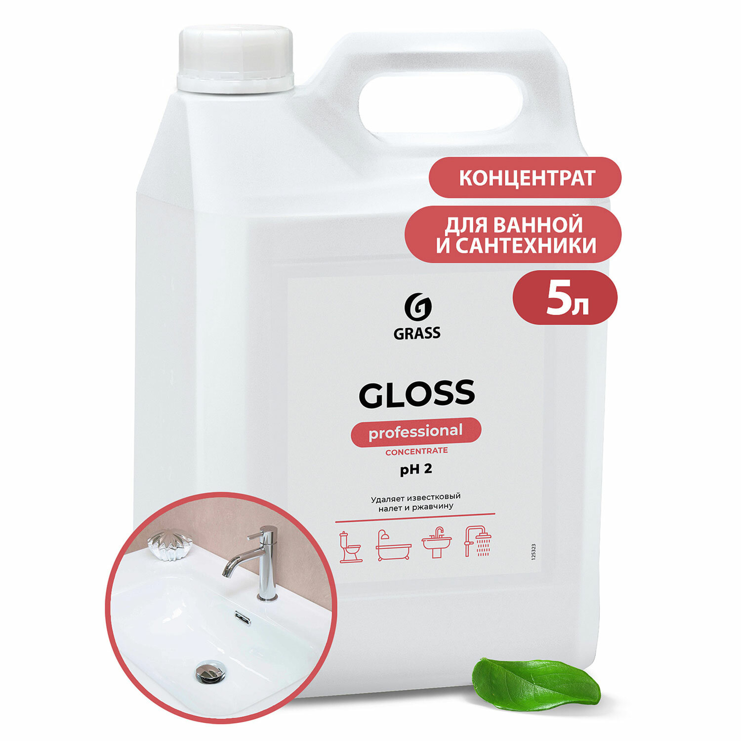 Средство для чистки сантехники кислотное 5,5 кг, GRASS GLOSS PROFESSIONAL, концентрат Код товара: 609905 1 227,21 ₽ Купить Производитель:GRASS Универсальное концентрированное чистящее средство GRASS GLOSS PROFESSIONAL для любых поверхностей, стойких к воздействию кислот. Подходит для бережной чистки полов, стен, ванн, душевых кабин, унитазов, раковин, кранов и др. оборудования. Мгновенно удаляет известковый налет, солевые отложения, ржавчину, мочевой камень и другие стойкие загрязнения. Придает блеск, сохраняя эффект на несколько дней. При правильном применении не повреждает хромированные, пластиковые поверхности, кислотостойкую плитку и эмаль. Состав: 30% очищенная вода; 5-15% смесь неорганических кислот; 5%: неионогенные ПАВ, ароматизирующая добавка, краситель. Способ применения: в концентрированном виде средство применяется для очистки санузлов. • Ежедневная уборка: для очистки пола и стен развести концентрат в пропорции 5-10 мл на 1 л воды; для ручной очистки инвентаря развести концентрат в пропорции 10-20 мл на 1 л воды. • Генеральная уборка: для очистки плитки, стекла, гранита, удаления остатков цемента, бетона, ржавых пятен, известкового камня, строительных смесей и других загрязнений концентрат разводят в пропорции 100 мл на 1 л воды. Концентрация раствора зависит от характера загрязнения. Использовать строго по назначению!Производство: РоссияНазначение: для уборки туалетов и ванных комнатСерия: GLOSSЭффект от использования: очищение поверхности, удаление известкового налета, удаление ржавчиныПрофессиональное средство: даПодходит для поверхностей: кафель, пластик, фаянсОбъем/вес: 5500 мл/гОтдушка: свежестьФорма выпуска: концентратСодержит: кислотуpH: 2Дозатор: нетУпаковка: канистраСрок годности: 24 месВес: 5,75 кгРазмер упаковки: 29.2 × 17.8 × 13 смОбъём: 0.0077 м3Промежуточная упаковка: 4 штТранспортная упаковка: 4 штШтрих-код: 4650067527963 Сертификат-1.jpg Сертификат-2.jpg