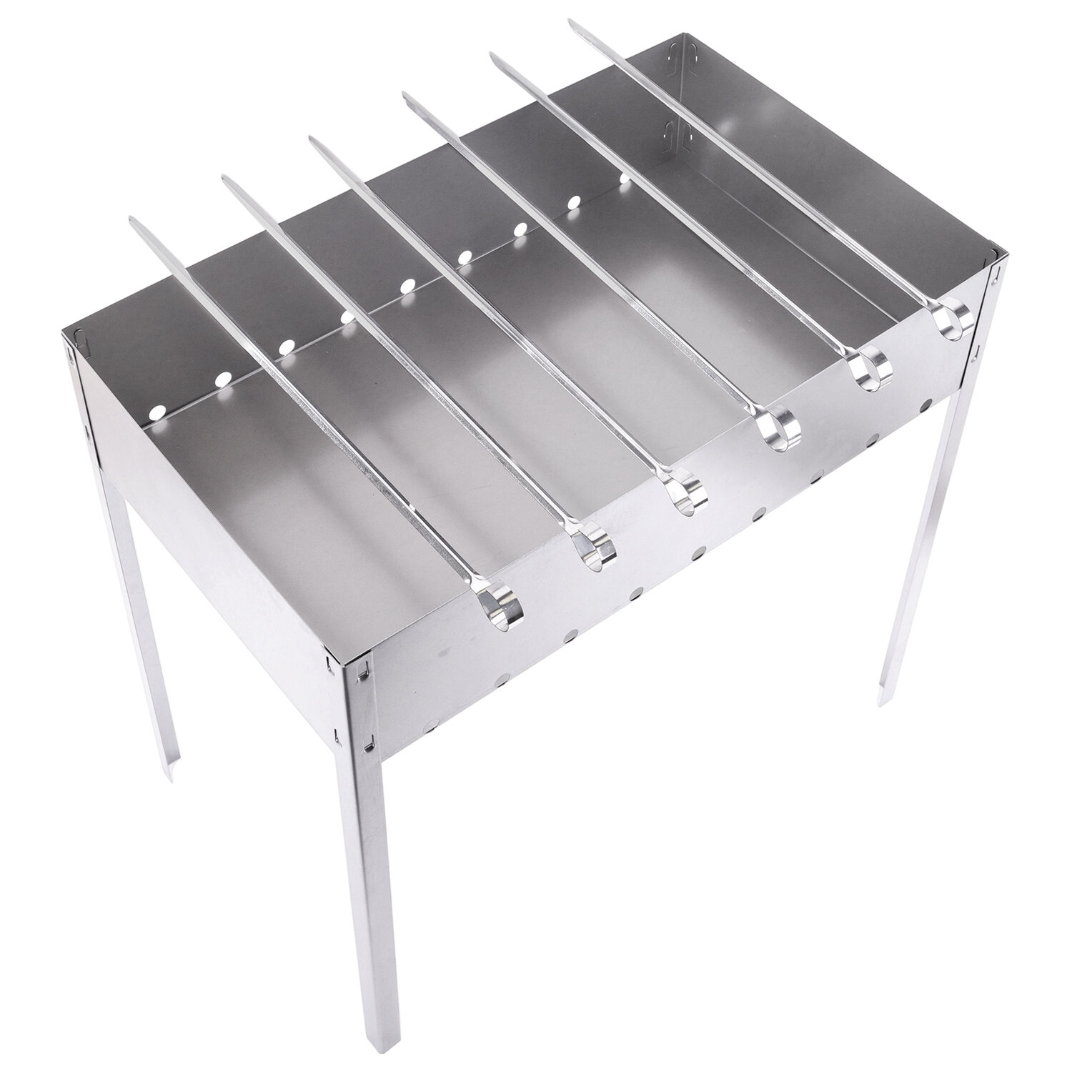 Мангал сборный стальной, размер 500х300х500 мм + 6 шампуров из нержавеющей стали, в коробке Код товара: 701728 512,82 ₽ Купить Производитель:ГРИЛЬ И ПИКНИК Мангал идеально подходит для приготовления блюд на открытом воздухе. Мангал сборный из стали. Практичен в использовании: удобные длинные ножки создают комфортные условия для приготовления блюд. Компактные габариты 500х300х500 мм позволяют легко переносить мангал и быстро подготавливать его к использованию. Оптимальный размер рабочей поверхности делает жарку максимально удобной. Специальные отверстия для поддува обеспечивают хорошую тягу, что также повышает комфорт использования.Производство: РоссияТип товара: мангалМатериал: стальВысота жаровни: 120 ммШирина жаровни: 500 ммГлубина жаровни: 300 ммВысота с ножками: 500 ммРазмер в собранном виде: 500х300х500 ммТолщина стенок жаровни: 0.5 ммСборный: даШампуры в комплекте: даКоличество шампуров в комплекте: 6 шт.Упаковка: коробкаВес: 2,01 кгРазмер упаковки: 3.3 × 52.9 × 31.4 смОбъём: 0.0064 м3Промежуточная упаковка: 5 штТранспортная упаковка: 5 штШтрих-код: 4612745750698 Файлы Сертификат-1.jpg Сертификат-2.jpg Сертификат-3.jpg Сертификат-4.jpg