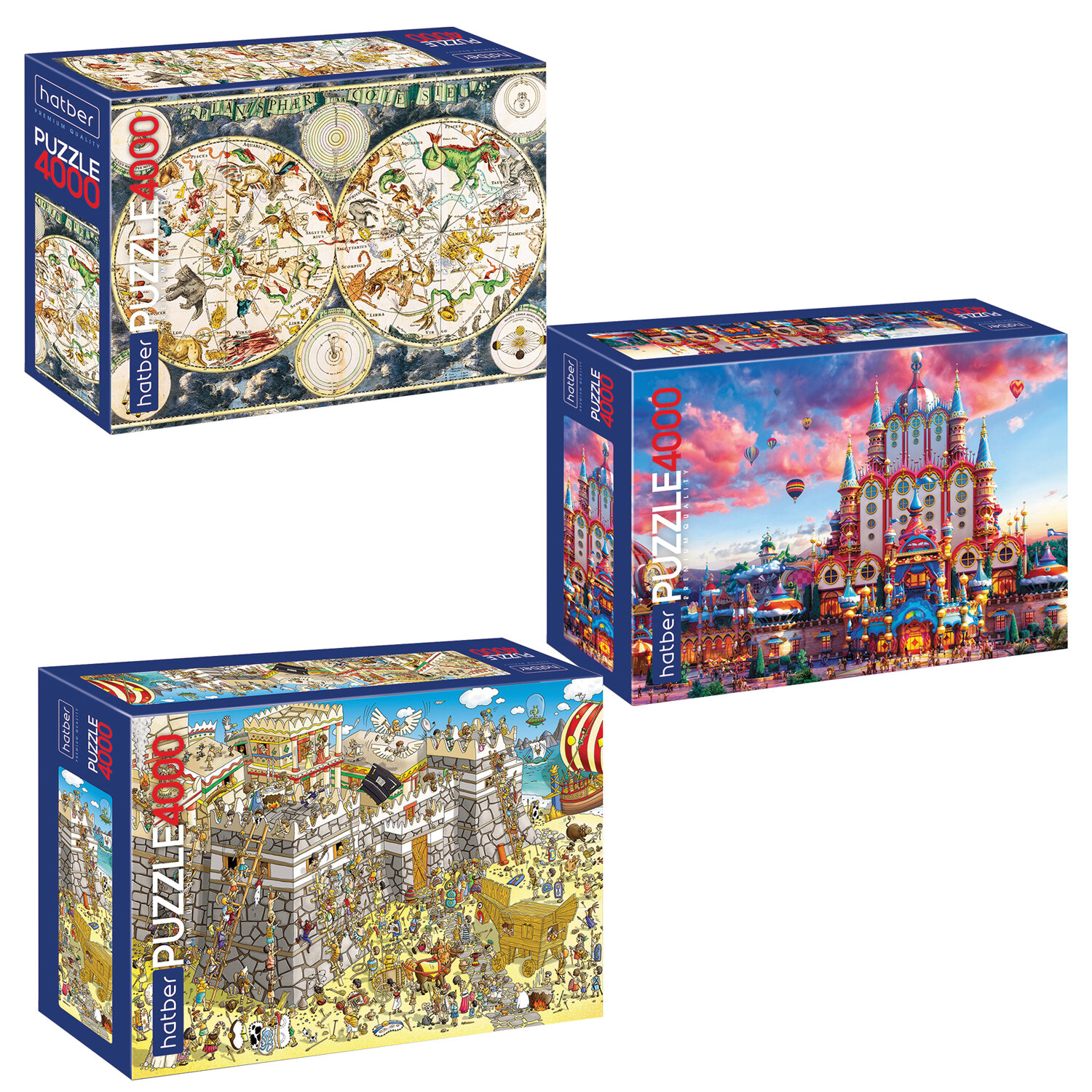 Пазл картонный Premium 4000 элементов АССОРТИ, 1350х960 мм, HATBER Код товара: 665840 1 130,45 ₽ Купить Производитель:HATBER Пазл Premium HATBER – это занимательная развивающая и обучающая игра, которая требует усидчивости, аккуратности, терпения и внимательности. Пазл премиум-класса состоит из 4000 элементов (18х18 мм), дополнительно упакованных в прозрачный пакетик. Яркий красочный дизайн найдет своих почитателей среди настоящих любителей собирать мозаику. Для производства пазлов использован специально разработанный европейский картон, толщина которого увеличена. Собирать элементы стало еще комфортнее! Размер готовой картины – 135х96 см. Упаковка – стильная подарочная коробка в термоусадочной пленке. Размер – 37х27х10 см. Поставляется в нескольких вариантах дизайна без возможности выбора.Производство: РоссияКоличество элементов: 4000 шт.Форма: прямоугольнаяОриентация: ассортиШирина: 1350 ммДлина: 960 ммПредназначение: универсальныйСерия: Пазл картонныйДизайн: АссортиМатериал: картонУпаковка: картонная коробкаВес: 2,29 кгРазмер упаковки: 9.4 × 37.2 × 26.9 смОбъём: 0.011 м3Промежуточная упаковка: 4 штТранспортная упаковка: 4 шт Сертификат-1.jpg Сертификат-2.jpg