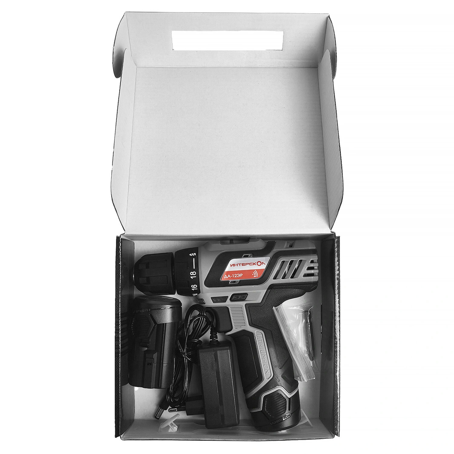 Дрель-шуруповерт безударная АККУМУЛЯТОРНАЯ, с двумя аккумуляторами 2 Ач, 18 В, ИНТЕРСКОЛ ДА-12ЭР Код товара: 671525 4 162,53 ₽ Купить Производитель:ИНТЕРСКОЛ Дрель-шуруповёрт аккумуляторная ИНТЕРСКОЛ ДА-12ЭР - универсальный инструмент для дома и мастерской. Сверлит дерево и металл, закручивает крепёж любой сложности. Подходит для сборки мебели, ремонта, монтажа. Лёгкая, с подсветкой, индикатором заряда. Аккумуляторная дрель-шуруповёрт ИНТЕРСКОЛ ДА-12ЭР — компактный и надёжный инструмент для бытовых и полупрофессиональных задач: сверления отверстий и закручивания крепежа. Технические характеристики: напряжение аккумулятора: 18 В; ёмкость аккумулятора: 2 Ач (в комплекте 2 шт.); тип аккумулятора: Li-Ion; максимальный крутящий момент: 28 Н·м; число ступеней регулировки крутящего момента: 18+1; количество скоростей: 2; частота вращения на холостом ходу: 1-я скорость: 0–400 об/мин; 2-я скорость: 0–1400 об/мин; тип патрона: быстрозажимной; диапазон зажимаемой оснастки: 0,8–10 мм; максимальный диаметр сверления: дерево: 20 мм; металл: 10 мм; вес (с аккумулятором): 0,96 кг; дополнительные функции: реверс, подсветка, индикатор уровня заряда. Преимущества и особенности: два аккумулятора в комплекте — непрерывная работа без простоев; Li-Ion аккумуляторы — отсутствие эффекта памяти, низкий саморазряд, высокая энергоёмкость; двухскоростной редуктор с металлическими шестернями — эффективность как при сверлении, так и при закручивании крепежа; быстрозажимной одномуфтовый патрон — быстрая замена оснастки одной рукой; автолок шпинделя — удобство смены насадок; LED-подсветка рабочей зоны — комфорт в условиях слабого освещения; индикатор уровня остаточного заряда — контроль энергии в аккумуляторе; компактный форм-фактор Т-типа и малый вес (0,96 кг) — удобство работы в труднодоступных местах и на весу; моноблочная часовая зарядка — быстрое восстановление энергии; экокейс из прочного ламинированного картона с пластиковой ручкой — удобное хранение и транспортировка инструмента и аксессуаров. Вся информация на сайте о товарах носит справочный характер и не является публичной офертой в соответствии с пунктом 2 статьи 437 ГК РФ. Производитель оставляет за собой право изменять характеристики товара, его внешний вид и комплектность без предварительного уведомления продавца.Производство: КитайТип: дрель-шуруповертТип движения: щеточныйНапряжение аккумулятора: 18 ВБыстрозажимной патрон: даКоличество скоростей: 2Регулировка крутящего момента: 19 ступенейКрутящий момент: 28 НмТип аккумулятора: Li-IonВремя зарядки: 0 чЕмкость аккумулятора: 2 АчСкорость холостого хода 1: 400 об/минСкорость холостого хода 2: 1400 об/минМакс. диаметр сверления (дерево): 20 ммМакс. диаметр сверления (металл): 10 ммРеверс: даПодсветка: даИндикатор зарядки: даКоличество аккумуляторов в комплекте: 2 шт.Длина: 200 ммШирина: 185 ммГлубина: 55 ммВес нетто: 960 гВид упаковки: экокейсСерия: ДАВес: 1,42 кгРазмер упаковки: 5.9 × 20.1 × 18.5 смОбъём: 0.0027 м3Промежуточная упаковка: 10 штТранспортная упаковка: 10 штШтрих-код: 4607950330186 Файлы
