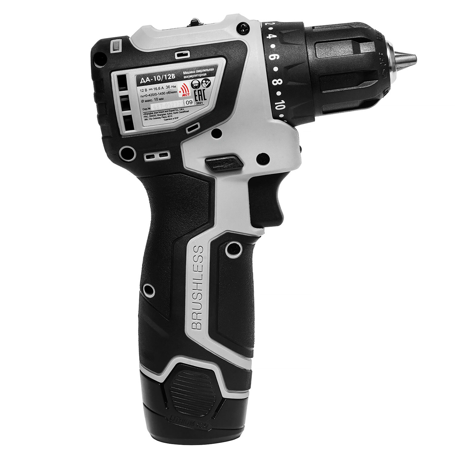Дрель-шуруповерт безударная бесщёточная АККУМУУЛЯТОРНАЯ, 1,5Ач, 12 В, ИНТЕРСКОЛ ДА-10/12В 36 Код товара: 671526 4 306,76 ₽ Купить Производитель:ИНТЕРСКОЛ Дрель-шуруповёрт аккумуляторная ИНТЕРСКОЛ ДА-10/12В 36 - компактный помощник для дома и мастерской. Сверлит дерево (до 26 мм) и металл (до 10 мм), закручивает крепёж. Идеальна для сборки мебели, ремонта, монтажа. Лёгкая (0,8 кг), с подсветкой и 2 АКБ Бесщёточная аккумуляторная дрель-шуруповёрт ИНТЕРСКОЛ ДА-10/12В 36 — универсальный инструмент для бытовых и профессиональных задач: сверления и закручивания крепежа. Технические характеристики: напряжение аккумулятора: 12 В; ёмкость аккумулятора: 1,5 Ач (в комплекте 2 шт.); тип аккумулятора: Li-Ion; крутящий момент: 36 Н·м; количество ступеней регулировки крутящего момента: 20 + 1; число скоростей: 2; обороты холостого хода: 1-я скорость: 0–420 об/мин; 2-я скорость: 0–1450 об/мин; диаметр патрона: 0,8–10 мм (быстрозажимной); макс. диаметр сверления: дерево: 26 мм; металл: 10 мм; вес: 0,8 кг. Преимущества и особенности: бесщёточный двигатель — на 30% выше энергоэффективность и увеличенный ресурс по сравнению с щёточными аналогами; 2 аккумулятора в комплекте — непрерывная работа без простоев; подсветка рабочей зоны — удобство в условиях слабого освещения; индикатор заряда — контроль уровня энергии в аккумуляторе; блокировка шпинделя — быстрая замена оснастки одной рукой; защита от случайного включения — безопасность эксплуатации; компактный размер и малый вес — комфорт при длительной работе на весу; двухскоростной редуктор — выбор режима для сверления или закручивания; обрезиненная рукоятка — надёжный хват и снижение вибрации. Вся информация на сайте о товарах носит справочный характер и не является публичной офертой в соответствии с пунктом 2 статьи 437 ГК РФ. Производитель оставляет за собой право изменять характеристики товара, его внешний вид и комплектность без предварительного уведомления продавца.Производство: КитайТип: дрель-шуруповертТип движения: бесщеточныйНапряжение аккумулятора: 12 ВБыстрозажимной патрон: даКоличество скоростей: 2Регулировка крутящего момента: 21 ступенейКрутящий момент: 36 НмТип аккумулятора: Li-IonВремя зарядки: 0 чЕмкость аккумулятора: 1.5 АчСкорость холостого хода 1: 420 об/минСкорость холостого хода 2: 1400 об/минМакс. диаметр сверления (дерево): 26 ммМакс. диаметр сверления (металл): 10 ммРеверс: даИндикатор зарядки: даКоличество аккумуляторов в комплекте: 2 шт.Длина: 136 ммШирина: 53 ммГлубина: 192 ммВес нетто: 800 гВид упаковки: коробкаСерия: ДАВес: 1,34 кгРазмер упаковки: 6.4 × 21.6 × 15.1 смОбъём: 0.0027 м3Промежуточная упаковка: 10 штТранспортная упаковка: 10 штШтрих-код: 4607950332807 Файлы