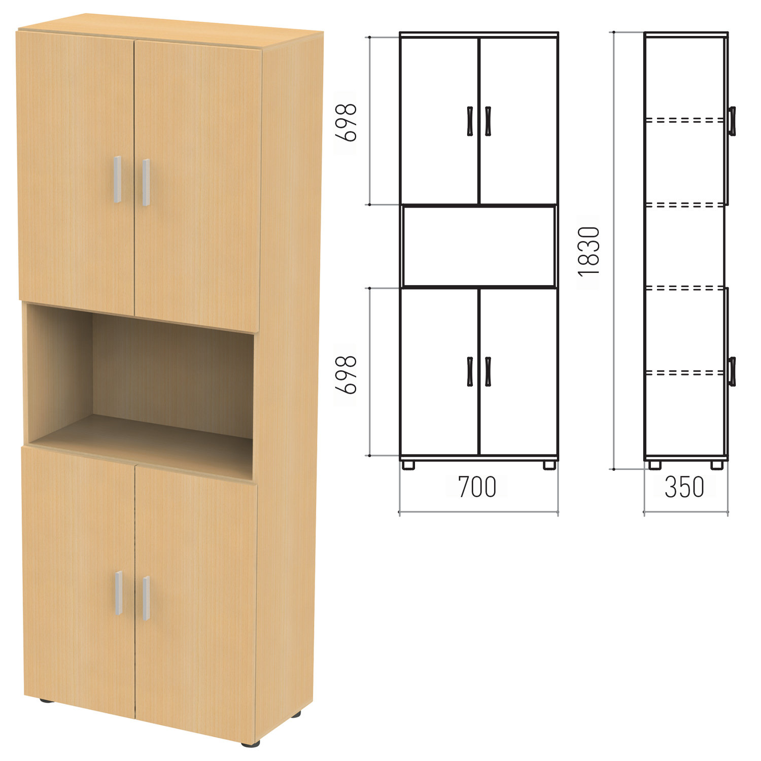 Шкаф полузакрытый "Канц", 700х350х1830 мм, цвет бук невский (КОМПЛЕКТ) Код товара: 980009 12 484,42 ₽ Купить Производитель:КАНЦ Шкаф предназначен для хранения документов, архивов и других предметов обихода. Регулируемые опоры позволяют компенсировать возможные неровности пола. Полки стационарные. Производство: РоссияКаркас и фасады - ЛДСП толщиной 16 мм.Кромка - ПВХ толщиной 0,5 мм.Задняя стенка - ДВП толщиной 3,2 мм.Регулируемые опоры.Поставляется в разобранном виде.В комплект входит крепеж и инструкция по сборке.4 полки.Цвет - бук невский.Размер (ШхГхВ) - 700х350х1830 мм.Вес: 49,6 кгОбъём: 0.0935 м3Промежуточная упаковка: 1 штТранспортная упаковка: 1 шт Файлы Приложение-1.zip Приложение-2.pdf Приложение-3.pdf Приложение-4.pdf