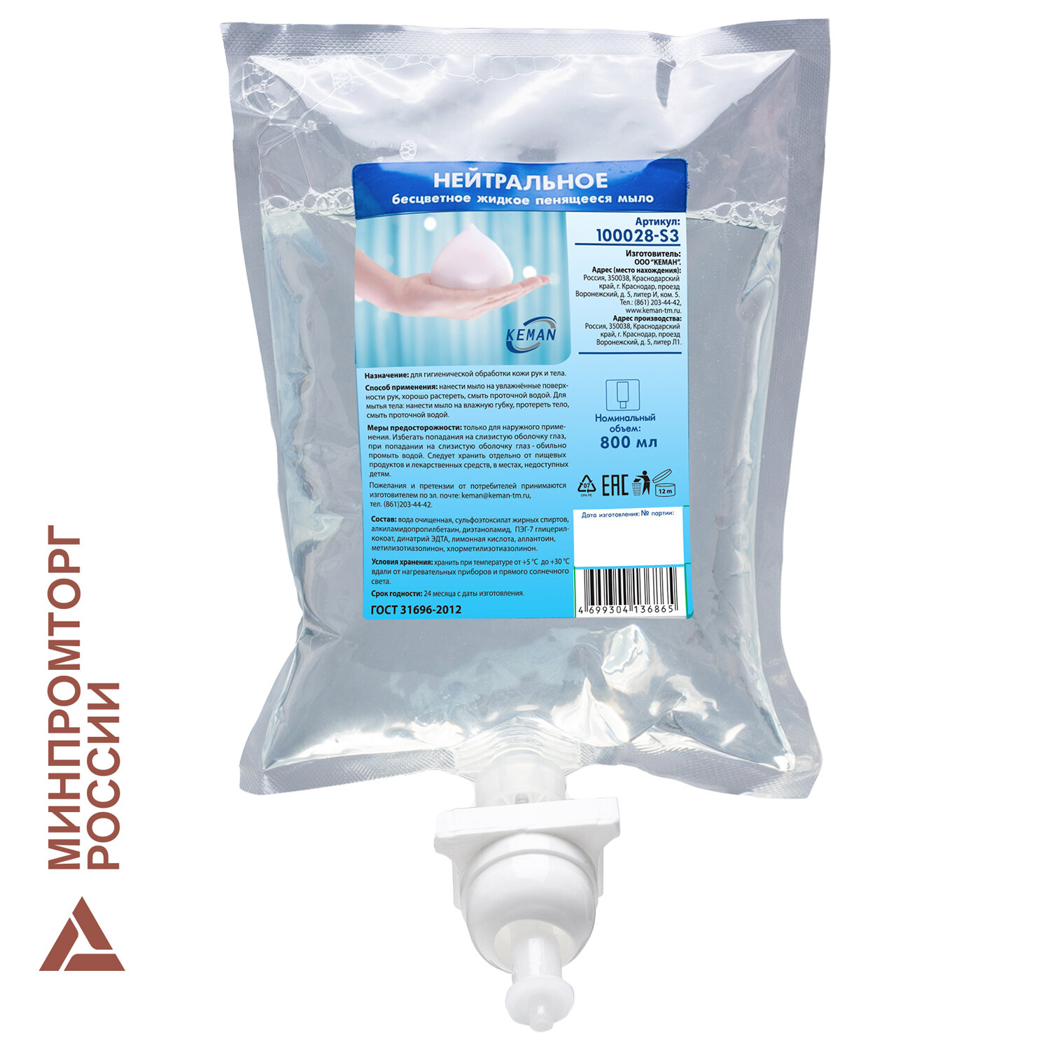 Картридж с жидким мылом-пеной одноразовый (Система S3), бесцветное, 0,8 л, KEMAN Код товара: 608336 585,14 ₽ Купить Производитель:KEMAN Жидкое мыло-пена KEMAN предназначено для гигиенической обработки кожи рук и тела на пищевых производствах, предприятиях общественного питания, в санаторно-курортных, детских и медицинских учреждениях, местах общественного пользования и т.д. Картридж объемом 800 мл предназначен для диспенсерной системы S3. Жидкое мыло-пена имеет мягкую основу. Нежно очищает и увлажняет кожу, придает ей гладкость и эластичность. В состав входят только высококачественные ингредиенты, полностью соответствующие европейским стандартам безопасности. Жидкое мыло-пена KEMAN может применяться людьми с чувствительной кожей. Меры предосторожности: только для наружного применения. Избегать попадания на слизистую оболочку глаз, при попадании – обильно промыть водой. Следует хранить отдельно от пищевых и лекарственных средств, в местах, недоступных детям. Способ применения: для мытья рук: нанести небольшое количество мыла-пены на увлажнённые поверхности рук, смыть проточной водой. для мытья тела: нанести мыло-пену на влажную губку, протереть кожные покровы, смыть проточной водой. Изготовлено по ГОСТу - 31696-2012. Условия хранения: от +5 до +30 °C вдали от нагревательных приборов и прямого солнечного света. Срок годности: 24 месяца с даты изготовления.Производство: РоссияДиспенсерная система : S3Объем картриджа: 0.8 лАртикул: 100028-S3Вид мыла: мыло-пенаКоличество порций мыла: 2000Одноразовый: даНазначение: для рук, для телаОтдушка: НейтральнаяЭффект от использования мыла: уходЦвет мыла: прозрачныйСрок годности: 24 месВес: 865 грРазмер упаковки: 4 × 28.4 × 13.9 смОбъём: 0.0017 м3Промежуточная упаковка: 6 штТранспортная упаковка: 6 штШтрих-код: 4699304136865 Файлы Приложение-1.pdf Приложение-2.pdf Сертификат-1.jpg Сертификат-2.jpg Сертификат-3.jpg