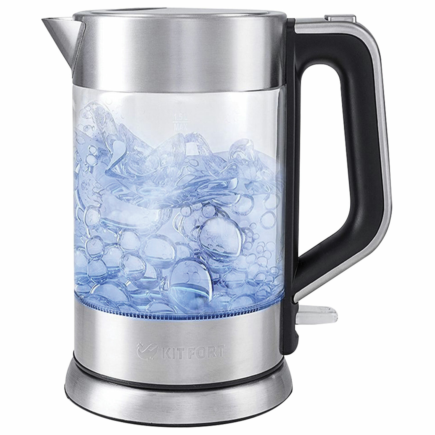 Чайник KITFORT КТ-617, 1,5 л, 2200 Вт, закрытый нагревательный элемент, стекло, серебристый Код товара: 454877 3 510,07 ₽ Купить Производитель:KITFORT Стильный и надежный электрический чайник KITFORT КТ-617 предназначен для кипячения воды дома, в офисе, на даче. Мощность чайника позволяет его использовать его в домах со слабой проводкой. Чайник автоматически отключается при закипании и при снятии с подставки, имеет защиту от перегрева и от включения без воды. Ножки подставки чайника противоскользящие. Кнопка открывания крышки расположена сверху на ручке, а кнопка включения – внизу. При включении чайника загорается синяя подсветка, которая является индикатором работы и одновременно художественно подсвечивает кипящую воду. Корпус чайника выполнен из стекла, а крышка и подставка – из сочетания пластмассы и нержавеющей стали. Мерная шкала нанесена на прозрачную часть корпуса. Ручка чайника пластиковая, не нагревается, за неё удобно браться. Производитель оставляет за собой право без предварительного уведомления вносить изменения в технические характеристики, комплектацию и конструкцию, не ухудшающие эксплуатационные характеристики изделия.Производство: КитайОбъем: 1.5 лМощность: 2200 ВтМатериал корпуса: термостойкое стеклоВид нагревательного элемента: закрытыйАвтоотключение при закипании: даСерия: КТ-617Отключение при отсутствии воды: даИндикатор включения: даИндикация уровня воды: даВращение на 360°: даПодсветка: даФильтр от накипи: даДлина шнура: 0.6 мЦвет корпуса: серебристыйШирина: 155 ммВысота: 232 ммГлубина: 220 ммВес: 1.2 кгРазмер упаковки: 22.4 × 22.8 × 17 смОбъём: 0.0087 м3Промежуточная упаковка: 1 штТранспортная упаковка: 1 штШтрих-код: 4680287566459 Файлы Приложение-1.pdf Сертификат-1.jpg Сертификат-2.jpg Сертификат-3.jpg Сертификат-4.jpg Сертификат-5.jpg Сертификат-6.jpg Сертификат-7.jpg Сертификат-8.jpg Сертификат-9.jpg Сертификат-10.jpg Сертификат-11.jpg Сертификат-12.jpg Сертификат-13.jpg Сертификат-14.jpg Сертификат-15.jpg Сертификат-16.jpg Сертификат-17.jpg Сертификат-18.jpg Сертификат-19.jpg