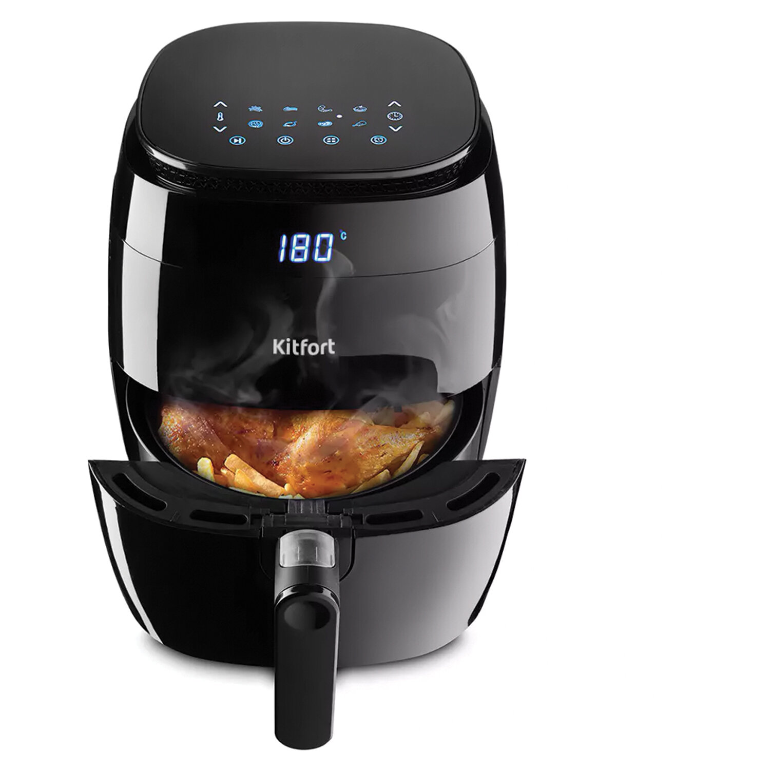 Аэрогриль KITFORT КТ-2202, 1500 Вт, 3,2 л, 8 программ, таймер, сенсорное управление, черный Код товара: 455950 9 168,89 ₽ Купить Производитель:KITFORT Аэрогриль KITFORT КТ-2202 – это современный и многофункциональный прибор, который станет вашим надежным помощником на кухне. С мощностью 1500 Вт и объемом чаши 3,2 литра он позволяет готовить разнообразные блюда: от выпечки и пиццы до мяса, рыбы и морепродуктов. Восемь автоматических программ и регулировка температуры от 80 до 200 °C дают возможность экспериментировать с рецептами, а функция поддержания тепла сохраняет блюдо горячим до подачи. Съемная чаша и корзина для фритюра упрощают процесс приготовления и уборки. Удобное кнопочное управление, дисплей с индикацией времени, температуры и режимов работы, а также звуковой сигнал делают использование аэрогриля простым и комфортным. Компактные размеры (27x32x33,5 см) и стильный черный корпус из пластика добавляют прибору эстетики. Производитель на свое усмотрение и без дополнительных уведомлений может менять комплектацию, внешний вид, страну производства и технические характеристики модели. Производитель на свое усмотрение и без дополнительных уведомлений может менять комплектацию, внешний вид, страну производства и технические характеристики модели.Производство: КитайТип товара: аэрогрильМощность: 1500 ВтКоличество режимов приготовления: 8Поддон для сбора жира: даОбъем: 3.2 лСерия: КТ-22Количество пластин в наборе: 0Регулировка температуры: даАвтоматическое отключение: даТаймер: даЗвуковой индикатор окончания работы: даСветовой индикатор работы: даКомплектация: инструкцияМатериал корпуса: пластикВысота: 335 ммШирина: 335 ммГлубина: 270 ммВес: 5,44 кгРазмер упаковки: 37.5 × 34 × 35 смОбъём: 0.0446 м3Промежуточная упаковка: 1 штТранспортная упаковка: 1 штШтрих-код: 4630017714025 Файлы Приложение-1.pdf Сертификат-1.jpg Сертификат-2.jpg Сертификат-3.jpg Сертификат-4.jpg Сертификат-5.jpg Сертификат-6.jpg Сертификат-7.jpg Сертификат-8.jpg Сертификат-9.jpg Сертификат-10.jpg Сертификат-11.jpg Сертификат-12.jpg