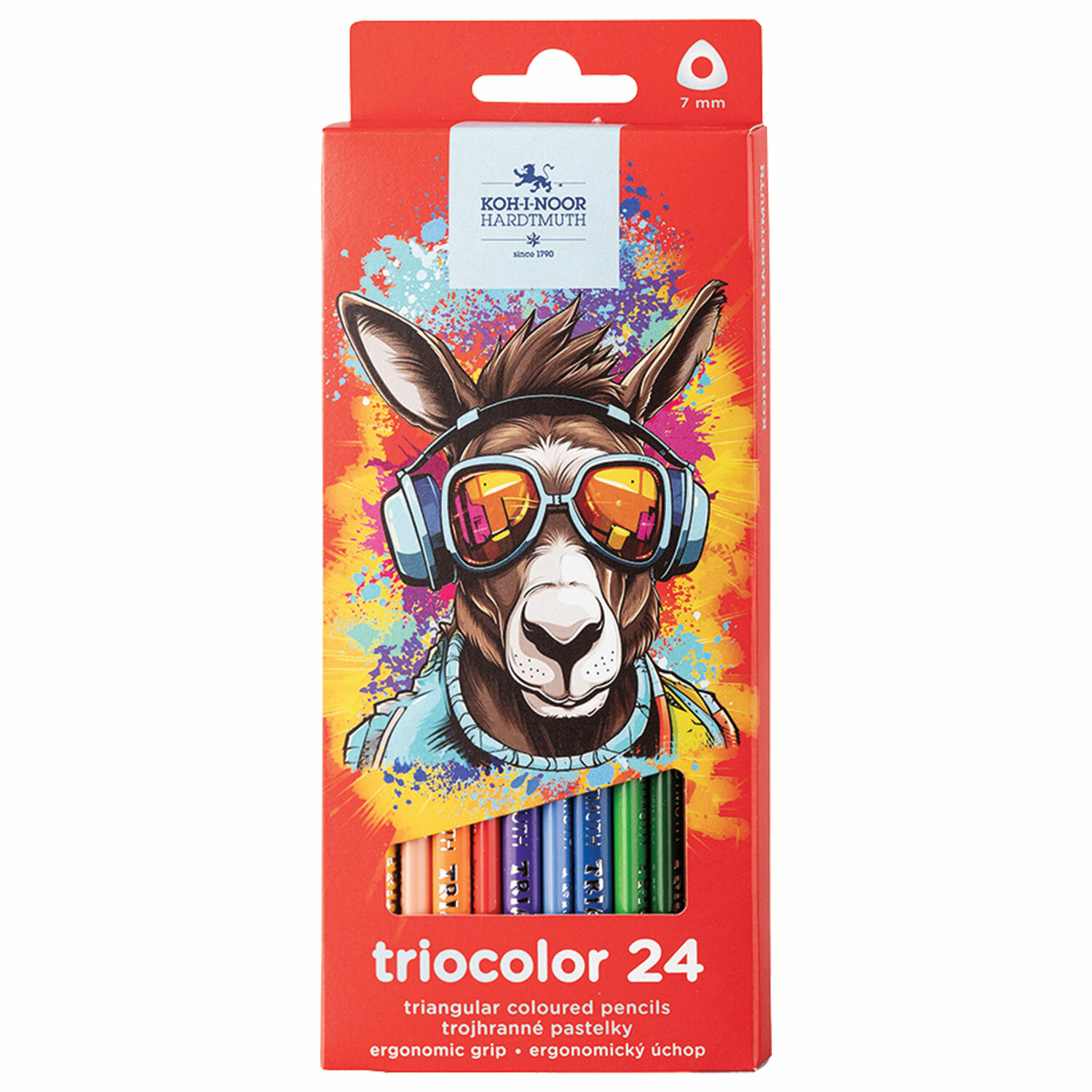 Карандаши цветные KOH-I-NOOR "DONKEY" 24 цвета, трехгранные, 3,2 мм, натуральное дерево, 3134/24 Код товара: 182085 535,06 ₽ Купить Производитель:KOH-I-NOOR Набор карандашей 24 цвета трехгранной формы KOH-I-NOOR "DONKEY" – новинка 2024 года! Товар предназначен для рисования на бумаге и картоне. Подходят как для школьников, так и для детей дошкольного возраста старше 3 лет. Цветные карандаши способствуют развитию творческого мышления, мелкой моторики рук, цветового восприятия, фантазии и воображения ребенка. Диаметр корпуса – 7 мм. Диаметр грифеля – 3,2 мм.Производство: ЧехияКоличество цветов: 24 шт.Количество карандашей: 24 шт.Серия: DONKEYФорма сечения корпуса: трехграннаяМатериал корпуса: деревоЛакированный корпус: даГрифель повышенной прочности: даЗаточка грифеля: даЛегко затачиваются: даДиаметр грифеля: 3.2 ммДлина карандаша: 175 ммУпаковка: картонная коробкаВес: 141 грРазмер упаковки: 1.6 × 19.8 × 8 смОбъём: 0.0004 м3Промежуточная упаковка: 60 штТранспортная упаковка: 60 штШтрих-код: 8593539368236 Сертификат-1.jpg Сертификат-2.jpg Сертификат-3.jpg