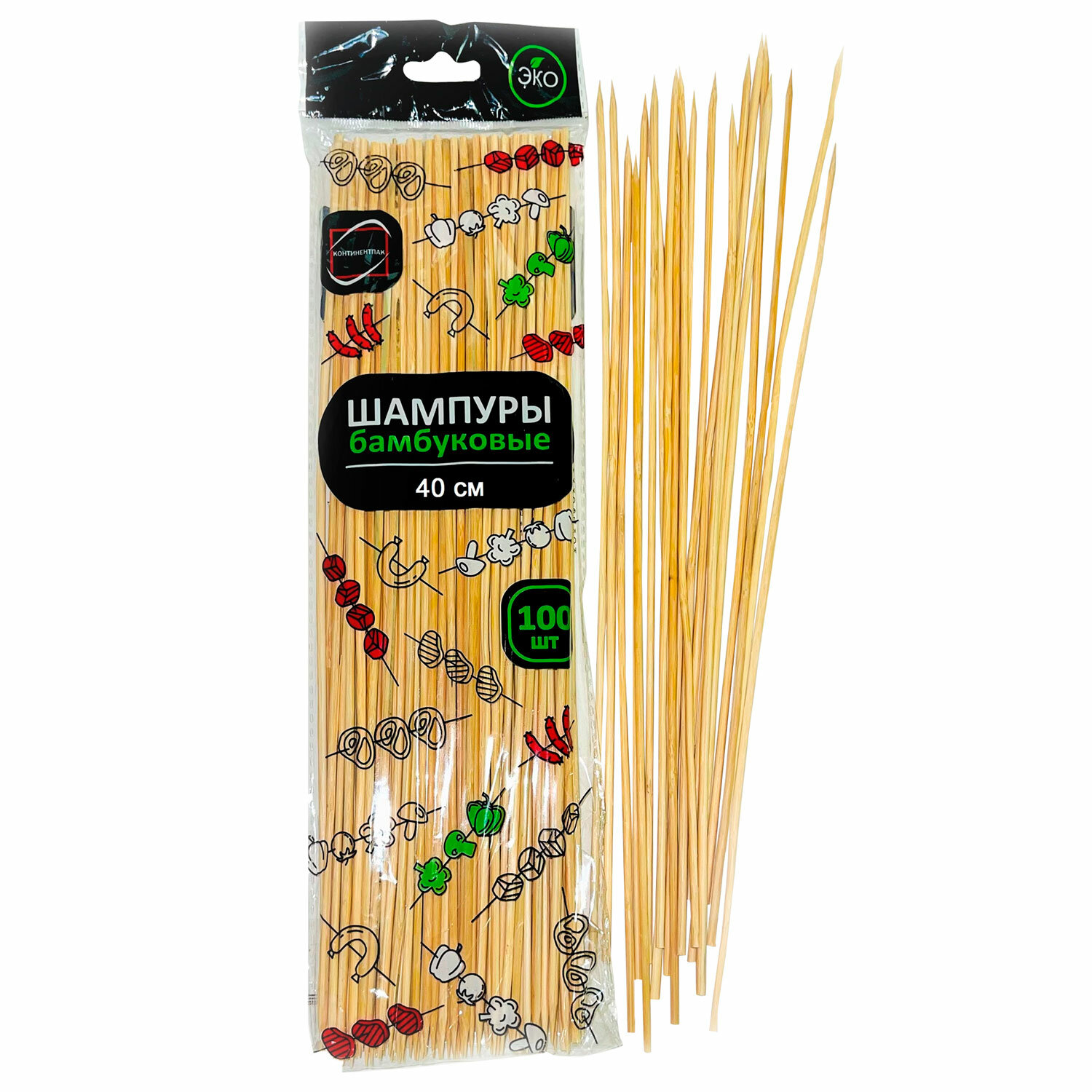Шпажки-шампуры для шашлыка бамбуковые 40 см, 100 штук, КП Код товара: 700663 174,41 ₽ Купить Производитель:КонтинентПак Шпажки-шампуры из бамбука используются в быту и в заведениях общественного питания. Они предназначены для приготовления мяса, рыбы и овощей. Бамбуковые шпажки (шампуры) идеально подходят для приготовления различных блюд: курицы, люля-кебаба, рыбы, шашлыка из мяса, а также грибов и овощей. Их можно использовать на мангале, барбекю, гриле или в духовом шкафу. Шампуры имеют один заострённый конец и круглую форму. Их поверхность гладкая, а структура – гибкая и прочная. В отличие от деревянных, бамбуковые шпажки менее подвержены деформации и их сложнее сломать. Благодаря этим преимуществам бамбуковые шампуры становятся универсальным и практичным решением для приготовления вкусных и аппетитных блюд.Производство: КитайТип товара: шампуры для шашлыкаДлина: 400 ммДиаметр: 2.5 ммМатериал: бамбукКоличество в упаковке: 100 шт.Вес: 325 грРазмер упаковки: 2.3 × 40.2 × 7.7 смОбъём: 0.0007 м3Промежуточная упаковка: 50 штТранспортная упаковка: 50 штШтрих-код: 4610231972449 Сертификат-1.jpg Сертификат-2.jpg Сертификат-3.jpg