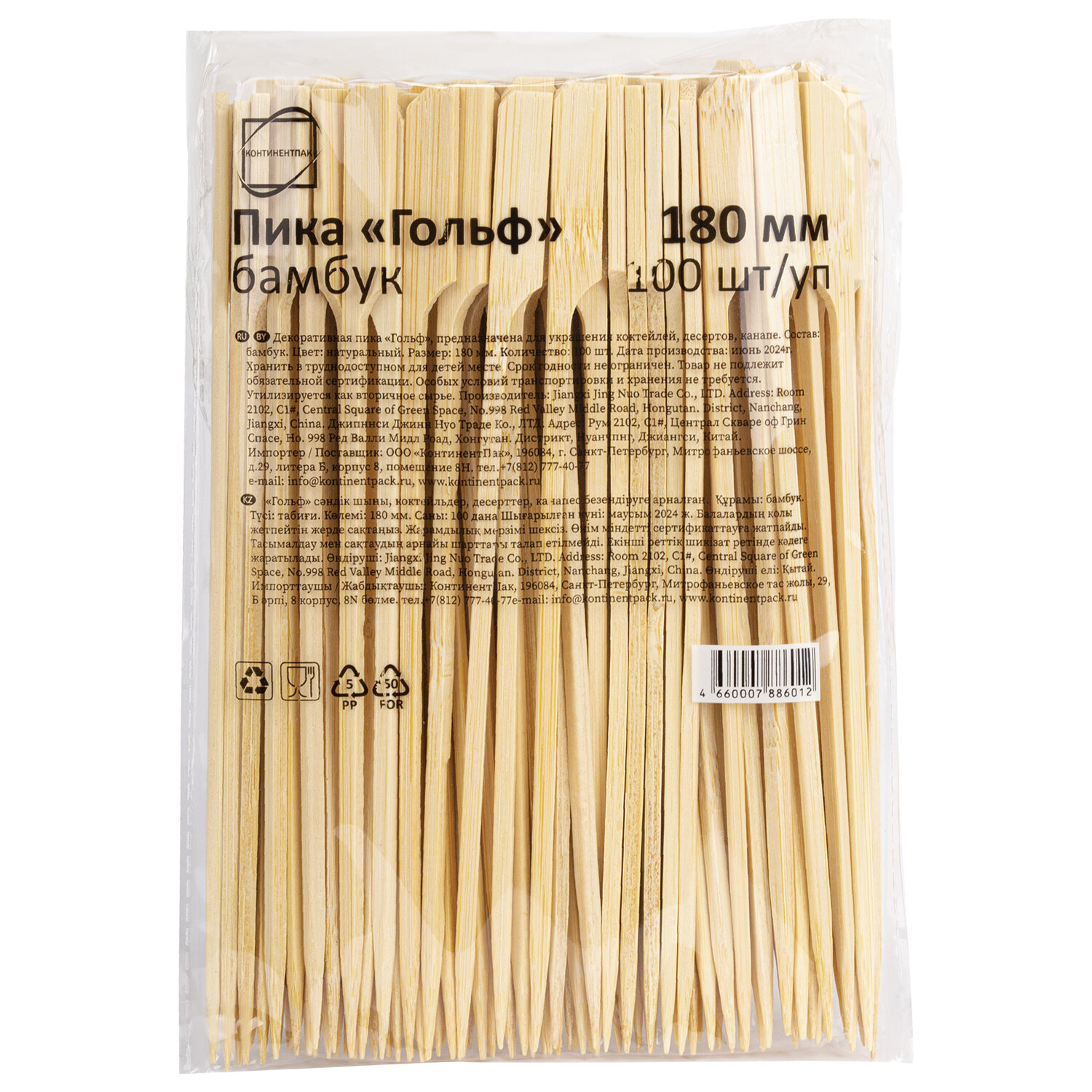 Пики для канапе бамбуковые ГОЛЬФ 18 см, 100 шт., КП Код товара: 700673 159,39 ₽ Купить Производитель:КонтинентПак Пики ГОЛЬФ – это стильные и функциональные аксессуары для приготовления аппетитных закусок. Изготовлены из качественного бамбука. Имеют удобные формы, которые позволяют закрепить различные начинки на шпажках. Благодаря острым концам ингредиенты легко крепятся на шпажки и идеально подходят для приготовления канапе с разнообразными начинками – мясом, рыбой, сыром, овощами и даже фруктами. Каждая пика изготовлена из 100% натурального бамбука, не подвергавшегося химической обработке. Бамбук не впитывает влагу, поэтому канапе остаются сочными и вкусными, а закуски станут украшением любого стола и порадуют гостей своей оригинальностью. Пики ГОЛЬФ также отличаются высокой жаропрочностью, что позволяет использовать их на гриле или в духовке без опасений о потере формы или выгорании. Элегантная форма и стильный дизайн пик придадут вашим блюдам особый шарм и привлекательность.Производство: КитайТип товара: пики (шпажки) для канапеДлина: 180 ммДиаметр: 2.5 ммМатериал: бамбукКоличество в упаковке: 100 шт.Серия: ГольфВес: 162 грРазмер упаковки: 3.1 × 18.4 × 11.8 смОбъём: 0.0006 м3Промежуточная упаковка: 40 штТранспортная упаковка: 40 штШтрих-код: 4660007886012 Сертификат-1.jpg Сертификат-2.jpg Сертификат-3.jpg