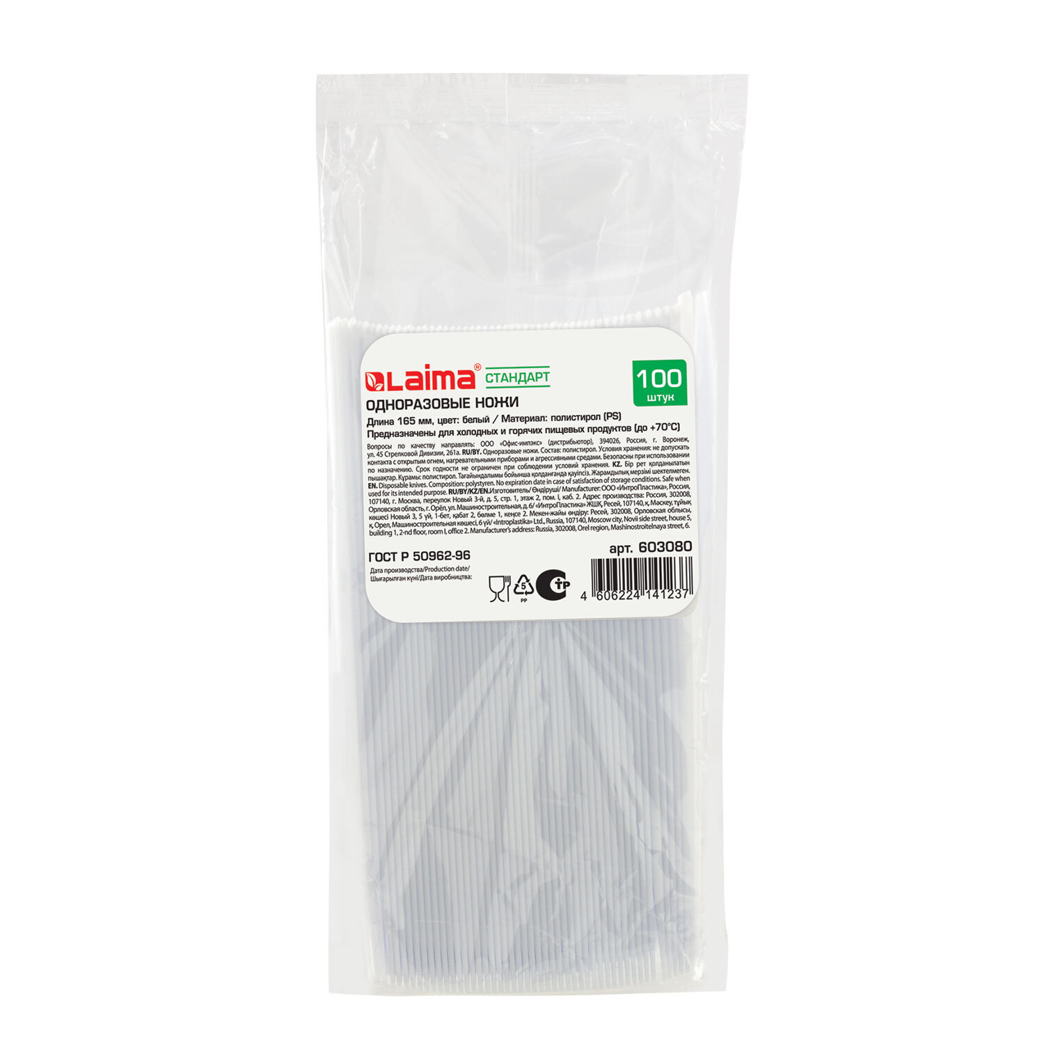 Нож одноразовый пластиковый 165 мм, белый, КОМПЛЕКТ 100 шт., СТАНДАРТ, LAIMA Код товара: 603080 198,56 ₽ Купить Производитель:LAIMA Одноразовые пластиковые ножи LAIMA подходят как для холодных, так и для горячих блюд. Используются на предприятиях общественного питания, в дороге, на пикнике, а также дома и в офисе. Для изготовления одноразовых ножей использован высококачественный пищевой экологически чистый полистирол. Изделия являются легкими и нетравмоопасными. При контакте с едой и напитками не выделяют вредных компонентов. Могут использоваться с горячей пищей температурой (до +70 °С). Длина – 16,5 см. В упаковке 100 штук.Производство: РоссияДлина: 165 ммКоличество в упаковке: 100 шт.Соответствует требованиям ГОСТа: ГОСТ Р 50962-96Материал: полистиролЦвет: белыйКомпакт-упаковка: даВес: 202 грРазмер упаковки: 3.1 × 16.6 × 8.4 смОбъём: 0.0005 м3Промежуточная упаковка: 25 штТранспортная упаковка: 25 штШтрих-код: 4606224141237 Файлы Приложение-1.pdf Сертификат-1.jpg Сертификат-2.jpg Сертификат-3.jpg