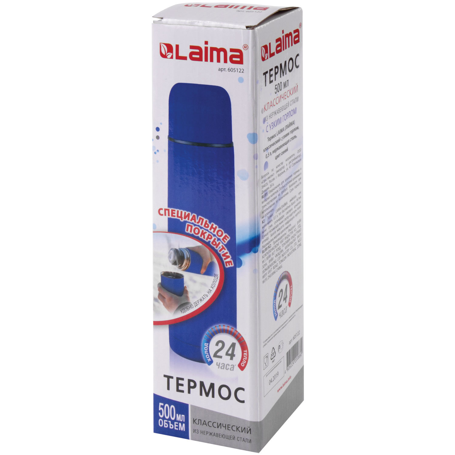 Термос LAIMA классический с узким горлом, 0,5 л, нержавеющая сталь, синий Код товара: 605122 553,18 ₽ Купить Производитель:LAIMA Термос классического дизайна с узким горлом изготовлен из высококачественной нержавеющей стали. Оснащен специальной кнопкой, позволяющей наливать напитки, не отвинчивая пробку. Предназначен для хранения горячих и холодных напитков. Имеет специальное покрытие. Держит температуру до 24 часов. Удержание температуры зависит от условий использования: частота открывания, время нахождения в открытом состоянии, температура окружающей среды, начальная температура наливаемой жидкости.Производство: КитайОбъем: 0.5 лТип горла: узкоеСерия: CLASSICВысота: 25 смДиаметр: 6.5 смЦвет: синийМатериал: нержавеющая стальТип упаковки: картонная коробкаВес: 390 грРазмер упаковки: 7.2 × 25.3 × 7.2 смОбъём: 0.0016 м3Промежуточная упаковка: 24 штТранспортная упаковка: 24 штШтрих-код: 4606224200880 Сертификат-1.jpg Сертификат-2.jpg Сертификат-3.jpg