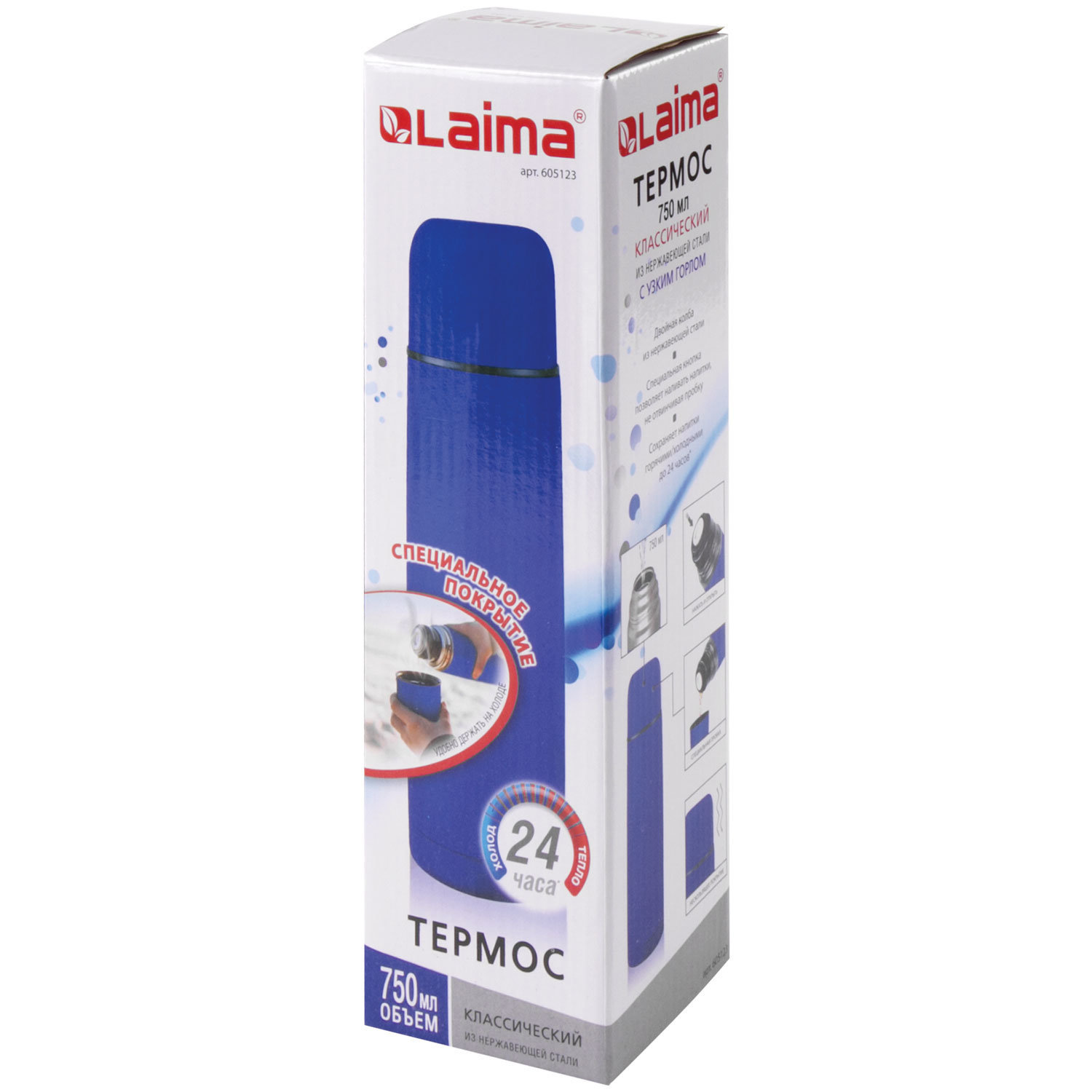 Термос LAIMA классический с узким горлом, 0,75 л, нержавеющая сталь, синий Код товара: 605123 727,91 ₽ Купить Производитель:LAIMA Термос классического дизайна с узким горлом изготовлен из высококачественной нержавеющей стали. Оснащен специальной кнопкой, позволяющей наливать напитки, не отвинчивая пробку. Предназначен для хранения горячих и холодных напитков. Имеет специальное покрытие. Держит температуру до 24 ч (в зависимости от условий использования).Производство: КитайОбъем: 0.75 лТип горла: узкоеСерия: CLASSICВысота: 29 смДиаметр: 8 смЦвет: синийМатериал: нержавеющая стальТип упаковки: картонная коробкаВес: 533 грРазмер упаковки: 7.6 × 29.3 × 7 смОбъём: 0.0021 м3Промежуточная упаковка: 24 штТранспортная упаковка: 24 штШтрих-код: 4606224200897 Сертификат-1.jpg Сертификат-2.jpg Сертификат-3.jpg