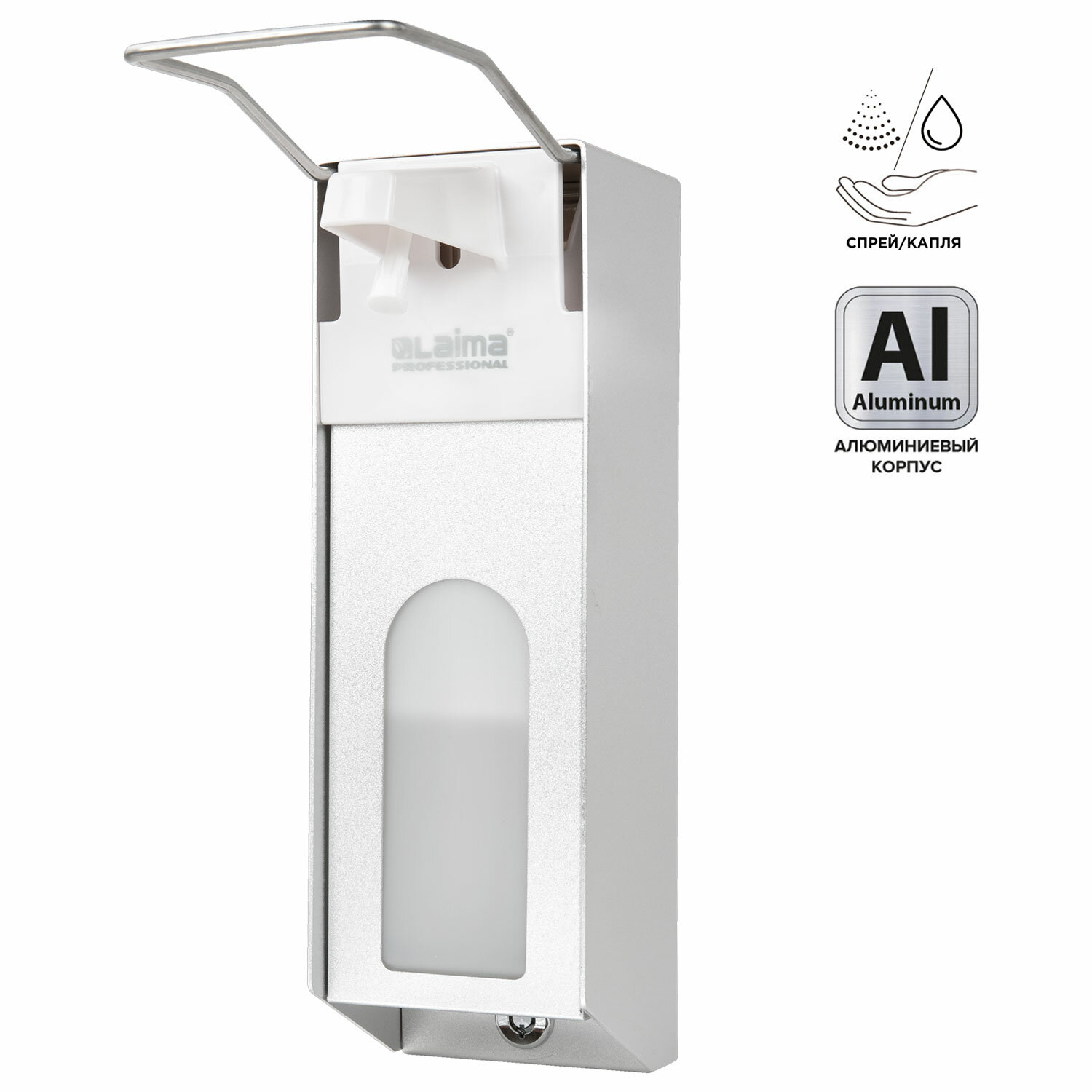 Дозатор локтевой для антисептика и мыла с замком УНИВЕРСАЛЬНЫЙ, с еврофлаконом 1 л, LAIMA, металлический, 607328 Код товара: 607328 3 565,44 ₽ Купить Производитель:LAIMA Тип подачи: спрей (с насадкой-распылителем) или капельный (без насадки-распылителя). Используемые средства: антиспептик или дезинфицирующее средство (с насадкой-распылителем), жидкое мыло или гелеобразный антисептик (без насадки-распылителя). Наливной диспенсер имеет объем 1 л. Антивандальный корпус устройства выполнен из алюминия. Механизм подачи расходных материалов при помощи локтевого привода позволяет избежать контакта рук с поверхностью диспенсера. Выдача жидкого антисептика осуществляется экономичными порциями. Диспенсер сочетается с расходными материалами других производителей. В комплект входят крепежные элементы. Оборудован замком с ключом. Особенности: подходит как для антисептиков и дезинфицирующих средств в жидкой не гелеобразной форме, так и для обычного жидкого и мыла и антисептиков в форме геля. При необходимости использовать гелевое средство или жидкое мыло открутите белую насадку распылителя (насадка имеет резьбовое соединение). Внимание! Перед применением рекомендуем сначала прокачать помпу диспенсера. Для этого, прежде чем залить жидкий антисептик в диспенсер, нажмите несколько раз на рычаг, чтобы удалить воздух из насоса. Преимущества диспенсера для антисептика, дезинфицирующих, а также асептических средств с локтевым приводом: 1) локтевой привод обеспечивает повышенную гигиеничность; 2) удобен в использовании; 3) возможность избежать передачи микробов другому пользователю; 4) практичность; 5) простота ухода; 6) наличие еврофлакона в комплекте.Производство: КитайОбъем: 1 лТип дозатора: универсальныйАртикул: 607328Серия: ClassicВид расходного материала: для антисептика и мылаСпособ подачи расходного материала: спрей/капляКоличество режимов дозирования: 0Наличие еврофлакона: даНаличие замка: даНаличие ключа: даМатериал ключа: металлКомплектация: крепежные материалыЦвет корпуса: белый/серебристыйМатериал корпуса: металл/пластикШирина: 93 ммВысота: 315 ммГлубина: 225 ммВес: 993 грРазмер упаковки: 10 × 31.2 × 23.4 смОбъём: 0.0066 м3Промежуточная упаковка: 20 штТранспортная упаковка: 20 штШтрих-код: 4606224298702 Файлы Сертификат-1.jpg Сертификат-2.jpg Сертификат-3.jpg Сертификат-4.jpg Сертификат-5.jpg Сертификат-6.jpg Сертификат-7.jpg Сертификат-8.jpg Сертификат-9.jpg Сертификат-10.jpg Сертификат-11.jpg Сертификат-12.jpg Сертификат-13.jpg Сертификат-14.jpg Сертификат-15.jpg Сертификат-16.jpg Сертификат-17.jpg Сертификат-18.jpg Сертификат-19.jpg Сертификат-20.jpg Сертификат-21.jpg Сертификат-22.jpg Сертификат-23.jpg Сертификат-24.jpg Сертификат-25.jpg Сертификат-26.jpg