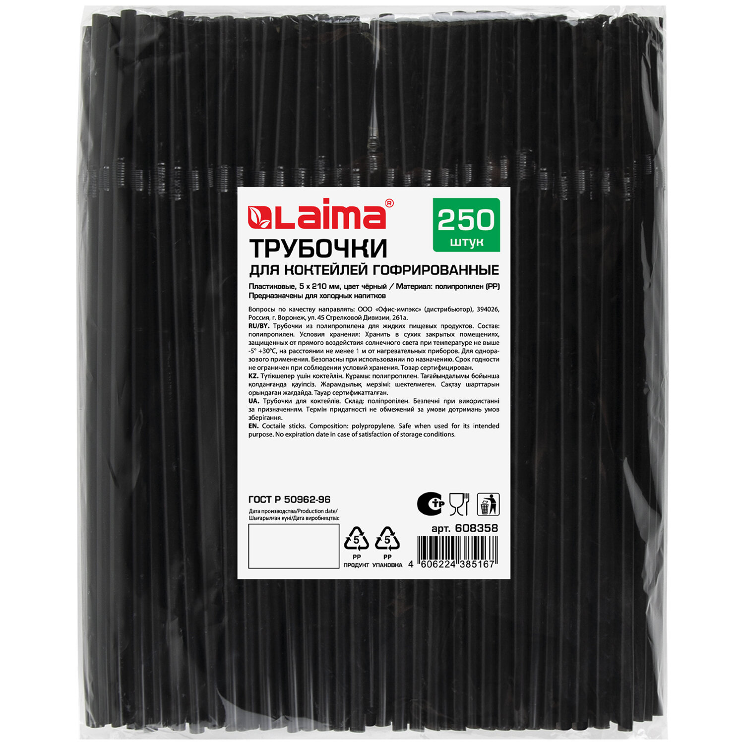 Трубочки для коктейлей гофрированные, пластиковые 5 х 210 мм, черные КОМПЛЕКТ 250 штук, LAIMA Код товара: 608358 85,96 ₽ Купить Производитель:LAIMA Стильные гофрированные черные трубочки для коктейлей LAIMA отлично подойдут как для предприятий общественного питания, так и для домашнего использования. Трубочки диаметром 5 мм идеальны для подачи воды, сока, морса, лимонада, холодного чая и кофе, алкогольных и безалкогольных коктейлей и других напитков. При изгибе трубочки гофра не деформируется и при желании возвращается в исходное положение. Коктейльные трубочки - неотъемлемый аксессуар любого фуршета, пикника или домашней вечеринки. Материал: полипропилен. Длина трубочки 210 мм, поставляются в комплекте 250 штук. Упаковка - полипропиленовый пакет.Производство: РоссияТип товара: трубочки гофрированныеДлина: 210 ммДиаметр: 5 ммКоличество в комплекте: 250 шт.Материал: полипропиленУпаковка: пакетЦвет: черныйВес: 106 грРазмер упаковки: 4.6 × 20.4 × 16 смОбъём: 0.0017 м3Промежуточная упаковка: 48 штТранспортная упаковка: 48 штШтрих-код: 4606224385167 Сертификат-1.jpg Сертификат-2.jpg Сертификат-3.jpg