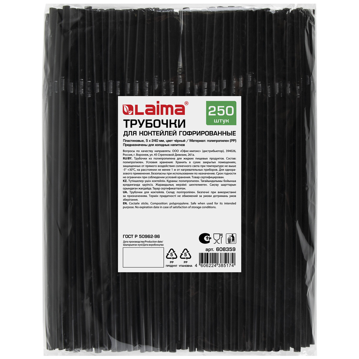 Трубочки для коктейлей гофрированные, пластиковые 5 х 240 мм, черные КОМПЛЕКТ 250 штук, LAIMA Код товара: 608359 103,27 ₽ Купить Производитель:LAIMA Стильные гофрированные черные трубочки для коктейлей LAIMA отлично подойдут как для предприятий общественного питания, так и для домашнего использования. Трубочки диаметром 5 мм идеальны для подачи воды, сока, морса, лимонада, холодного чая и кофе, алкогольных и безалкогольных коктейлей и других напитков. При изгибе трубочки гофра не деформируется и при желании возвращается в исходное положение. Коктейльные трубочки - неотъемлемый аксессуар любого фуршета, пикника или домашней вечеринки. Материал: полипропилен. Длина трубочки 240 мм, поставляются в комплекте 250 штук. Упаковка - полипропиленовый пакет.Производство: РоссияТип товара: трубочкиДлина: 240 ммДиаметр: 5 ммКоличество в комплекте: 250 шт.Материал: полипропиленУпаковка: пакетЦвет: черныйВес: 122 грРазмер упаковки: 4.4 × 23.5 × 15.8 смОбъём: 0.0019 м3Промежуточная упаковка: 48 штТранспортная упаковка: 48 штШтрих-код: 4606224385174 Сертификат-1.jpg Сертификат-2.jpg Сертификат-3.jpg