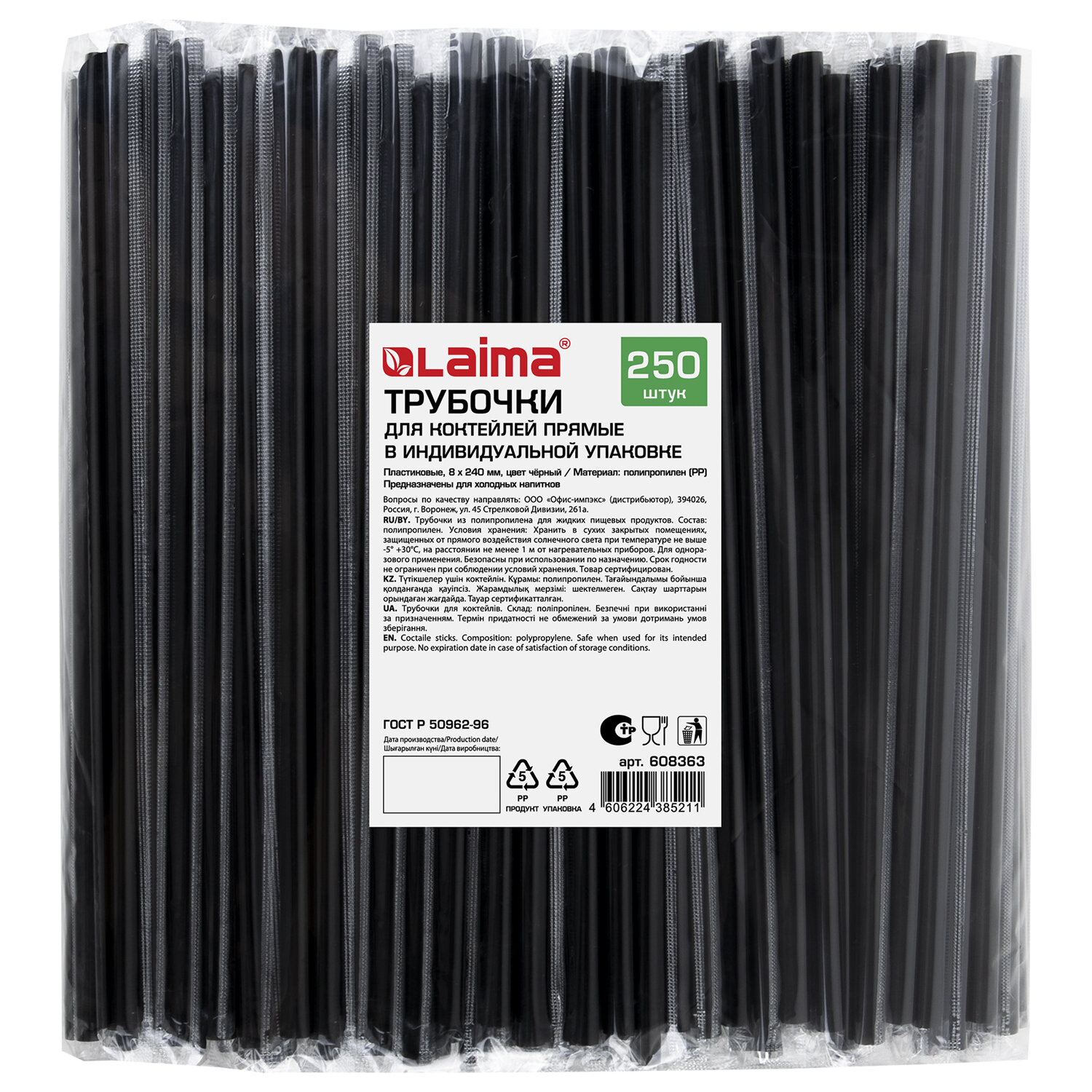 Трубочки для коктейлей прямые в индивидуальной упаковке, 8х240 мм, черные КОМПЛЕКТ 250 штук, LAIMA Код товара: 608363 291,12 ₽ Купить Производитель:LAIMA Стильные черные трубочки для коктейлей в индивидуальной упаковке LAIMA отлично подойдут как для предприятий общественного питания, так и для домашнего использования. Благодаря большому диаметру трубочек 8 мм их удобно использовать не только для жидких, но и для густых напитков, таких как йогурты и смузи, поскольку кусочки фруктов, ягод и овощей свободно проходят через отверстие трубочки. Материал: полипропилен. Длина трубочки 240 мм, поставляются в комплекте 250 штук. Упаковка - полипропиленовый пакет.Производство: РоссияТип товара: трубочки в индивидуальной упаковкеДлина: 240 ммДиаметр: 8 ммКоличество в комплекте: 250 шт.Материал: полипропиленУпаковка: пакетЦвет: черныйВес: 216 грРазмер упаковки: 8.5 × 28.4 × 24.9 смОбъём: 0.0043 м3Промежуточная упаковка: 20 штТранспортная упаковка: 20 штШтрих-код: 4606224385211 Сертификат-1.jpg Сертификат-2.jpg Сертификат-3.jpg