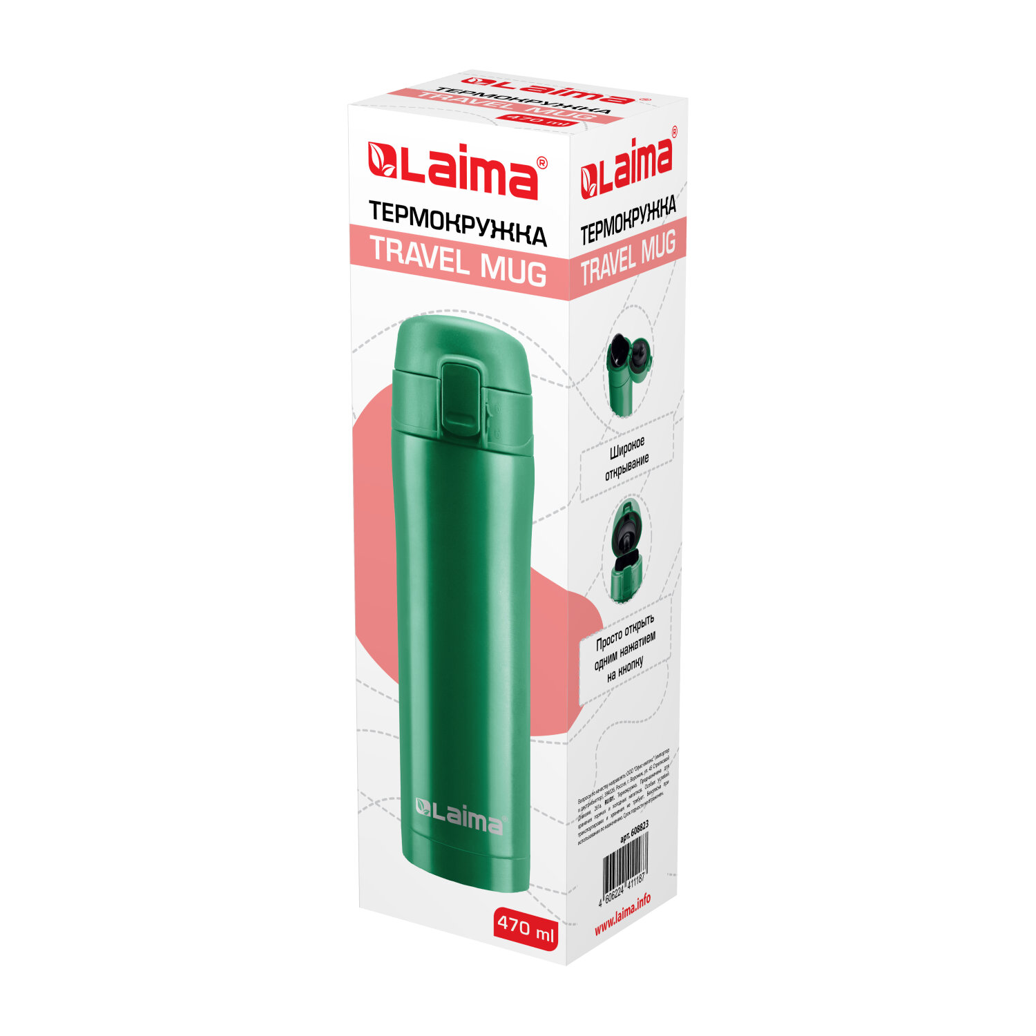 Термокружка 470 мл из нержавеющей стали SUS304, изумрудно-зеленый бархат матовый, LAIMA Код товара: 608823 578,04 ₽ Купить Производитель:LAIMA Термокружка LAIMA с двойной стальной стенкой изготовлена из нержавеющей стали марки 304 медицинского уровня. Сконструирована по вакуумной технологии. Термокружка обладает оптимальной формой для фиксации в держателе автомобиля, что позволяет использовать ее во время поездок. Термокружка снабжена откидывающейся крышкой с кнопкой, позволяющей с легкостью использовать ее одной рукой. Также, для защиты от непроизвольного нажатия кнопки, кружка имеет специальный защитный замок-предохранитель. Крышка обеспечивает герметичность и простоту использования. Избежать проливания напитка помогает специальный силиконовый клапан. Держит температуру до 18 ч (в зависимости от условий эксплуатации).Производство: КитайОбъем: 0.47 лОсновной цвет: зеленыйВысота: 23.5 смДиаметр ободка: 6.5 смМатериал корпуса: нержавеющая стальУпаковка: картонная коробкаВес: 365 грРазмер упаковки: 7.6 × 24.8 × 7.6 смОбъём: 0.0017 м3Промежуточная упаковка: 12 штТранспортная упаковка: 12 штШтрих-код: 4606224411187 Сертификат-1.jpg Сертификат-2.jpg Сертификат-3.jpg