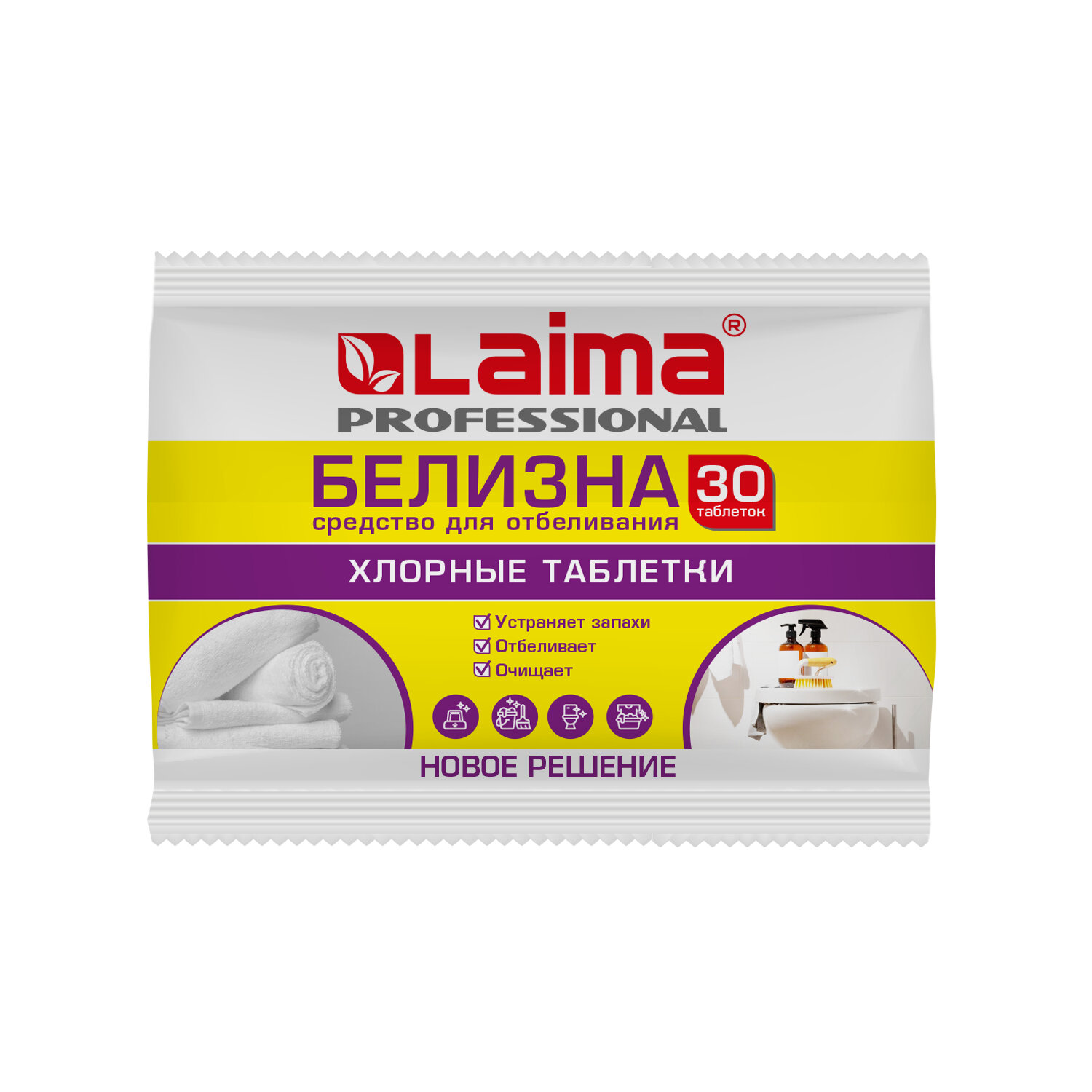 БЕЛИЗНА в хлорных таблетках для отбеливания, дезинфекции и уборки 30 шт., 0,1 кг, флоупак, LAIMA PROFESSIONAL Код товара: 609422 72,02 ₽ Купить Производитель:LAIMA Белизна в таблетках LAIMA PROFESSIONAL – это удобное средство на основе хлора. Предназначено для отбеливания, дезинфекции и уборки. Имеет широкую область применения и высокую эффективность обеззараживания. Средство представляет собой быстрорастворимые таблетки белого цвета с запахом хлора массой 3,2-3,5 г. Состав: натриевая соль дихлоризоциануровой кислоты 32,0-35,0%, адипиновая кислота, гидрокарбонат натрия (сода). Количество в упаковке – 30 таблеток. Возможно отклонение от номинального количества: ± 4,5% по ГОСТ 8.579-2002. Область применения средства: • Отбеливание ХБ и льняных тканей; • Удаление пятен, восстановление белизны на ХБ и льняных тканях; • Уборка поверхностей, удаление запахов, дезинфекция пола, стен, дверей, сантехники в помещениях (административные здания, гостиницы, общественные туалеты); • Очистка, удаление сложных загрязнений на поверхностях; • Мытье посуды в домашних условиях, в заведениях общественного питания (школьные столовые, рестораны, кафе); • Очистка резиновых, мягких и пластиковых игрушек; • Уборка транспортных средств (автобусы, трамваи, троллейбусы, такси); • Удаление запаха и очистка клеток домашних животных. • Применение в стиральных машинах. Меры предосторожности: не превышать норму таблеток при приготовлении рабочего раствора. Не использовать для окрашенных тканей! После обработки ткани обильно прополоскать! Применение в стиральных машинках возможно, если производитель допускает применение хлорсодержащих средств. Работу со средством проводить в резиновых перчатках. При попадании средства на кожу смыть его водой. При попадании в глаза промыть их под струей воды. Условия хранения: хранить отдельно от лекарственных препаратов и пищевых продуктов в вентилируемом сухом месте, недоступном детям, вдали от источников тепла и солнечного света, при температуре от -45 до +40 °С. Срок годности – 5 лет.Производство: РоссияТип средства: белизнаНазначение: универсальноеОбъем: 100 мл/гВид средства: таблеткиСерия: Белизна в таблеткахДозатор: нетВид упаковки: флоупакСрок годности: 60 месВес: 108 грРазмер упаковки: 2.6 × 13.2 × 6.2 смОбъём: 0.0002 м3Промежуточная упаковка: 30 штТранспортная упаковка: 30 штШтрих-код: 4644348861334 Файлы Сертификат-1.jpg Сертификат-2.jpg Сертификат-3.jpg Сертификат-4.jpg Сертификат-5.jpg Сертификат-6.jpg Сертификат-7.jpg Сертификат-8.jpg Сертификат-9.jpg Сертификат-10.jpg Сертификат-11.jpg Сертификат-12.jpg Сертификат-13.jpg Сертификат-14.jpg Сертификат-15.jpg Сертификат-16.jpg Сертификат-17.jpg Сертификат-18.jpg Сертификат-19.jpg Сертификат-20.jpg Сертификат-21.jpg Сертификат-22.jpg Сертификат-23.jpg Сертификат-24.jpg Сертификат-25.jpg