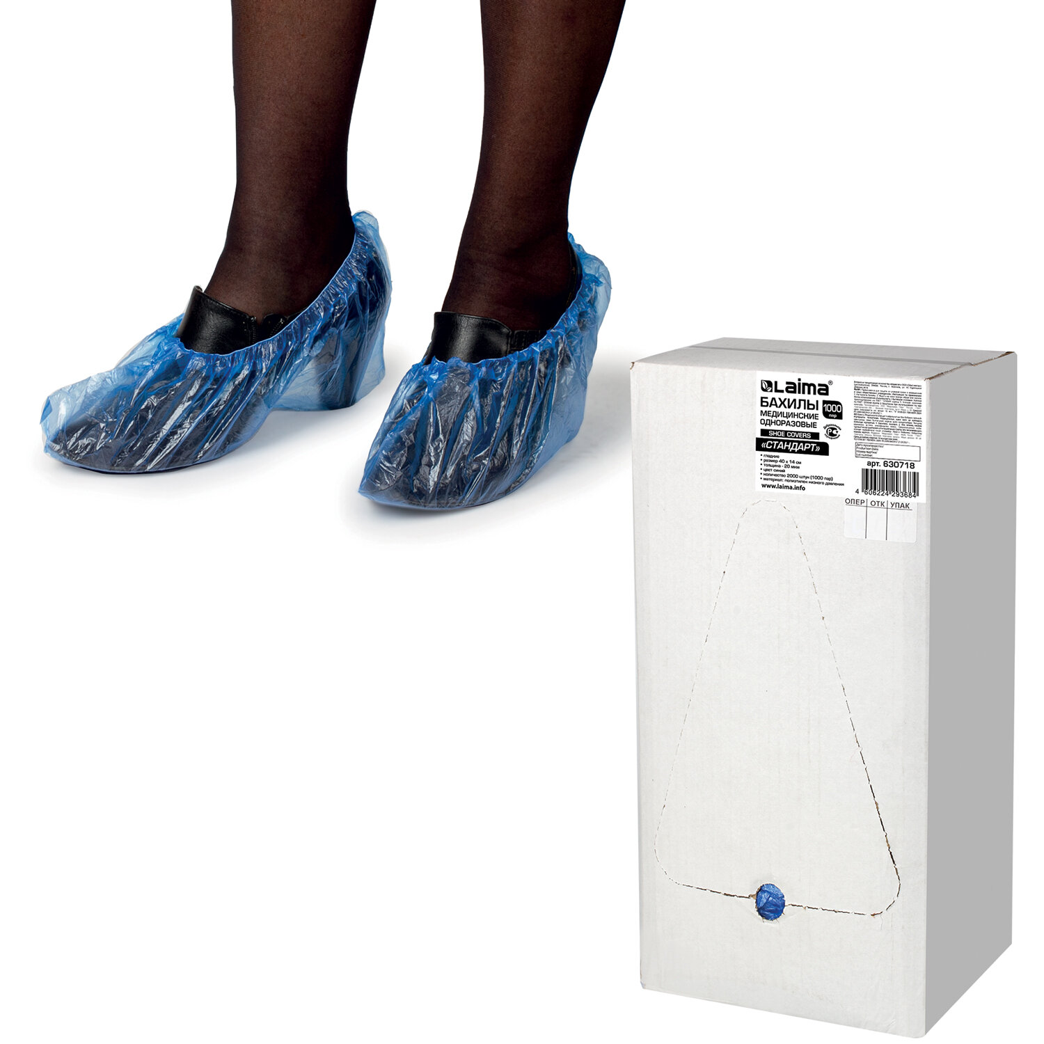 Бахилы КОМПЛЕКТ 2000 шт. (1000 пар) в упаковке, СТАНДАРТ, размер 40х14 см, 2,8 г, ПНД, LAIMA Код товара: 630718 1 820,35 ₽ Купить Производитель:LAIMA Бахилы ЛАЙМА – стандартный атрибут любого медицинского и фармацевтического учреждения, косметологических кабинетов, пищевых предприятий, особо чистых производств, лабораторий и других помещений. Одноразовые бахилы синего цвета обладают хорошими показателями плотности (22 мкм) и весом 2,8 г, а также надежностью. Бахилы из гладкой полиэтиленовой пленки низкого давления — прекрасное средство защиты полов и помещений от уличной грязи и пыли, т.к. они плотно сидят на обуви. Обладают универсальным размером 40х14 см. Поставляются в комплекте по 2000 штук (1000 пар).Производство: РоссияКоличество в комплекте: 1000 парКоличество в комплекте: 2000 шт.Серия: ПНДТолщина: 20 мкмДлина: 40 смВысота: 14 смПоверхность: гладкаяЦвет: синийМатериал: ПНД (полиэтилен низкого давления)Тип сырья: первичноеВес пары: 2.8 гВес: 2,67 кгРазмер упаковки: 16.2 × 42.5 × 20.1 смОбъём: 0.0156 м3Промежуточная упаковка: 6 штТранспортная упаковка: 6 штШтрих-код: 4606224293684 Файлы Приложение-1.pdf Приложение-2.pdf Приложение-3.pdf Сертификат-1.jpg