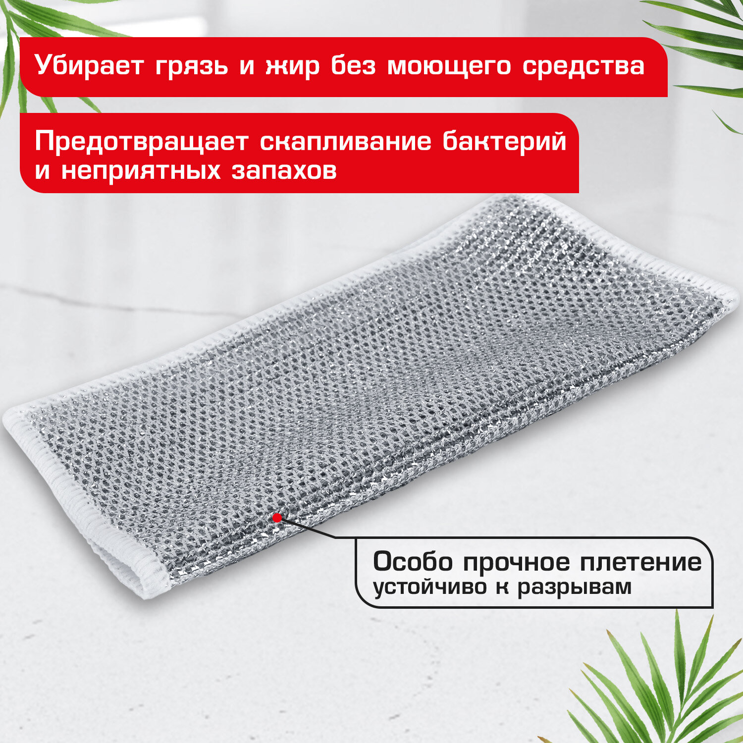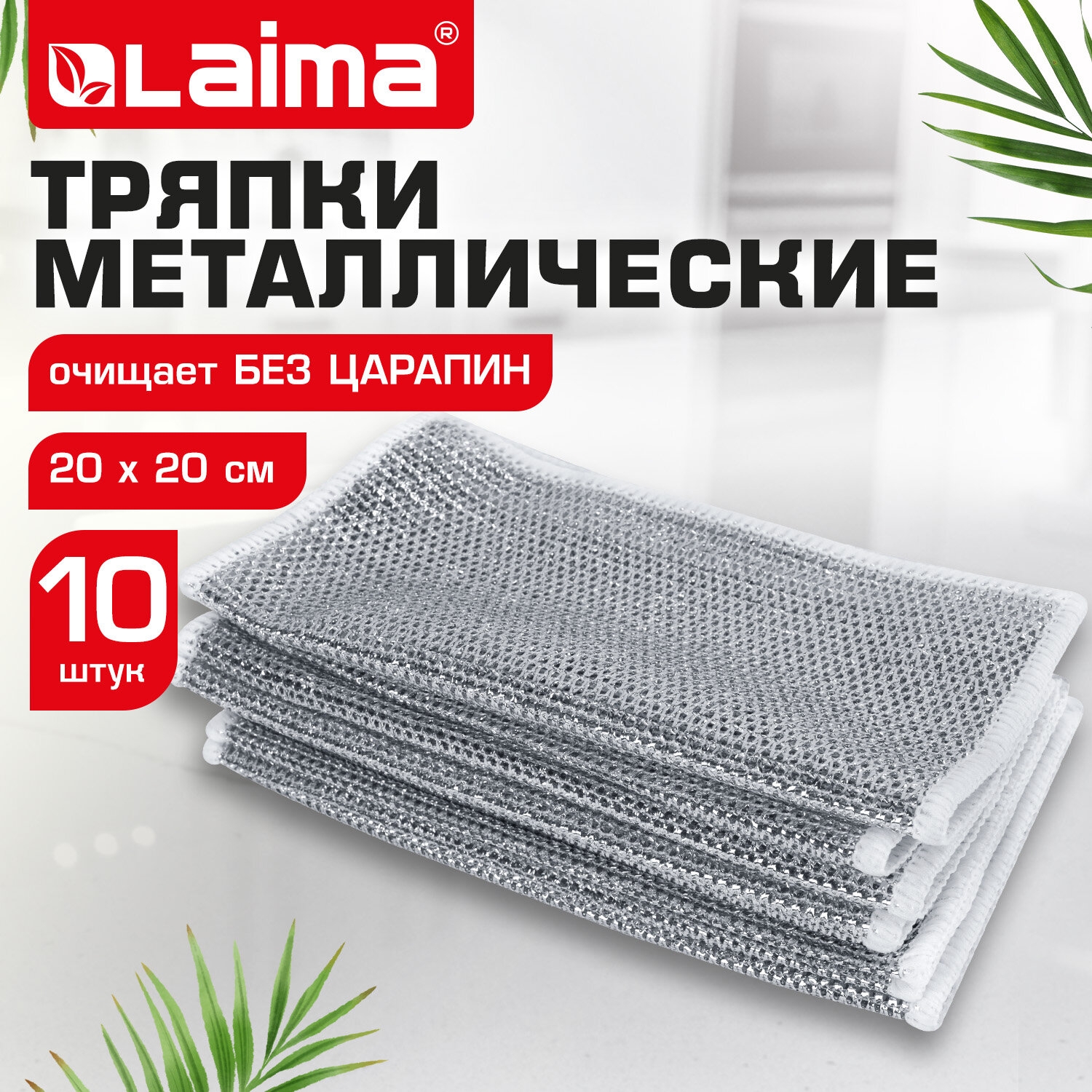 Тряпки-салфетки металлические, сетка-скрабер, 20х20 см, КОМПЛЕКТ 10 штук, для мытья посуды и уборки, не оставляет царапин, LAIMA Код товара: 700065 237,07 ₽ Купить Производитель:LAIMA Тряпка-салфетка скрабер LAIMA – это инновационный продукт в мире уборки! Тряпка-салфетка скрабер удаляет любые типы загрязнений, даже в отсутствии моющих средств. Она не впитывает запахи и имеет долгий срок службы. Тряпка-салфетка скрабер изготовлена из гипоаллергенного абразивного материала РЕТ, который эффективно справляется с жиром и грязью на самых разных поверхностях. Тряпка-салфетка скрабер не впитывает влагу и позволяет отмывать трудно выводимые загрязнения без химии. Не оставляет разводов и царапин. Благодаря специальной узелковой структуре сетки тряпка-салфетка скрабер может быть использована для мытья посуды, кастрюль, сковородок, гриля, для очистки овощей и фруктов, для мытья кухонных поверхностей, сантехники, мебельных фасадов. Безопасна для стеклянных, тефлоновых, керамических, эмалированных поверхностей. Тряпка-салфетка скрабер легко очищается от муки, каши, жира и при этом не теряет своих исходных свойств. Она быстро сохнет и не впитывает бактерии. Размер тряпки-салфетки – 20х20 см. Комплект – 10 штук.Производство: КитайМатериал: полиэтилентерефталатПрименение: для мытья посудыКоличество в упаковке: 10 шт.Чистящий слой: абразивныйСерия: -Цвет: серебристыйРазмер: 20х20 смВес: 5.5 гУпаковка: пакет с европодвесомРазмер упаковки: 2.8 × 21.9 × 11.6 смОбъём: 0.0006 м3Промежуточная упаковка: 144 штТранспортная упаковка: 144 штШтрих-код: 4606224465586 Файлы Сертификат-1.jpg Сертификат-2.jpg Сертификат-3.jpg Сертификат-4.jpg Сертификат-5.jpg Сертификат-6.jpg Сертификат-7.jpg Сертификат-8.jpg Сертификат-9.jpg Сертификат-10.jpg Сертификат-11.jpg Сертификат-12.jpg Сертификат-13.jpg Сертификат-14.jpg Сертификат-15.jpg Сертификат-16.jpg Сертификат-17.jpg Сертификат-18.jpg Сертификат-19.jpg Сертификат-20.jpg Сертификат-21.jpg Сертификат-22.jpg Сертификат-23.jpg Сертификат-24.jpg Сертификат-25.jpg Сертификат-26.jpg