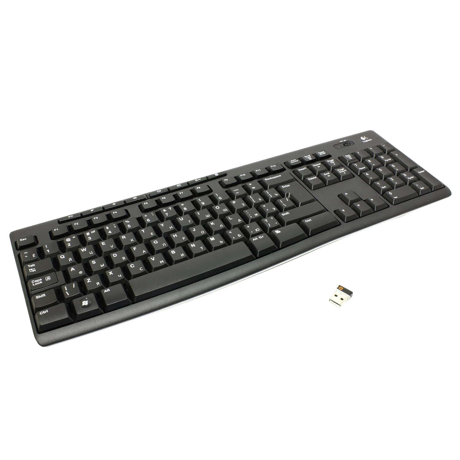 Клавиатура беспроводная LOGITECH K270, USB, 104 клавиши + 8 дополнительных клавиш, мультимедийная, черная Код товара: 511448 4 860,96 ₽ Купить Производитель:LOGITECH Надежное беспроводное соединение практически в любом месте — благодаря приемнику Logitech Unifying, к которому можно подключить до шести мышей и клавиатур, совместимых с технологией Unifying. Элегантная клавиатура занимает мало места и удобна в работе благодаря привычной полноразмерной раскладке, включающей цифровую панель, и широкой фигурной клавише пробела. Теперь часто используемые команды всегда будут у вас под рукой благодаря восьми функциональным клавишам для быстрого доступа к Интернету, электронной почте, а также функциям воспроизведения, паузы, регулировки громкости и т. д. Можно работать и играть где угодно — беспроводная связь позволяет практически исключить какие-либо задержки, сбои и помехи при работе в радиусе до 10 метров. Миниатюрный беспроводной приемник можно постоянно держать подключенным к ноутбуку. Его не нужно отключать каждый раз, когда вы перемещаетесь на новое место, и клавиатура всегда остается подключенной. Также не придется беспокоиться о замене батарей: срок службы батареи — до 24 месяцев.** Функция автоматического переключения в режим ожидания помогает экономить энергию. Настройка занимает несколько секунд — достаточно просто вставить беспроводной приемник в USB-порт компьютера и приступить к работе с клавиатурой без какого-либо программного обеспечения. Влагозащищенная конструкция, позволяющая не беспокоиться о порче оборудования из-за случайного попадания на него жидкости.Производство: КитайТип клавиатуры: мембраннаяВид клавиатуры: беспроводнаяНазначение: для ПКИнтерфейс: USBРадиус действия: 10 мОбщее количество клавиш: 104Количество дополнительных клавиш: 8 шт.Полноразмерныe клавиши: "BackSpace", "Enter", "пробел"Питание клавиатуры: 2 батареи АААДлина: 150 ммШирина: 442 ммВысота: 18 ммЦвет: черныйВес: 500 гРазмер упаковки: 3.2 × 45.7 × 15.7 смОбъём: 0.0027 м3Промежуточная упаковка: 4 штТранспортная упаковка: 4 штШтрих-код: 5099206033030 Файлы Сертификат-1.jpg Сертификат-2.jpg Сертификат-3.jpg Сертификат-4.jpg Сертификат-5.jpg Сертификат-6.jpg Сертификат-7.jpg Сертификат-8.jpg Сертификат-9.jpg Сертификат-10.jpg