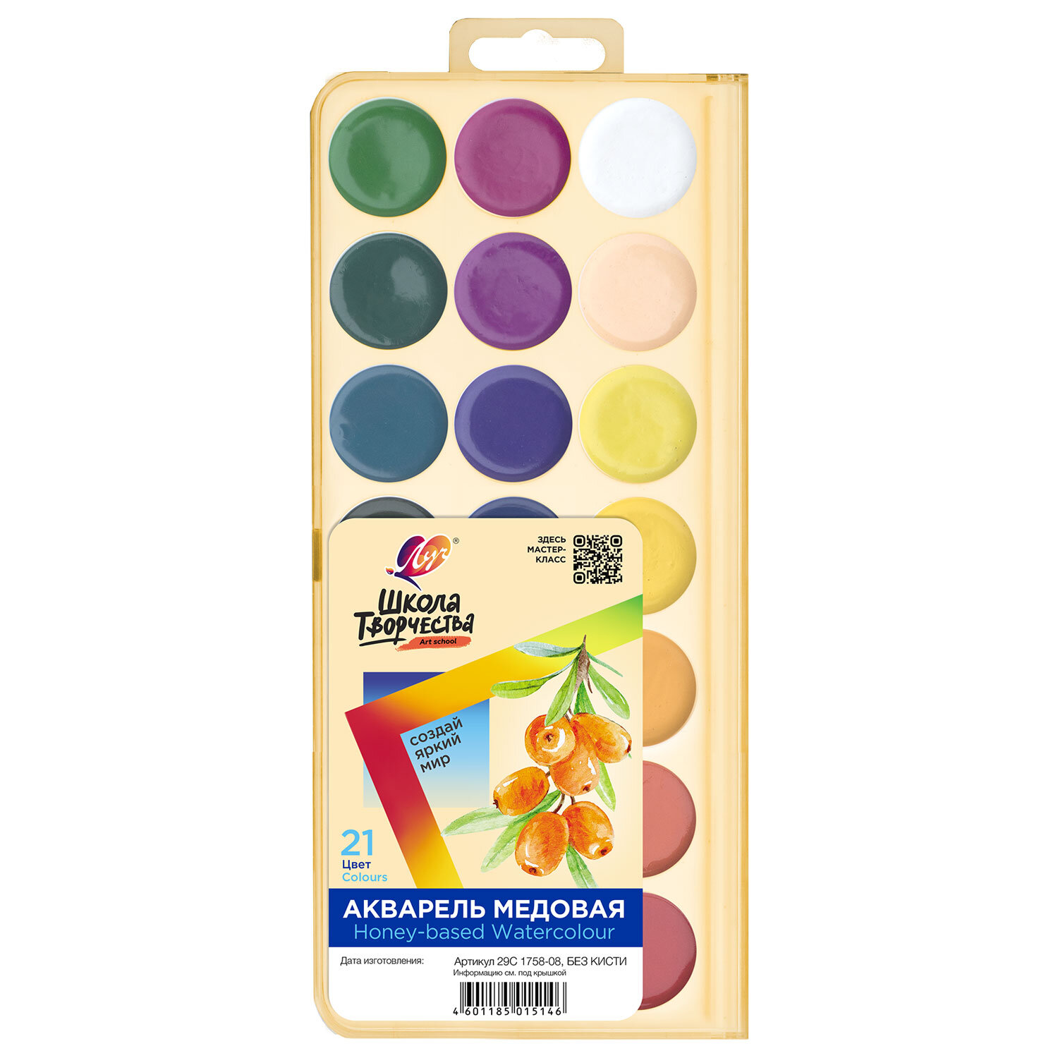 Краски акварельные ЛУЧ "Школа творчества", 21 цв, медовые, без кисти,пластиковая коро Код товара: 192847 252 ₽ Купить Производитель:ЛУЧ Краски акварельные изготовлены на основе органических пигментов и натурального связующего с добавлением пчелиного мёда. Предназначены для детского творчества и различных живописных работ. Отличаются хорошей прозрачностью, яркостью и чистотой цвета. Медовая акварель Луч «Школа Творчества» — это идеальный выбор для юных художников и тех, кто ценит традиционное качество и удобство. Оттенки разделены на группы холодных и тёплых тонов, что помогает детям быстрее ориентироваться и создавать гармоничные рисунки.Производство: РоссияКоличество цветов в наборе: 21 шт.Добавка в основу: мёдОтделение для кисточки: даФорма кювет: круглаяСпецэффект: нетСерия: Школа творчестваУпаковка: пластиковая коробка с европодвесомВес: 140 грРазмер упаковки: 1.4 × 10.6 × 23.2 смОбъём: 0.0004 м3Промежуточная упаковка: 21 штТранспортная упаковка: 21 штШтрих-код: 4601185015146 Файлы