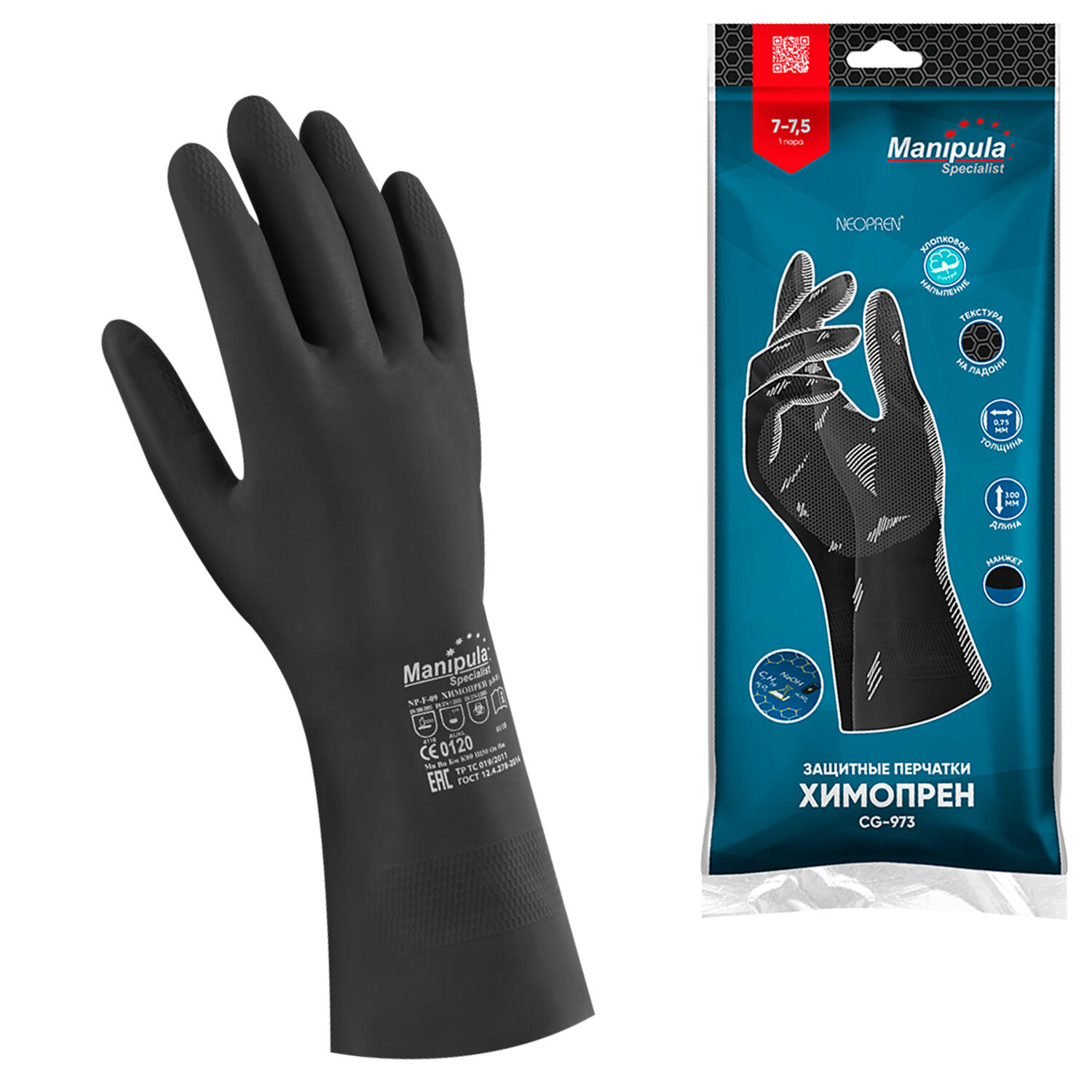 Перчатки неопреновые MANIPULA ХИМОПРЕН, хлопчатобумажное напыление, К80/Щ50, размер 10-10,5, XL (очень большой), черные Код товара: 608575 610,28 ₽ Купить Производитель:MANIPULA Герметичные перчатки из 100% неопрена, стойкие к кислотам и щелочам высоких концентраций, органическим растворителям (этанол, бензин), растительным жирам, нефти и нефтепродуктам (минеральным маслам). Перчатки ХИМОПРЕН (химическая стойкость к широкому спектру агрессивных жидкостей и эластичность до -20 °С) предназначены для защиты рук от кислот и щелочей. Дополнительная стойкость к сложным эфирам (этилацетат) и насыщенным углеводородам (Н-гептан). Неопрен не вызывает аллергических реакций, увеличивает стойкость к механическим воздействиям, а также значительно расширяет защиту от химических веществ. Сохраняет эластичность и комфорт при температуре до -20 °С. Хлорирование поверхности для увеличения механической прочности. Текстура рабочей поверхности «соты» обеспечивает отличный сухой и влажный захват. Плотное хлопковое покрытие на внутренней поверхности для удобства надевания и использования, а также комфортной термоизоляции. Для предотвращения возникновения среды, благоприятной для размножения микроорганизмов, и устранения неприятных запахов после производственного процесса перчатки прошли антибактериальную обработку Sanitized Actifresh®. Защита рук от механических повреждений среднего уровня – одно из многочисленных преимуществ перчаток ХИМОПРЕН. Изготавливаются из 100% неопрена. Этот материал делает перчатки абсолютно непроницаемыми для сильных химических реагентов, а благодаря тому, что изделие проявляет устойчивость к кислотам и щелочам (80% и 40%), перчатки допускается применять в разных сферах промышленности, включая нефте- и газопереработку. Особенности и рекомендации по применению: Неопреновые перчатки проявляют стойкость практически ко всем химически активным компонентам. Территориально сфера их применения не ограничена теплыми помещениями – продукт является морозоустойчивым и не теряет технологических качеств при температуре до -20 °С. Внутренняя поверхность имеет хлопковое напыление, впитывающее влагу. Рисунок «соты» обеспечивает жесткий захват скользких предметов, тем самым делает работу с химическими компонентами более безопасной. Рекомендуется использовать в лабораторных условиях при выполнении операций с кислотами и щелочами, в химической, добывающей промышленности, в строительстве и сельском хозяйстве.Производство: Шри-ЛанкаЗащита от: химических воздействийРазмер: XL (очень большой)Размер производителя: 10-10,5 (XL)Вид: КЩСМатериал основы: неопренПокрытие внешнее: нетОбработка поверхности: антибактериальная Sanitized ActifreshПодкладка: хлопковое напылениеСерия: КЩССтепень защиты от кислот: 80%Степень защиты от щелочей: 40%Поверхность области захвата: рельефнаяСоответствует требованиям ГОСТа : ГОСТ EN ISO 374-1:2016/Type A, ГОСТ EN ISO 374-5:2016, ГОСТ 12.4.252-2013Количество в комплекте: 1 парДлина: 300 ммТолщина: 0.75 ммЦвет: черныйСрок годности: 60 месВес: 150 грРазмер упаковки: 1.3 × 32.3 × 14.1 смОбъём: 0.0004 м3Промежуточная упаковка: 12 штТранспортная упаковка: 120 штШтрих-код: 4630038894584 Файлы Сертификат-1.jpg Сертификат-2.jpg Сертификат-3.jpg Сертификат-4.jpg Сертификат-5.jpg