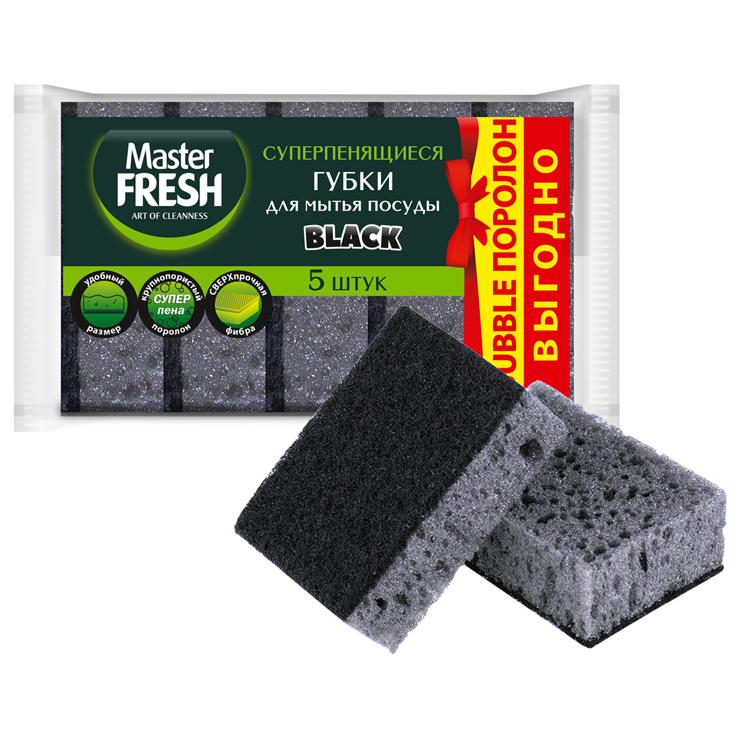 Губки для посуды 9,5х6,5 см XXL, КОМПЛЕКТ 5шт, bubble-поролон, черные, Master FRESH, ШК4042 Код товара: 703047 126,14 ₽ Купить Производитель:Master FRESH Производство: РоссияВес: 35 грРазмер упаковки: 6.4 × 13.5 × 9 смОбъём: 0.0009 м3Промежуточная упаковка: 40 штТранспортная упаковка: 40 штШтрих-код: 4620739984042 Файлы