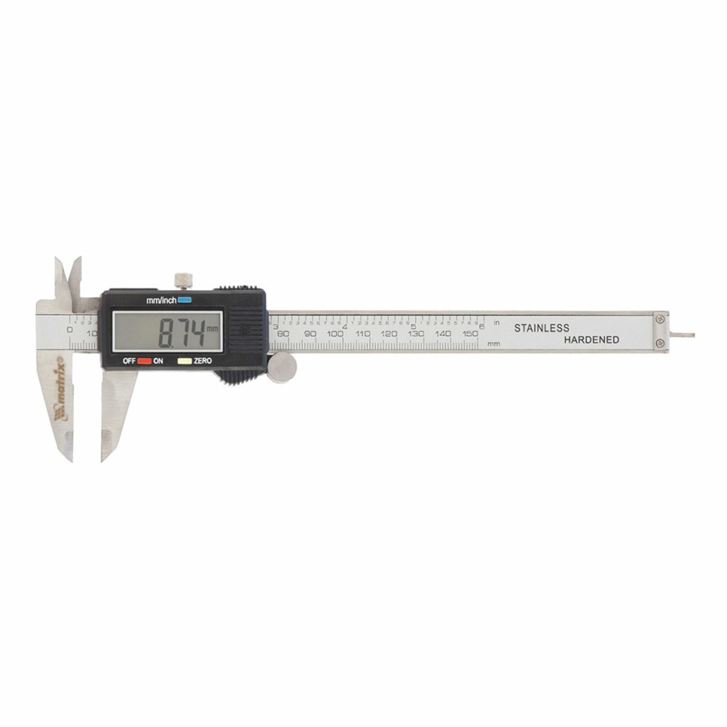 Штангенциркуль электронный, 150 мм, MATRIX, пластиковый кейс Код товара: 671088 2 097,96 ₽ Купить Производитель:MATRIX Электронный штангенциркуль со шкалой 150 мм предназначен для определения внутренних и наружных размеров различных предметов, а также глубин отверстий и канавок. Цифровой инструмент позволяет проводить точные замеры, т.к. его погрешность составляет ±0,02 мм при измерении размеров до 100 мм, и ±0,03 мм — свыше 100 мм. Результаты отображаются на жидкокристаллическом дисплее, поэтому считывание показаний происходит легко и быстро. Штангенциркуль пригодится на производстве, в слесарной или столярной мастерской, а также дома или в гараже. Преимущества: - изготовлен из инструментальной нержавеющей стали прочен и устойчив к коррозии, поэтому прослужит долго; - конструкцией предусмотрен глубиномер, расширяющий возможности применения измерительного инструмента; - батарею типа SR44 1,5 В, от которой питается инструмент, легко заменить, и штангенциркуль с глубиномером снова будет готов к работе; - надежно закрывающийся пластмассовый футляр с мягкой подложкой предотвратит поломку инструмента в случае падения или удара.Производство: КитайТип товара: штангенциркульВид: электронныйДлина штанги: 150 ммТочность измерения: 0.02 ммГлубинометр: даМатериал штанги: металлМатериал губок: металлТип упаковки: пластиковый кейсВес: 322 грРазмер упаковки: 2.8 × 24.7 × 9.3 смОбъём: 0.0009 м3Промежуточная упаковка: 50 штТранспортная упаковка: 50 штШтрих-код: 4044996031224 Файлы Сертификат-1.jpg Сертификат-2.jpg Сертификат-3.jpg Сертификат-4.jpg Сертификат-5.jpg Сертификат-6.jpg Сертификат-7.jpg Сертификат-8.jpg Сертификат-9.jpg Сертификат-10.jpg Сертификат-11.jpg Сертификат-12.jpg