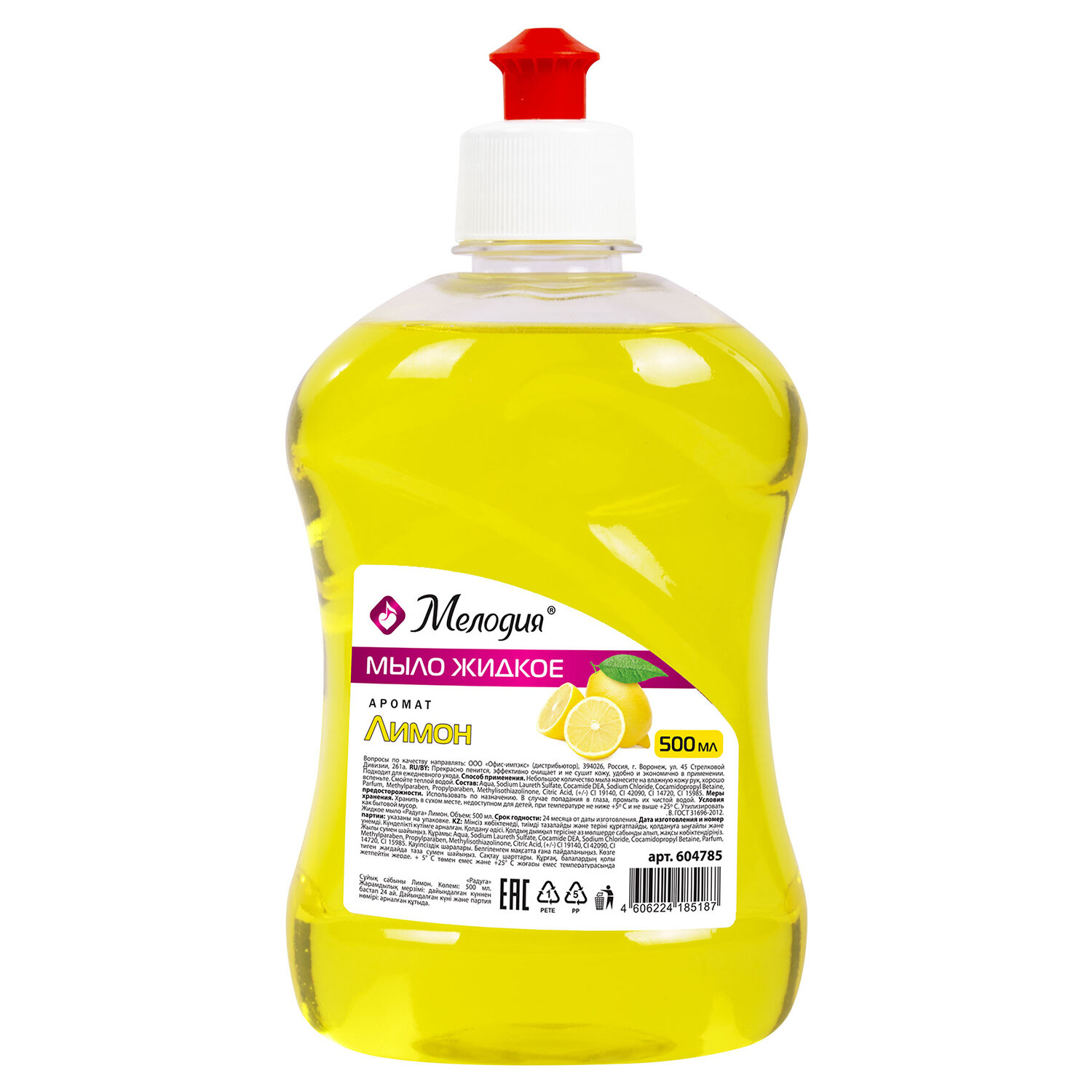 Мыло жидкое 500 мл, МЕЛОДИЯ "Лимон", пуш-пул Код товара: 604785 73,87 ₽ Купить Производитель:МЕЛОДИЯ Жидкое мыло МЕЛОДИЯ идеально подходит для использования в офисах, отелях, ресторанах и других общественных местах. Средство универсального применения отлично очищает и смягчает кожу, обеспечивает уход и увлажнение, обладает приятным ароматом эфирных масел. Подходит для всех типов кожи и не содержит формальдегида. Объем - 500 мл. Способ применения: нанести 1 мл средства на влажные руки. Аккуратно вспенить и тщательно смыть чистой проточной водой. Вытереть насухо одноразовым бумажным или текстильным полотенцем для рук. Меры предосторожности: Следуйте инструкциям по применению и/или любым предупреждениям на упаковке. Беречь от детей. При попадании в глаза промыть большим количеством воды. Соответствует ГОСТ 31696-2012. Условия хранения: хранить при комнатной температуре. Избегать попадания прямых солнечных лучей. Срок годности: 24 месяца. Состав: Aqua, Sodium Laureth Sulfate, Cocamide DEA, Sodium Chloride, Cocamidopropyl Betaine, Parfum, Methylparaben, Propylparaben, Methylisothiazolinone, Citric Acid, (+/-) CI 19140, CI 42090, CI 14720, CI 15985. Это товар эконом-сегмента, поэтому он отличается привлекательной ценой. Товар обладает базовым набором характеристик и простой упаковкой, при этом полностью соответствует основным требованиям потребителей.Производство: РоссияОбъем / Вес: 500 мл/гПодходящий тип кожи: для всех типовЭффект от использования: смягчение, увлажнениеСерия: SOAPОтдушка: лимонГипоаллергенно: даСбалансированный уровень рН: даТовар относится к сегменту ЭКОНОМ: даТип дозирования: пуш-пулВид упаковки: флаконЦвет: жёлтыйСрок годности: 24 месРазмер упаковки: 17 × 9.5 × 6.6 смОбъём: 0.0012 м3Промежуточная упаковка: 24 штТранспортная упаковка: 24 штШтрих-код: 4606224185187 Приложение-1.pdf Сертификат-1.jpg Сертификат-2.jpg
