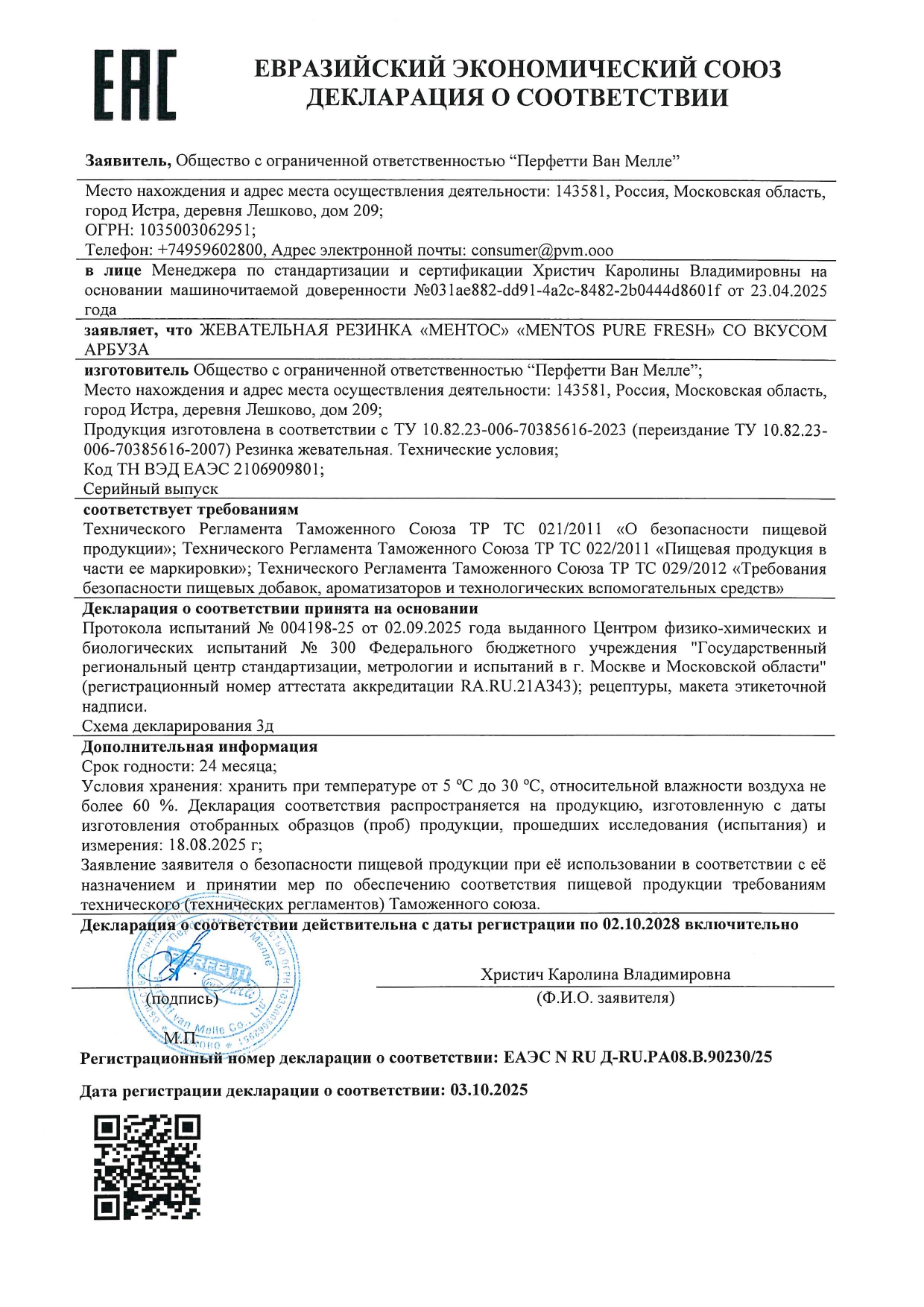- Фирма-производитель: ООО «Перфетти Ван Мелле»