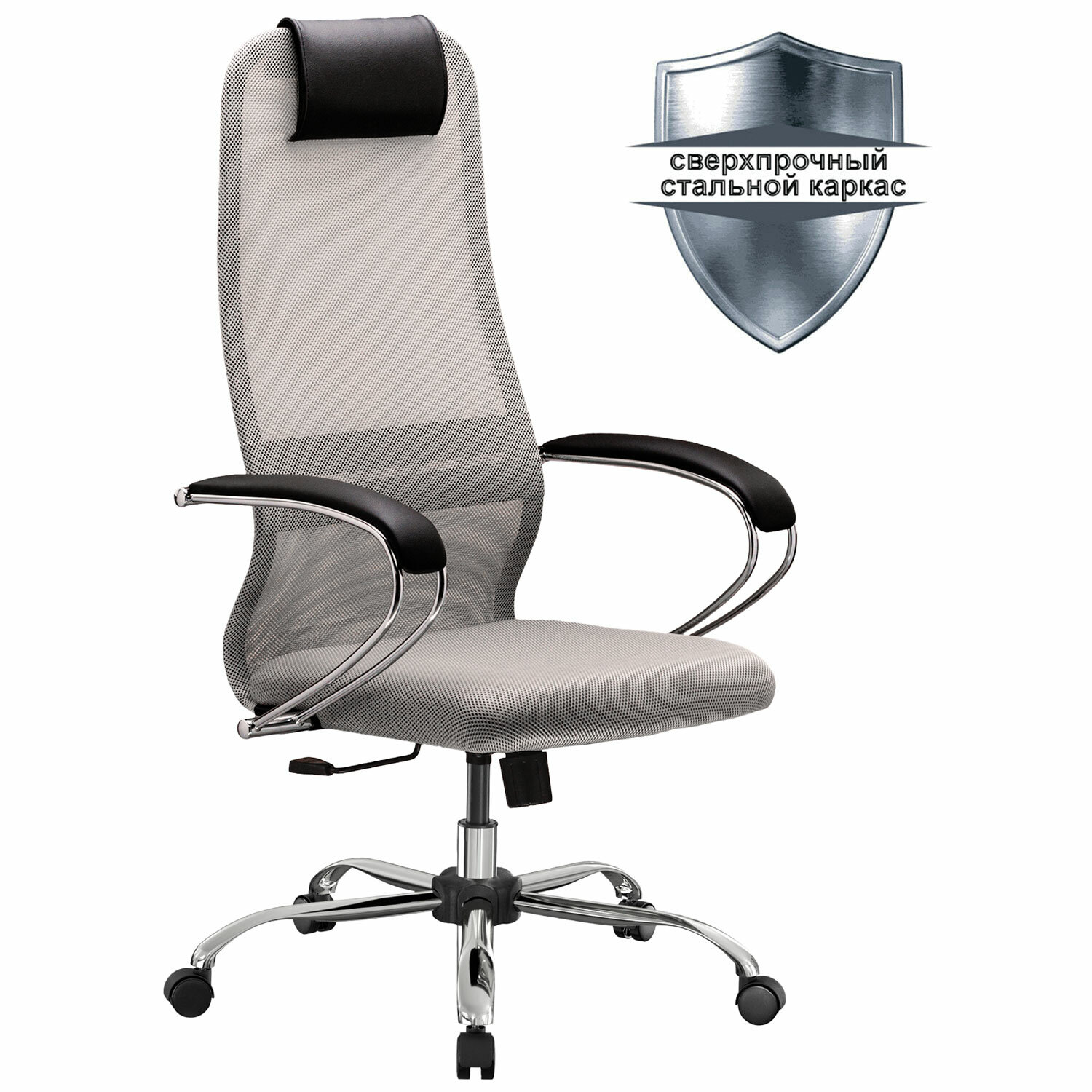 Кресло офисное МЕТТА "SU-B-8" хром, ткань-сетка, сиденье мягкое, светло-серое Код товара: 532429 13 526,08 ₽ Купить Производитель:МЕТТА Наиболее популярная, классическая модель офисных кресел МЕТТА. Сочетает в себе высокую надежность, эргономику, соответствующую анатомической форме человека, современный дизайн и максимальный комфорт по доступной цене. Спинка высокая, эргономичной формы с ярко выраженной поясничной поддержкой. Спинка имеет сверхпрочный стальной каркас с износостойким полимерным покрытием черного цвета. Спинка снабжена мягким комфортным подголовником. Сиденье средней жесткости, объемное на столярном каркасе. Обивка из износоустойчивой "дышащей" сетчатой ткани. Подлокотники стальные классические, покрытые зеркальным хромом, с мягкими накладками из экокожи. Пятилучие – металлическое хромированное. Модель оснащена механизмом качания "Top-Gun" с регулировкой под вес и возможностью фиксации в рабочем положении.Производство: РоссияМатериал обивки: ткань/сеткаМаксимальная нагрузка: до 150 кгЦвет обивки: светло-серыйТип механизма кресла: "Топ-ган" - качание с регулировкой под вес и фиксацией в 1 положенииСетчатая спинка: даКрестовина (пятилучие): металл/хромированный металлПодлокотники: хром с накладкамиМинимальная высота кресла: 1125 ммМаксимальная высота кресла: 1235 ммШирина кресла: 665 ммМинимальная высота до сиденья: 375 ммМаксимальная высота до сиденья: 485 ммСиденье ширина: 470 ммСиденье глубина: 460 ммСпинка ширина: 475 ммСпинка высота: 750 ммСерия: SU-8Соответствует требованиям ГОСТа: ГОСТ 19917-93Поставляется в разобранном виде: даВес: 15,89 кгРазмер упаковки: 90.5 × 68 × 26 смОбъём: 0.16 м3Промежуточная упаковка: 1 штТранспортная упаковка: 1 штШтрих-код: 4665316737260 Файлы Приложение-1.pdf Приложение-2.pdf Приложение-3.pdf Сертификат-1.jpg Сертификат-2.jpg Сертификат-3.jpg Сертификат-4.jpg