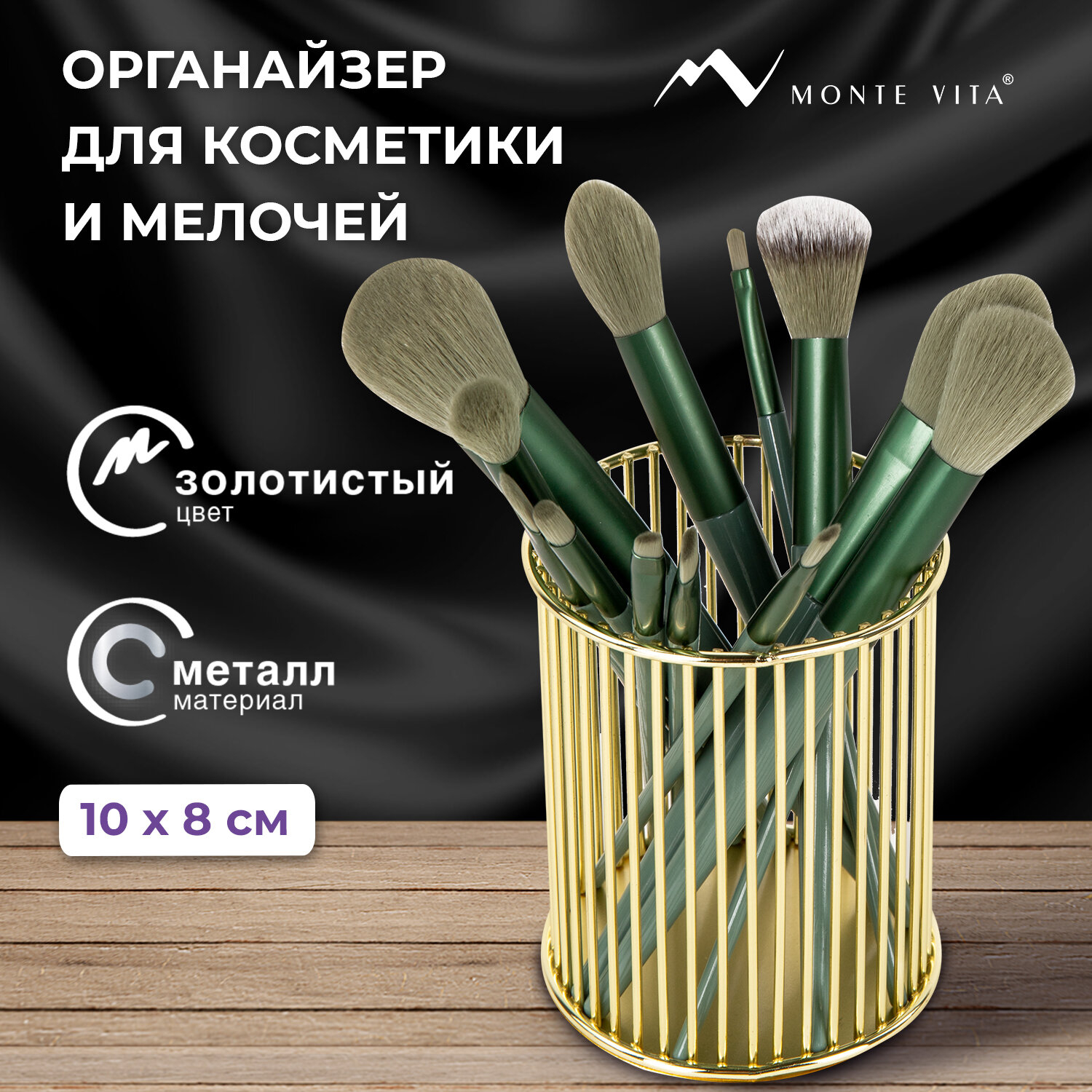 Органайзер-стаканчик для косметики и мелочей MONTE VITA (МОНТЕ ВИТА), металлический, 100х80 мм, золото Код товара: 272484 309,92 ₽ Купить Производитель:MONTE VITA Металлический органайзер MONTE VITA – это стильное, практичное и долговечное решение для хранения канцелярских принадлежностей, мелких предметов, косметики и кистей для макияжа. Он с легкостью впишется в любой интерьер. Изготовлен из металла. Имеет размер 100х80 мм. Благодаря своему стильному дизайну, удобству использования и надёжности, органайзер MONTE VITA станет незаменимым аксессуаром для вашего комфорта. Он обеспечит удобное хранение вашей канцелярии, косметики и прочих мелочей, а также легкий доступ к ним.Производство: КитайТип товара: подставка-органайзерЦвет: золотойМатериал: металлКоличество в комплекте: 1 шт.Количество отделений: 1Серия: TazzaСборно-разборная конструкция: даПоставляется без наполнения: даМягкая подушечка на дне подставки: даВысота: 100 ммДлина: 80 ммШирина: 80 ммВес: 242 грРазмер упаковки: 9.3 × 11.2 × 9.3 смОбъём: 0.0015 м3Промежуточная упаковка: 6 штТранспортная упаковка: 72 штШтрих-код: 4606224433936 Файлы Сертификат-1.jpg Сертификат-2.jpg Сертификат-3.jpg Сертификат-4.jpg Сертификат-5.jpg Сертификат-6.jpg Сертификат-7.jpg Сертификат-8.jpg Сертификат-9.jpg Сертификат-10.jpg Сертификат-11.jpg Сертификат-12.jpg Сертификат-13.jpg Сертификат-14.jpg Сертификат-15.jpg Сертификат-16.jpg Сертификат-17.jpg Сертификат-18.jpg Сертификат-19.jpg Сертификат-20.jpg Сертификат-21.jpg Сертификат-22.jpg Сертификат-23.jpg Сертификат-24.jpg Сертификат-25.jpg Сертификат-26.jpg