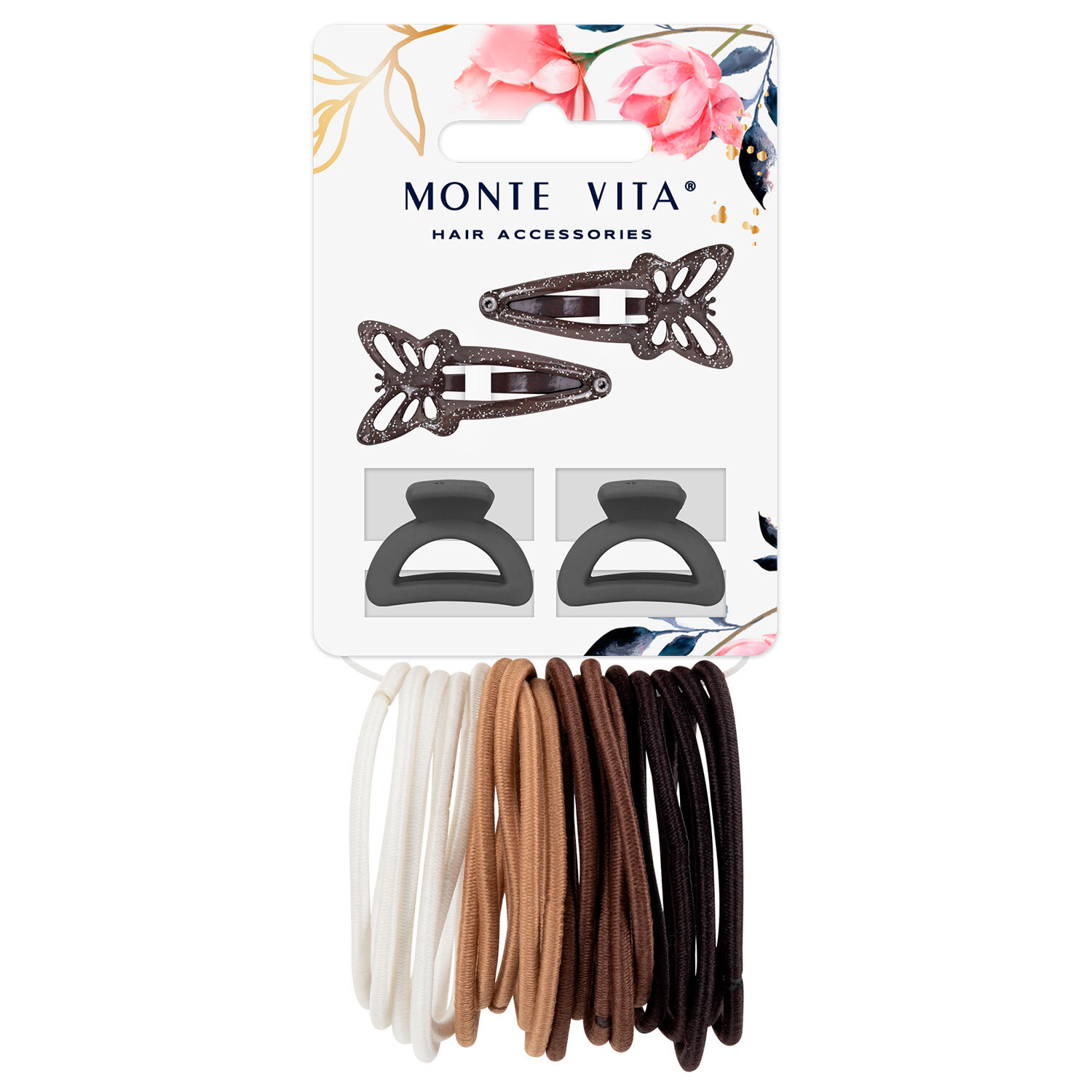 Набор для волос 24 шт.: 2 заколки 5 см, 2 краба 2,5 см, 20 резинок, MONTE VITA (МОНТЕ ВИТА), 457035 Код товара: 457035 179,15 ₽ Купить Производитель:MONTE VITA Набор аксессуаров для волос MONTE VITA сочетает удобство и стиль. Заколки-клипсы надежно фиксируют пряди, мини-крабы подходят для локонов любой длины, а мягкие резинки не травмируют волосы. Отличный вариант для создания повседневных и праздничных укладок! Набор включает 24 аксессуара в стильных оттенках коричневого: 2 заколки-клипсы (5 см) для надежной фиксации, 2 мини-краба (2,5 см) с усиленной пружиной, 20 резинок из мягкого полиэстера. Материалы: металл, полистирол и полиэстер с покрытием soft touch для бережного удержания волос. Универсальные размеры подходят для тонких, густых, коротких и длинных локонов, обеспечивая комфорт и надежность в использовании.Производство: КитайТип товара: набор аксессуаров для волосКоличество в наборе: 24 шт.Цвет: ассортиМатериал: полистирол/полиэстер/металлКомплектация: заколка 2 шт., крабик для волос 2 шт., резинка 20 шт.Упаковка: картонная карточка с европодвесомВес: 28 грРазмер упаковки: 2.6 × 7 × 13.1 смОбъём: 0.0002 м3Промежуточная упаковка: 12 штТранспортная упаковка: 240 штШтрих-код: 4606224453491 Файлы Сертификат-1.jpg Сертификат-2.jpg Сертификат-3.jpg Сертификат-4.jpg