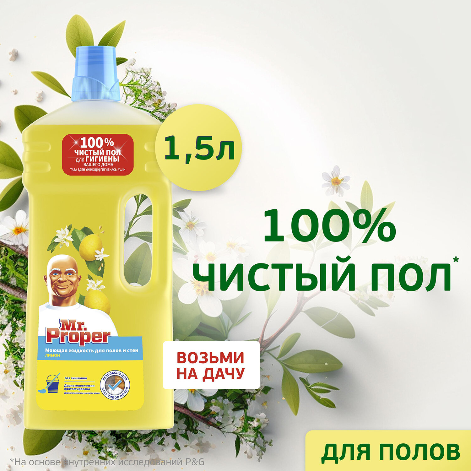 Средство для мытья пола и стен 1,5 л, MR.PROPER (Мистер Пропер) "Лимон" Код товара: 602433 589,68 ₽ Купить Производитель:MR. PROPER Универсальное моющее средство для всех видов твердых поверхностей. Придает блеск, не оставляет разводов на таких поверхностях, как нержавеющая сталь и кафельная плитка. Избавляет от необходимости использовать дополнительные чистящие средства. Универсальное моющее средство MR. PROPER с ароматом лимона упростит ежедневную уборку в доме. Жидкость легко удаляет загрязнения с напольных покрытий, корпусной мебели и сантехники. Придает поверхностям блеск, устраняет неприятные запахи. Особенности средства для мытья полов и стен MR. PROPER: 1. Безопасный состав: не содержит агрессивных очищающих компонентов, таких как хлор; 2. Удаляет до 100% пятен: даже в холодной воде средство устраняет въевшиеся пятна на напольных покрытиях, стенах и корпусной мебели; 3. Не оставляет разводов: средство не оставляет разводов даже на глянцевых поверхностях; 4. 100% чистый пол без смывания: можно использовать в неразбавленном виде или растворять в воде; 5. Бережность к покрытиям: средство подходит для мытья всех типов полов: линолеума, лакированного паркета, ламината, плитки и других твердых поверхностей; 6. Дерматологически протестировано: средство безопасно для уборки помещений, в которых живут дети и домашние животные; 7. Безопасно для септика: продукт можно применять в домах, оборудованных септик-системами. Моющее средство MR. PROPER универсально и подходит для очищения любых твердых поверхностей в доме: полов, стен и корпусной мебели. Продукт можно использовать в чистом или разбавленном виде в пропорции 2 колпачка на 5 литров воды. Средство не нужно смывать, если вы не обрабатываете поверхности, которые соприкасаются с пищевыми продуктами. Использовать в разбавленном виде для лакированного паркета, ламината и ПВХ. Не использовать на промасленной и необработанной древесине. Емкости объемом 1 л хватит на несколько циклов использования.ь на промасленной и необработанной древесине. Емкости объемом 1,5 л хватит на несколько циклов использования. Срок годности средства – 18 месяцев. Размеры упаковки (ДхШхВ) – 129х60х325 мм. Вес составляет 1539 г. Состав: не более 5% анионные ПАВ, неионные ПАВ, консерванты, ароматизирующие добавки, цитраль, цитронеллол, гераниол, гексил циннамал, лимонен, линалоол. Способ применения: добавить 2 колпачка на 5 л воды. Меры предосторожности: хранить в недоступном для детей месте. После применения вымыть руки. При попадании в глаза немедленно промыть их водой.Производство: РоссияОбъем/вес: 1500 мл/гФорма выпуска: жидкостьСерия: STANDARTЭффект от использования: нейтрализация неприятного запахаПодходит для: пола, стенФормула без смывания: даОтдушка: цитрусУпаковка: бутыльСрок годности: 18 месВес: 1,65 кгРазмер упаковки: 32.5 × 12.6 × 6.5 смОбъём: 0.003 м3Промежуточная упаковка: 9 штТранспортная упаковка: 9 штШтрих-код: 5410076957484 Файлы Сертификат-1.jpg Сертификат-2.jpg Сертификат-3.jpg Сертификат-4.jpg Сертификат-5.jpg Сертификат-6.jpg Сертификат-7.jpg Сертификат-8.jpg Сертификат-9.jpg Сертификат-10.jpg Сертификат-11.jpg Сертификат-12.jpg Сертификат-13.jpg Сертификат-14.jpg Сертификат-15.jpg Сертификат-16.jpg Сертификат-17.jpg Сертификат-18.jpg Сертификат-19.jpg Сертификат-20.jpg Сертификат-21.jpg Сертификат-22.jpg Сертификат-23.jpg Сертификат-24.jpg Сертификат-25.jpg